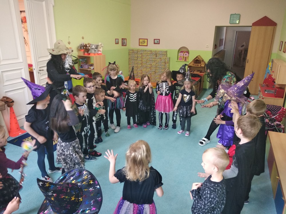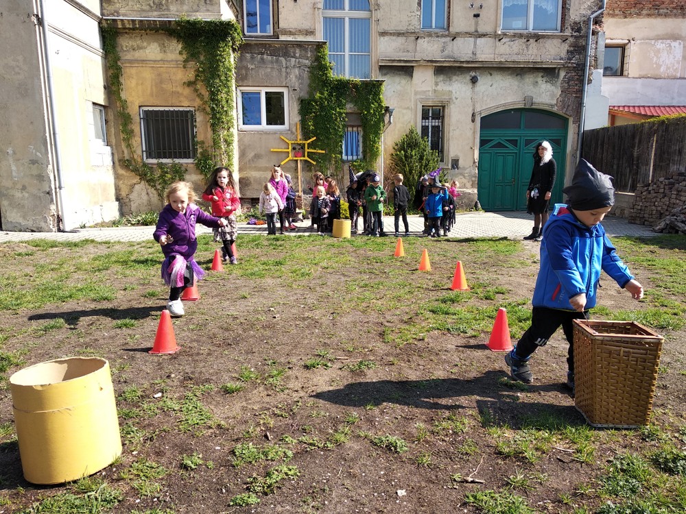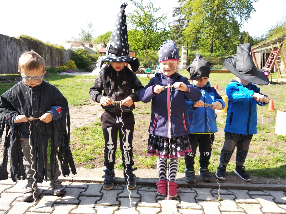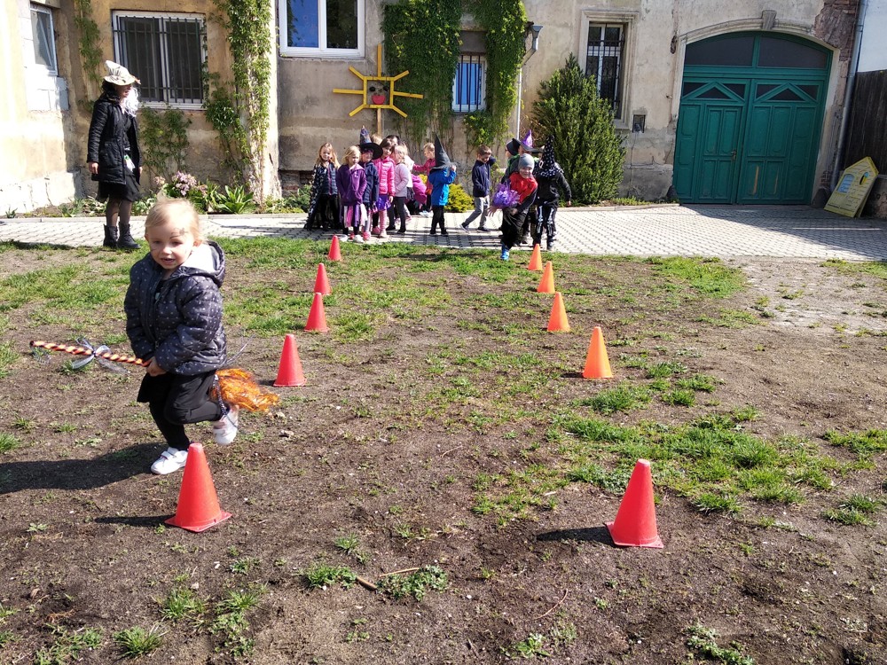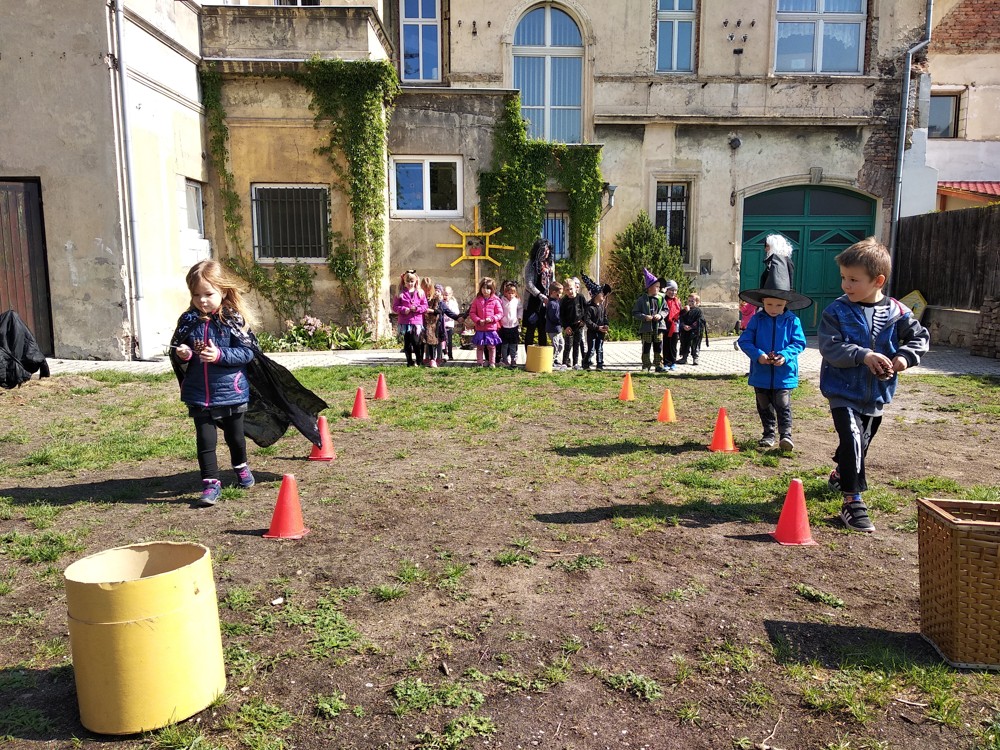 Do školky od rána přilétaly samé čarodějnice a celé dopoledne tam vařily kouzelné lektvary, tančily, zpívaly čarodějnické písně a na školní zahradě poměřovaly své síly v různých disciplínách.