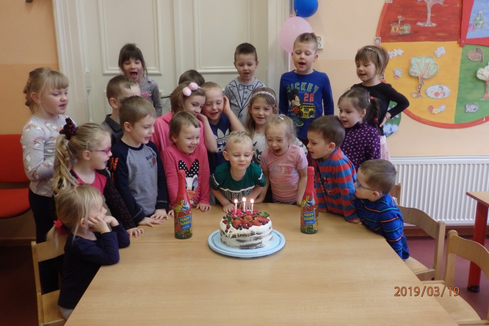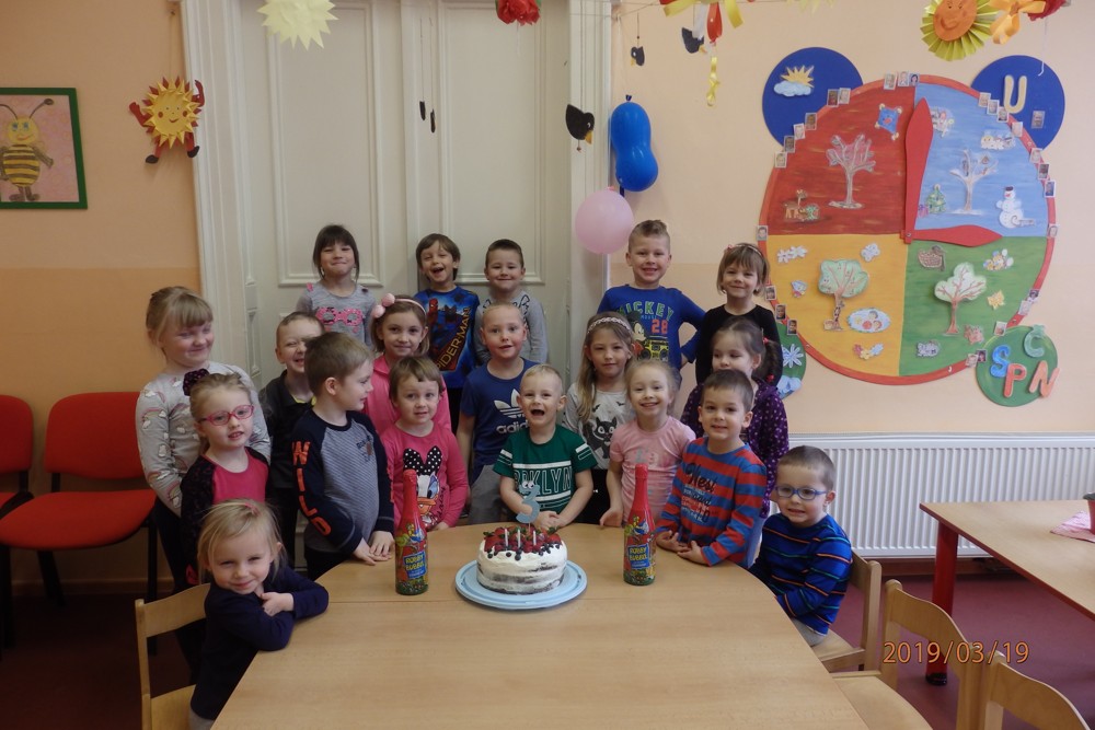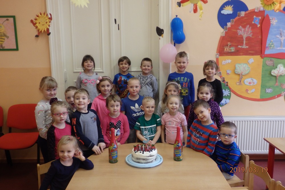 Svoji první školkovou oslavu se dnes užíval Jaroušek.Všechny děti mu popřály, předaly dárečky a on je pozval na výborný dort, který pomáhal doma mamince zdobit.