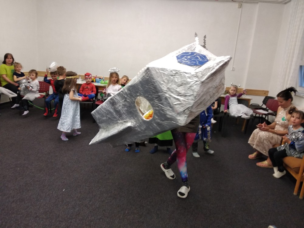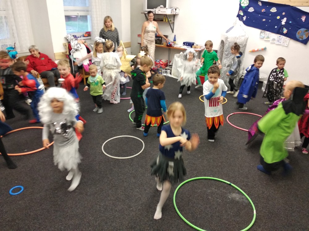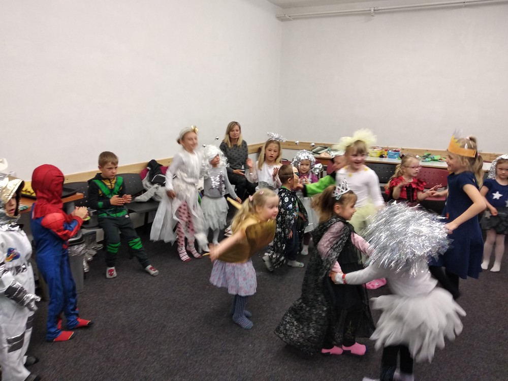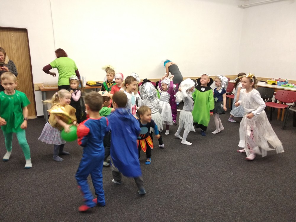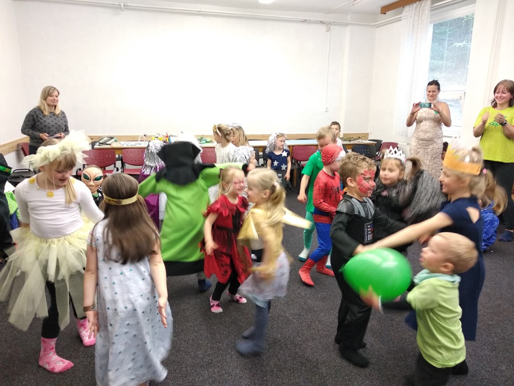 Dnešní den jsme zakončili vesmírným karnevalem. Mimozemšťané, kteří se převtělili do vesmírných masek si tento rej velice užili. Po vysilujícím tanci a soutěžích přiletěla vesmírná pošta a potom už byl čas jít spát.