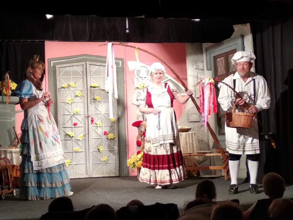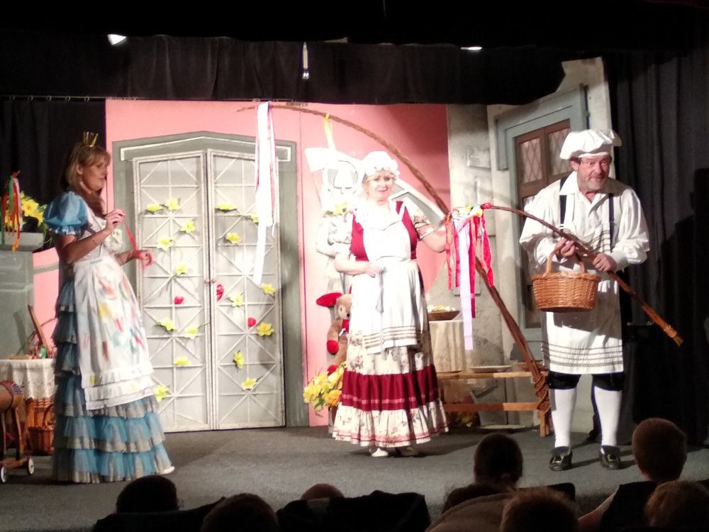 V Duchcově jsme navštívili Divadlo M, kde jsme se ocitli v pohádce "O princezně, která malovala velikonoční vajíčka". Představení bylo moc pěkné, všem se líbilo. Děti si mohly také zazpívat spoustu lidových písniček a dozvěděly se spoustu zajímavostí o Velikonocích.