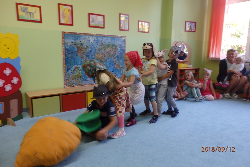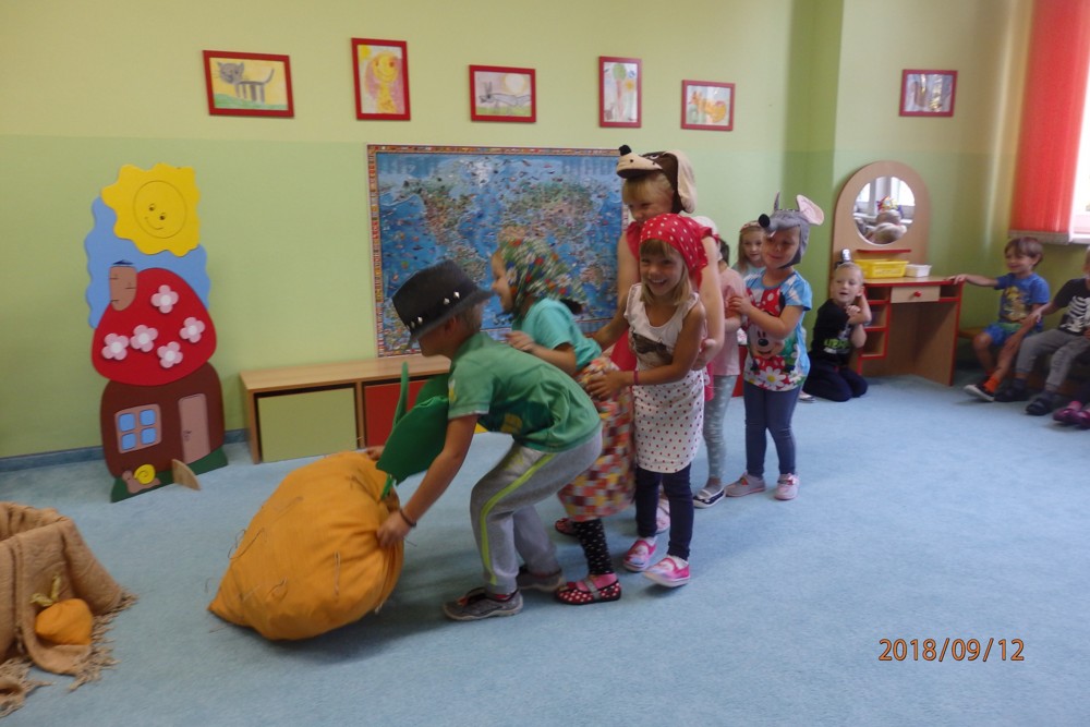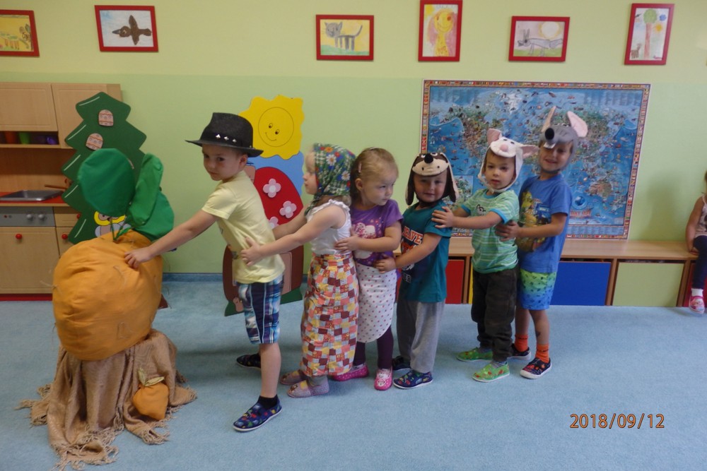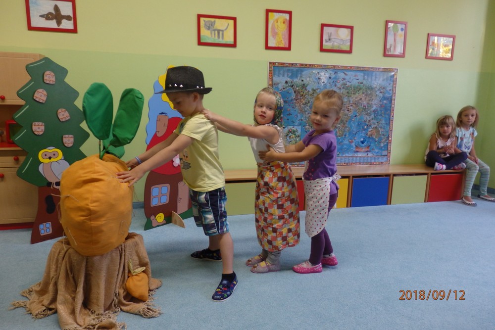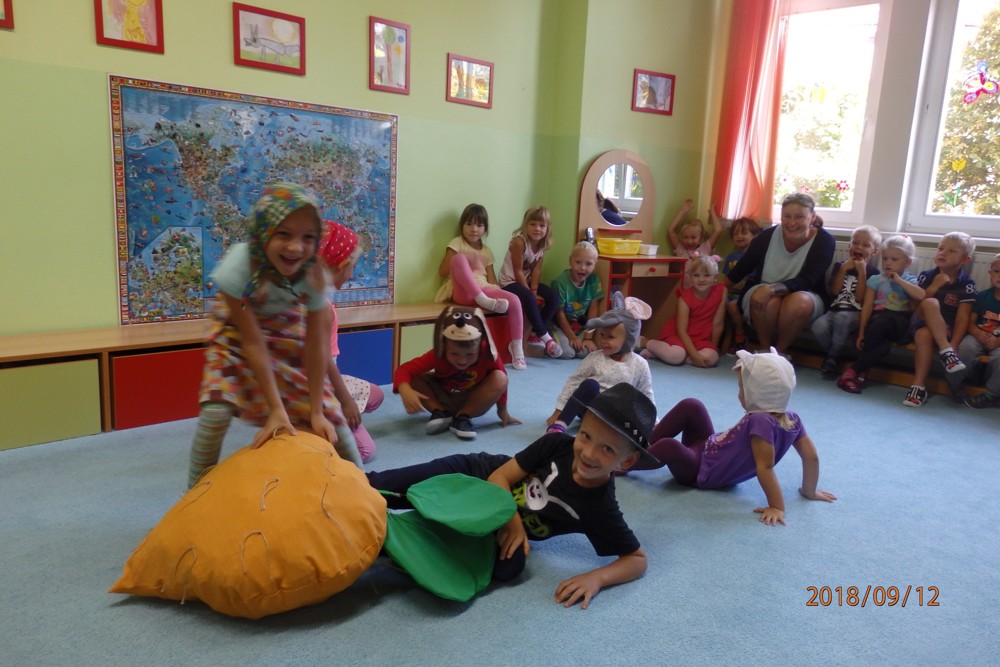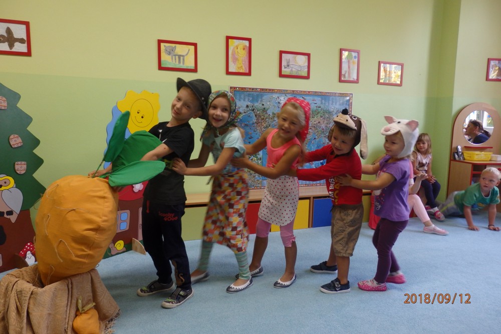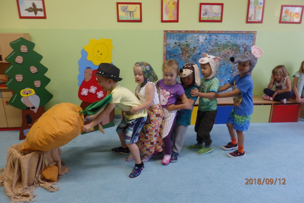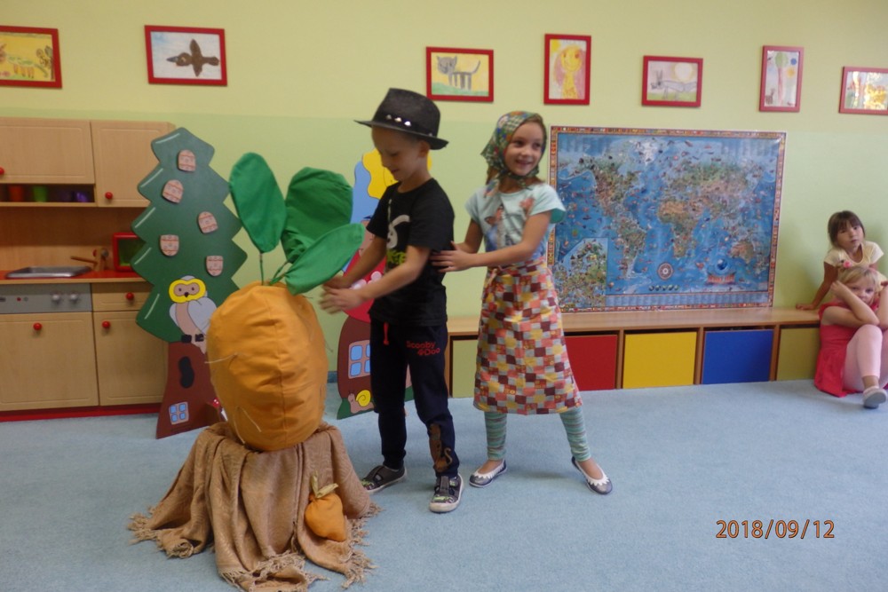 Pohádku " O veliké řepě" si zahrály všechny děti a moc si ji užily.