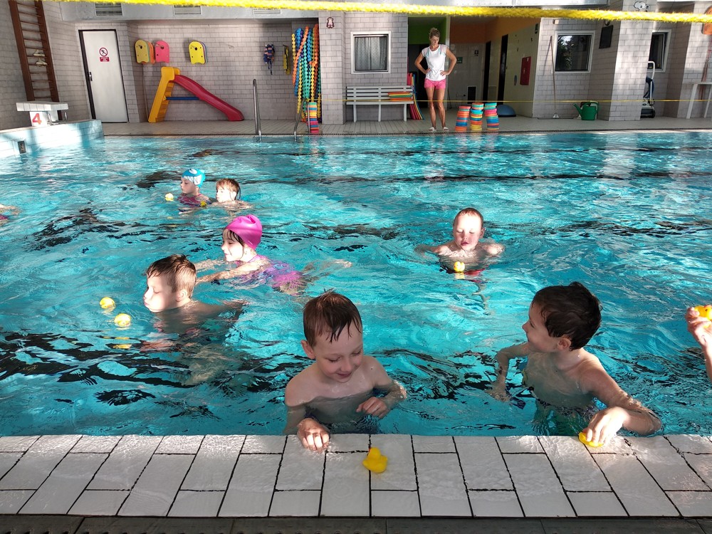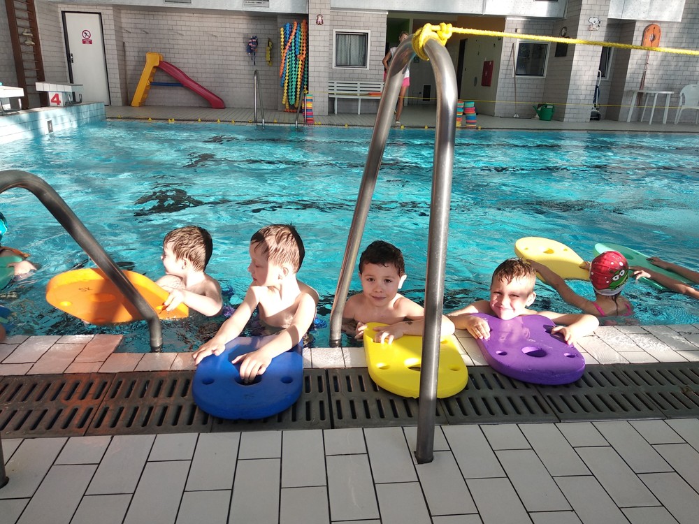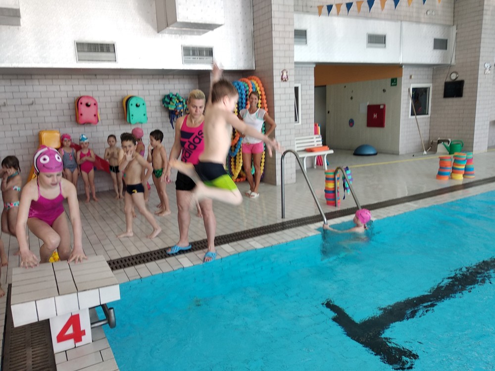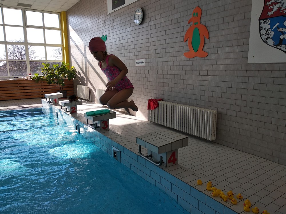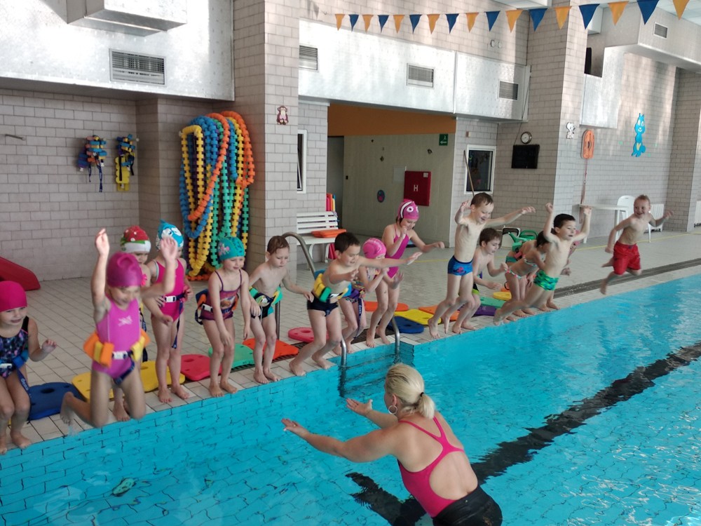 Naši plaváčci jsou čím dál šikovnější. Nebojí se ničeho a do vody skáčou jako žabky.
