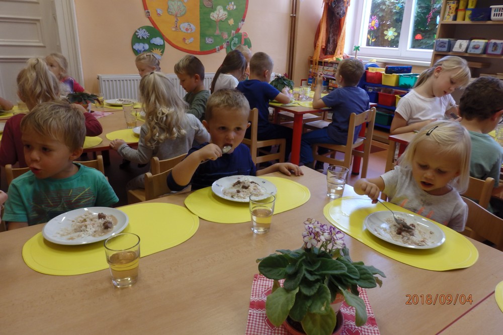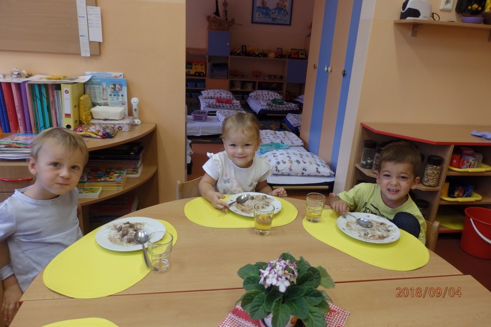 Letos nám přišli čtyři chlapci a pět holčiček. Všichni jsou moc šikovní, velice rádi kreslí, modelují, cvičí, tančí i zpívají a na stýskání už jim moc času nezbývá. Přejeme jim spoustu nových kamarádů, mnoho hezkých zážitků a ty nejkrásnější vzpomínky na první dny ve školce.