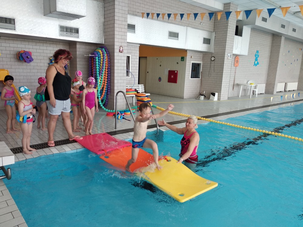 Školáci dnes naposledy odjeli do Plavecké haly v Krupce, aby ukázali své plavecké dovednosti. Všichni přeplavali celý bazén a někteří i bez pásku. Poslední lekci si moc užívali a za své výkony dostali od žabky Stáni " Mokrý diplom" a malou sladkost.