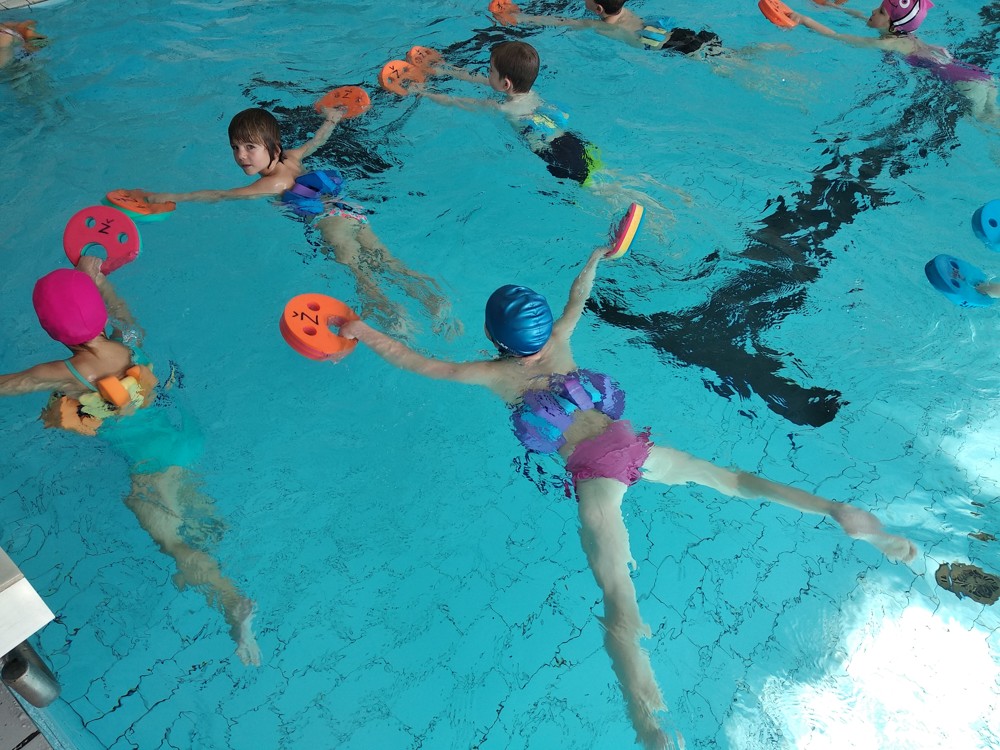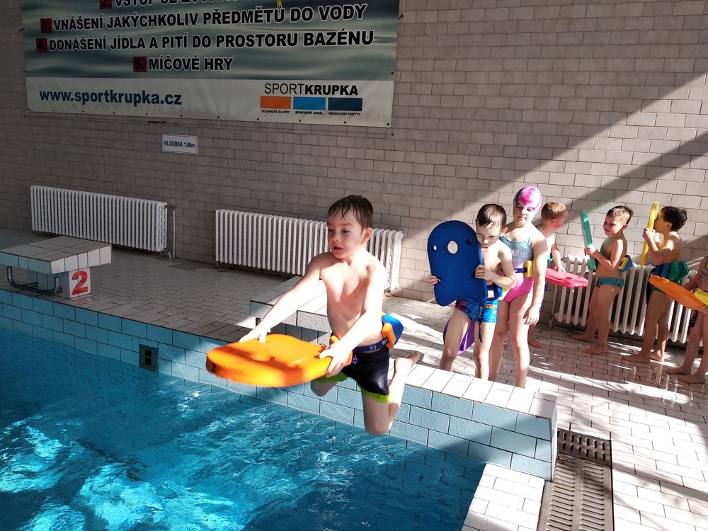 Naše děti, společně s kamarády z jeníkovské školky, začaly dojíždět do plavecké haly v Krupce, kde se zúčastní plavecké výuky.