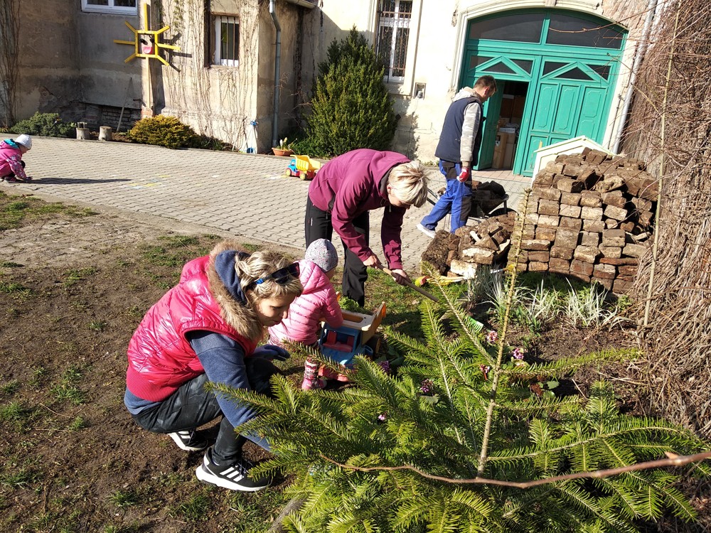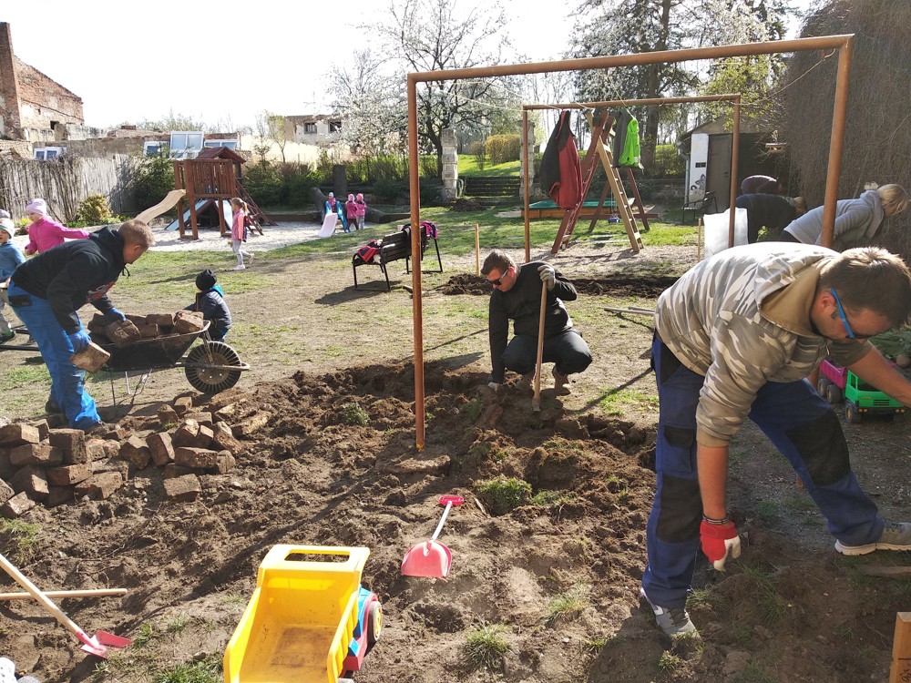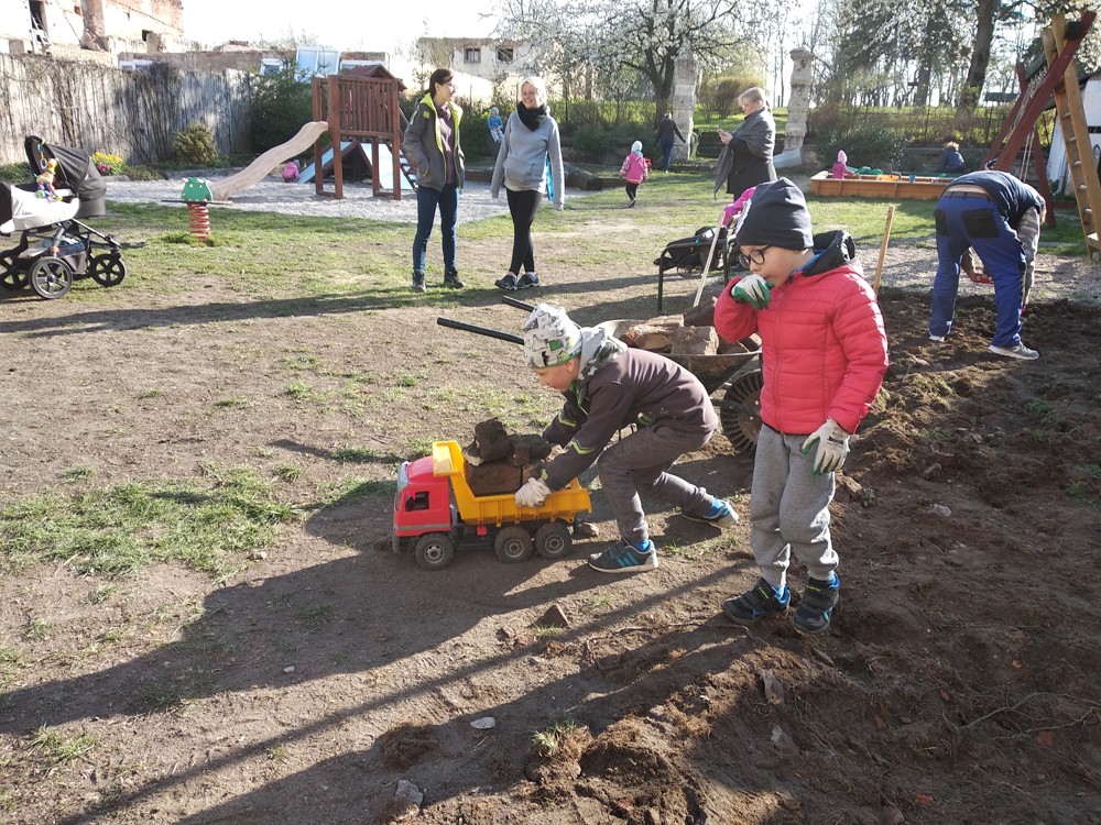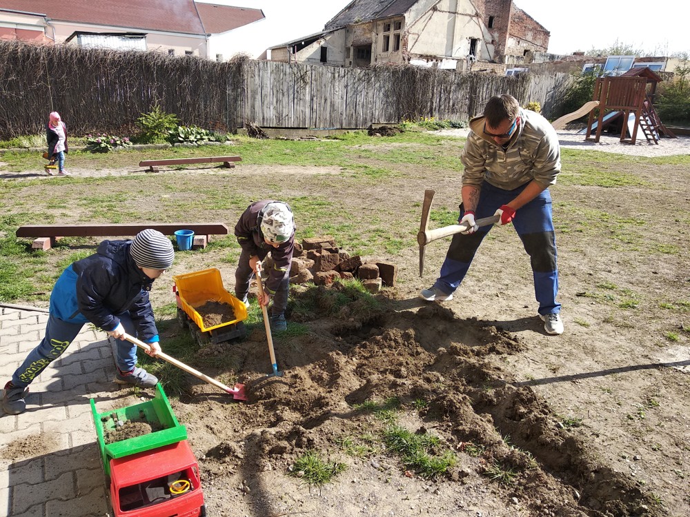 Maminky upravily záhonky a tatínkové připravovali terén pro stavbu pergoly, na kterou se už moc těšíme. Po těžké práci jsme se posilnili výborným moučníkem a opečeným buřtíkem. I když se nás tentokrát sešlo málo, práce jsme udělali hodně. Za to všem rodičům i školákům, kteří přiložili ruku k dílu, moc děkujeme.