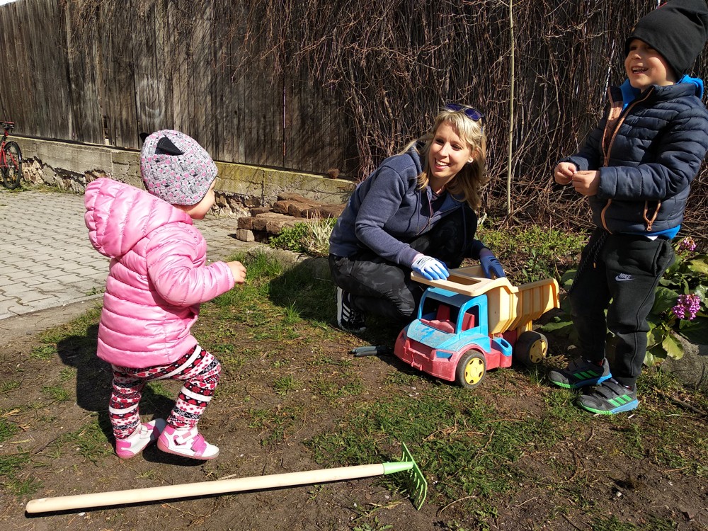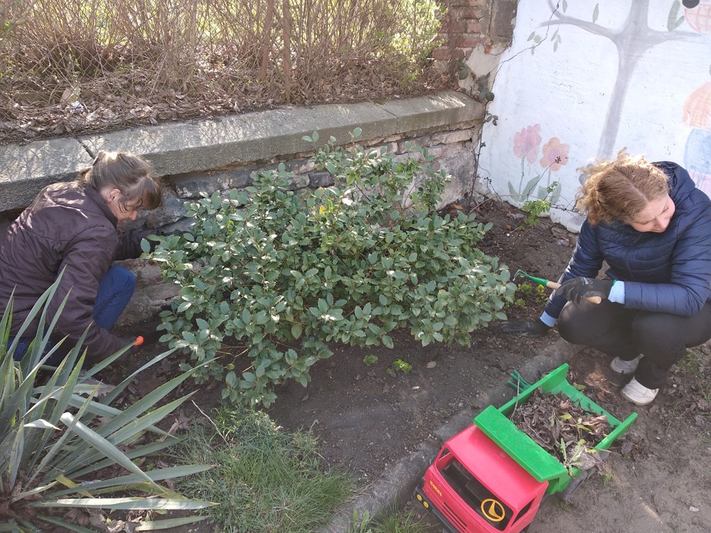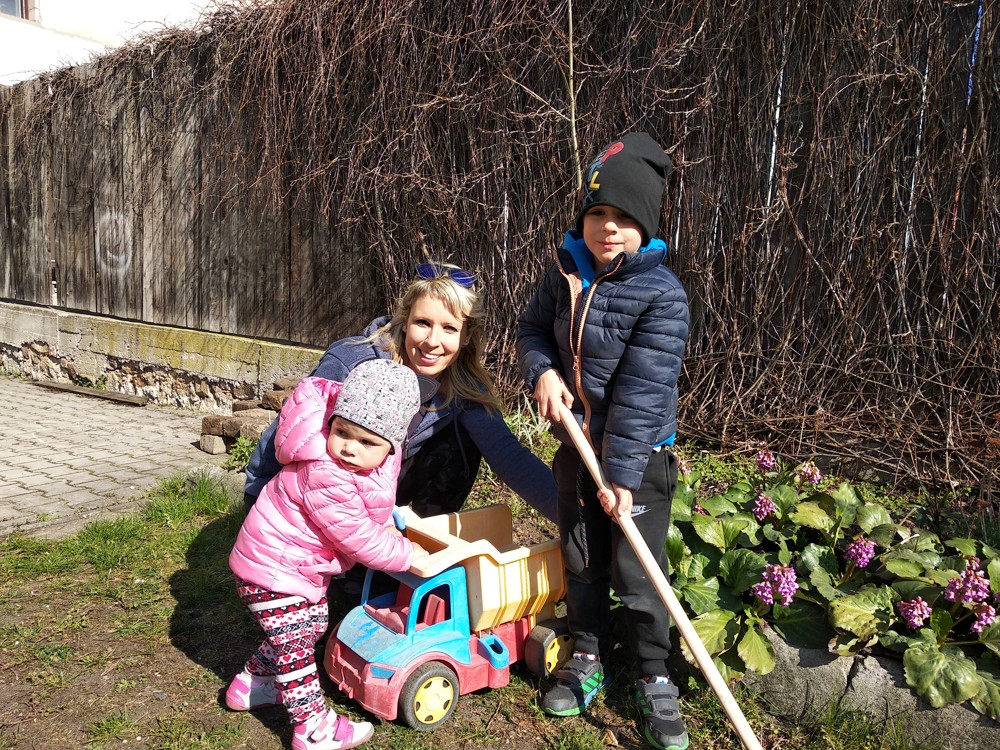 Dnes jsme se sešli na naší zahrádce, abychom ji po zimě uklidili.