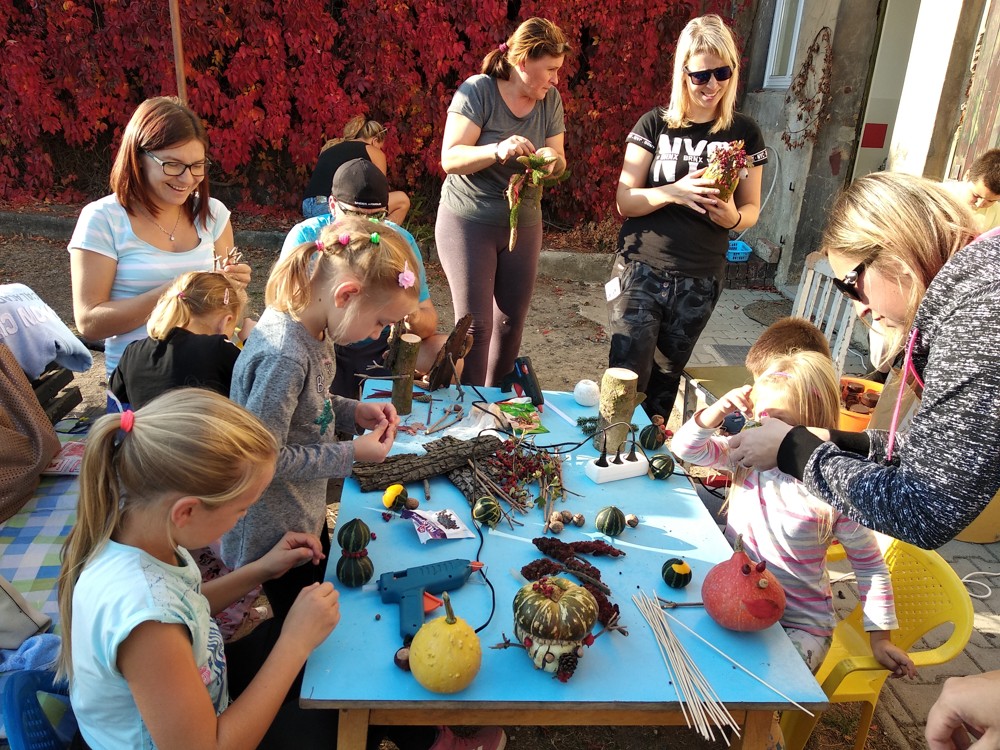 Naši školku zdobí spousta skřítků „Podzimníčků“, které vyrobili rodiče se svými dětmi z přírodních materiálů. Počasí nám přálo, a tak jsme mohli pracovat na školní zahradě. Užili jsme si krásné slunečné odpoledne a navíc si pochutnali na kávičce a výborném perníku od naší Vendulky.