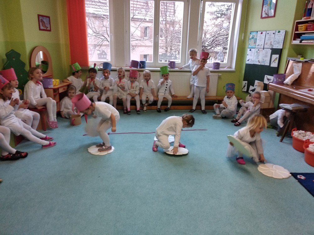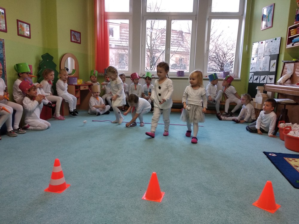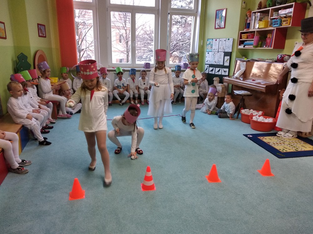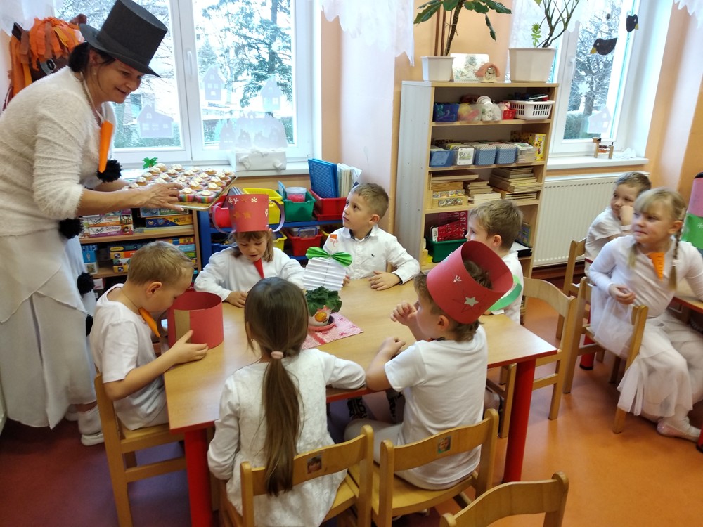 Když si z papíru děti vyrobily sněhové koule, mohla začít pořádná koulovačka, kterou si moc užily. Celé dopoledne tančily, zpívaly, soutěžily, ale také si smlsly skvělých muffinkách, které jim upekla paní učitelka.