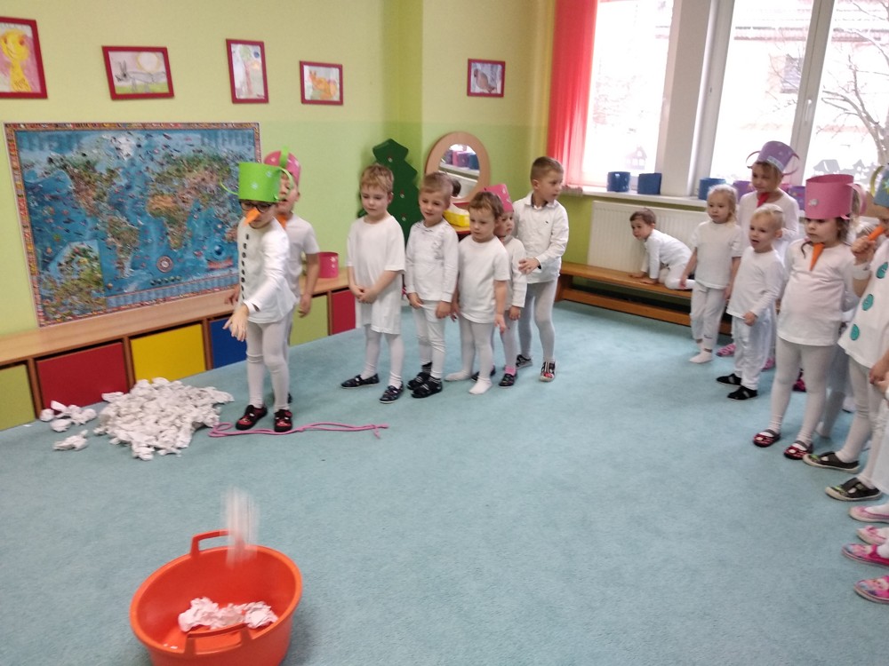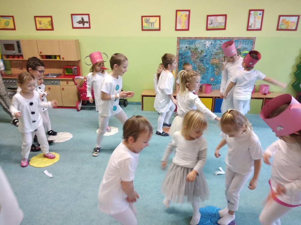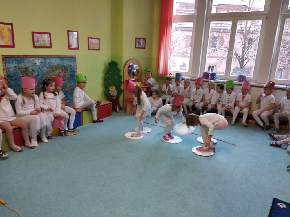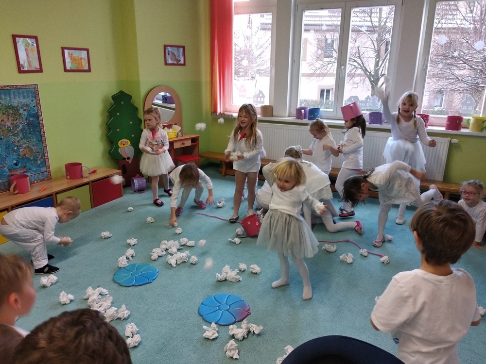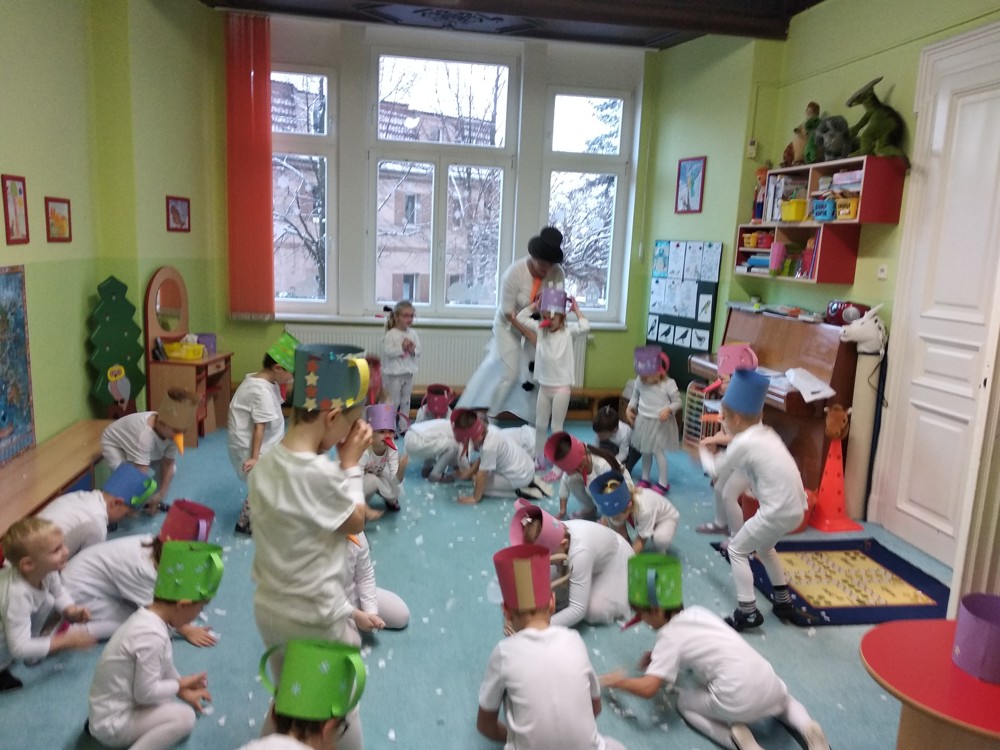 Když si z papíru děti vyrobily sněhové koule, mohla začít pořádná koulovačka, kterou si moc užily. Celé dopoledne tančily, zpívaly, soutěžily, ale také si smlsly skvělých muffinkách, které jim upekla paní učitelka.
