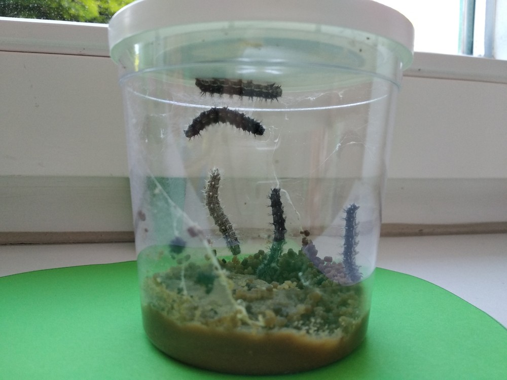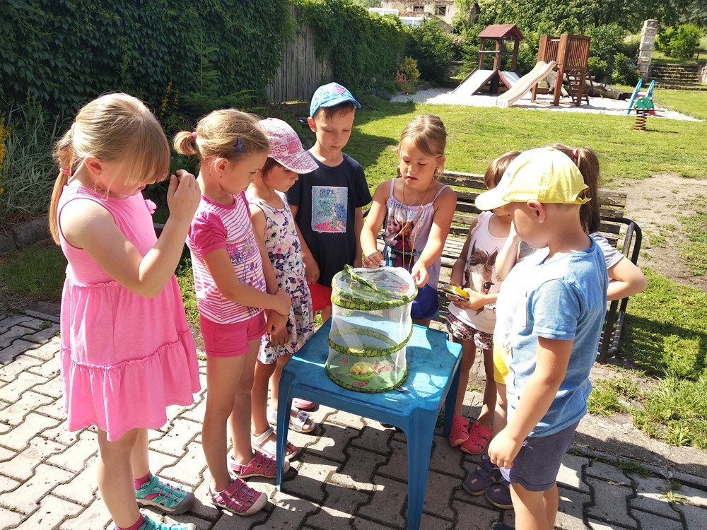 Děti celý měsíc pozorovaly vývoj motýla Babočky Bodlákové od malé housenky, která nám za týden vyrostla natolik, že se mohla zakuklit a zanedlouho byli motýlci na světě.