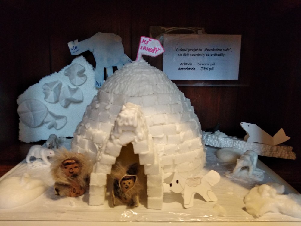 Encyklopedie, mapy, globus spolu se závějemi sněhu na školní zahradě jim umožnily seznámit se s „drsnými podmínkami“, ve kterých žijí zvířata i lidé. Děti stavěly iglú z kostkového cukru i papírových kostek, vyráběly zvířátka, zahrály si hry eskymáckých dětí a na závěr si zatančily na malém karnevalu v maskách zvířátek, které žijí na pólech.