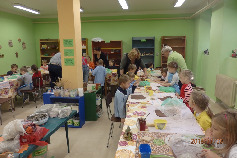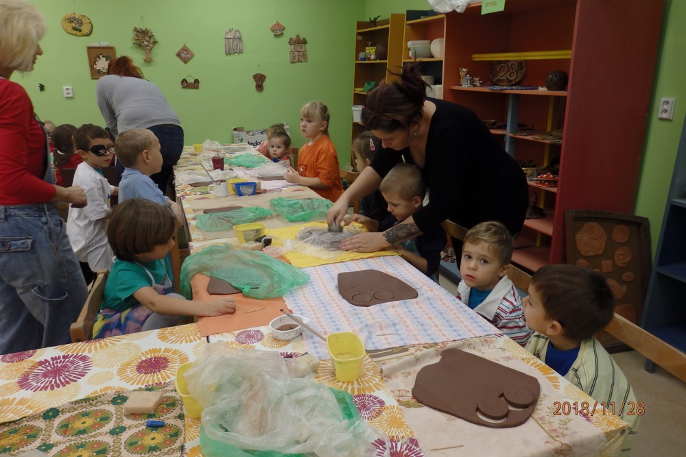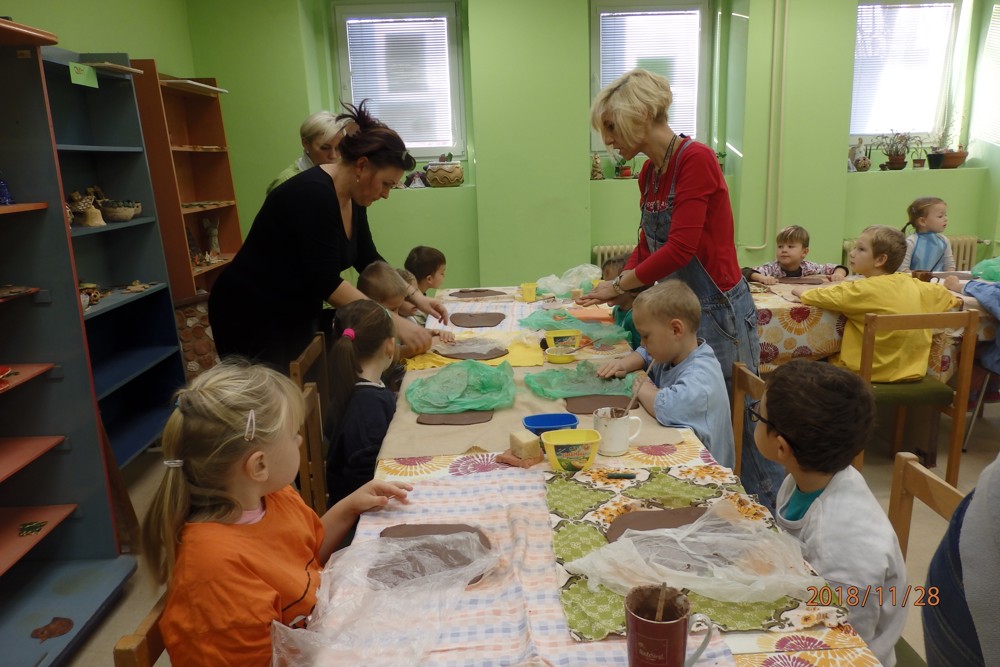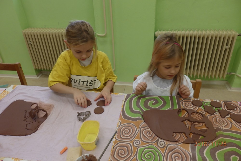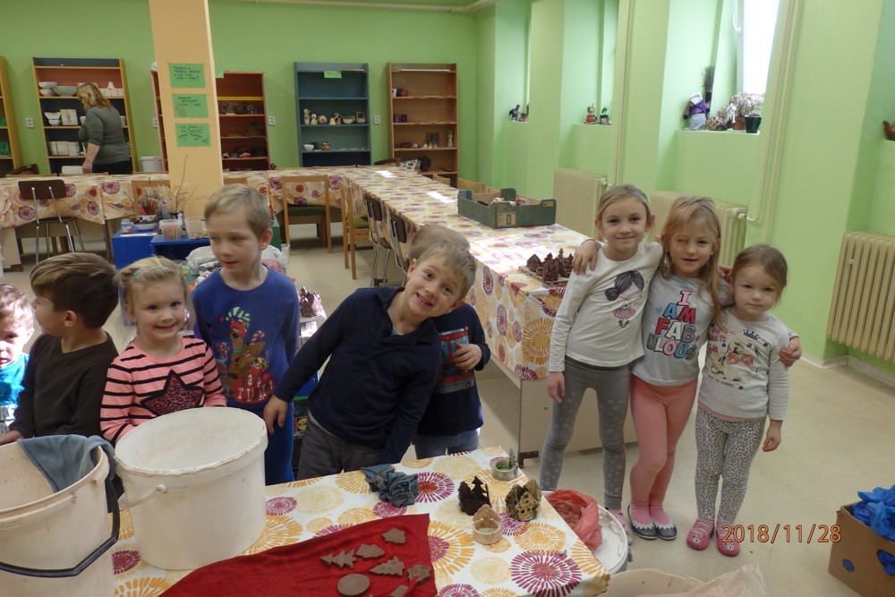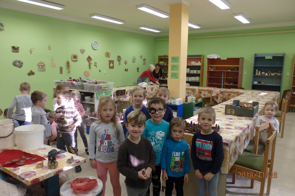 Proto jsme se dnes vypravili do keramické dílny v Domě dětí a mládeže v Oseku. Děti se seznámily s novou technikou výtvarného tvoření. Práce s hlínou je moc bavila a užívaly si jí. Byly moc šikovné, hodné a jejich výrobky budou velikým překvapením pro maminky i tatínky. Moc děkujeme skvělým tetám, které nás učily práci s hlínou a po celou dobu nám pomáhaly.