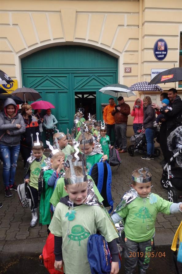 4.5.2019 kolem 10 hodiny se proměnily všechny naše děti v malé zelené mužíčky z planety L.A., nasedly do létajícího talíře a odletěly prozkoumat planetu ZEMI.