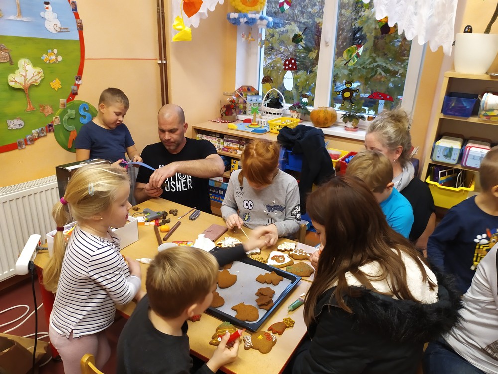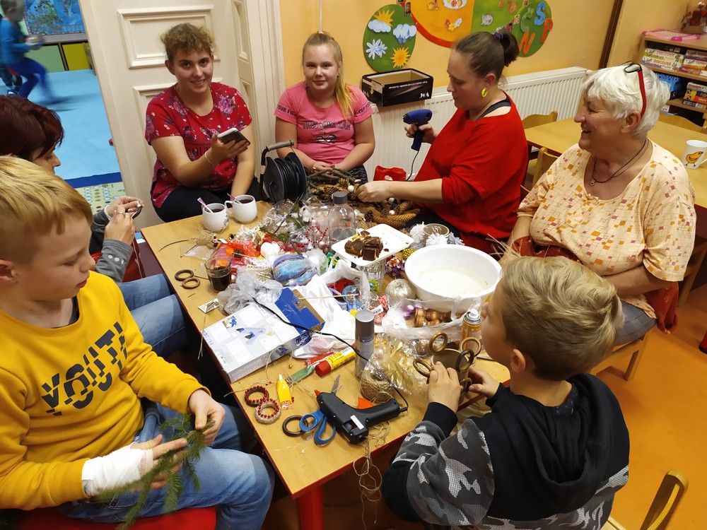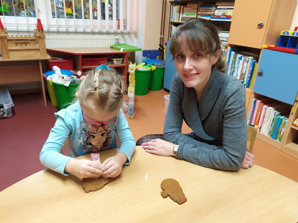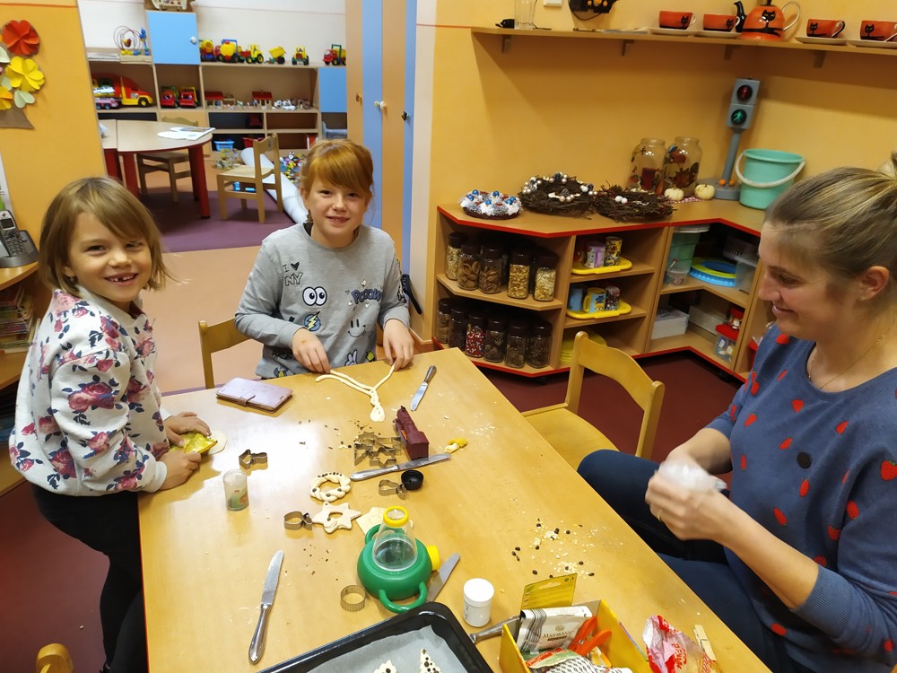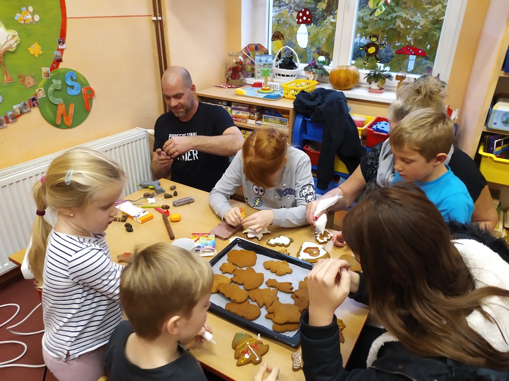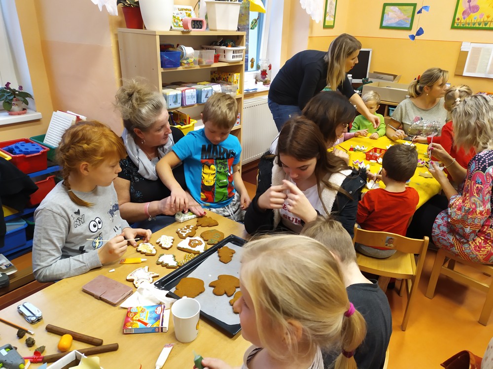 Tentokrát jsme se sešli, abychom ozdobili perníčky, svícny a upekli ozdobičky ze slaného těsta, které budeme prodávat při slavnostním rozsvícení vánočního stromu, kde budou děti zpívat a recitovat. Některé maminky se pustily do výroby úžasných vánočních věnců. Doufáme, že se budou výrobky líbit a dárky, které za vydělané korunky koupíme, udělají radost našim dětem pod vánočním stromečkem.