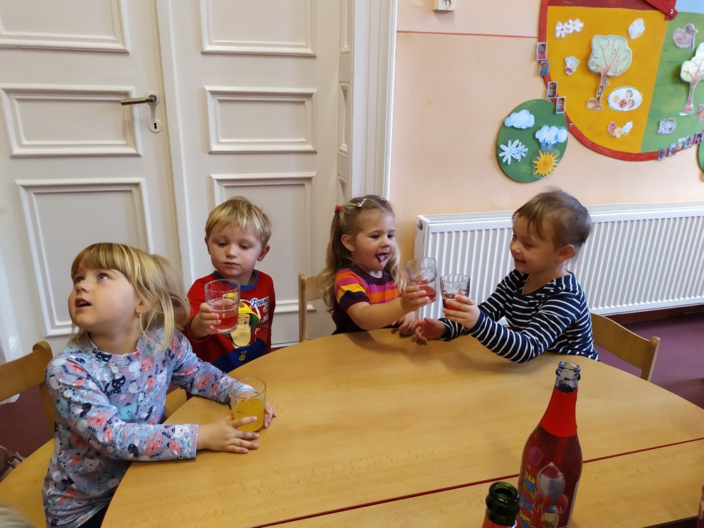Svoji první narozeninovou oslavu, s kamarády ve školce, si vyzkoušela naše malá Andělka. Děti jí popřály, předaly dárečky a ona je pozvala na malé pohoštění.
