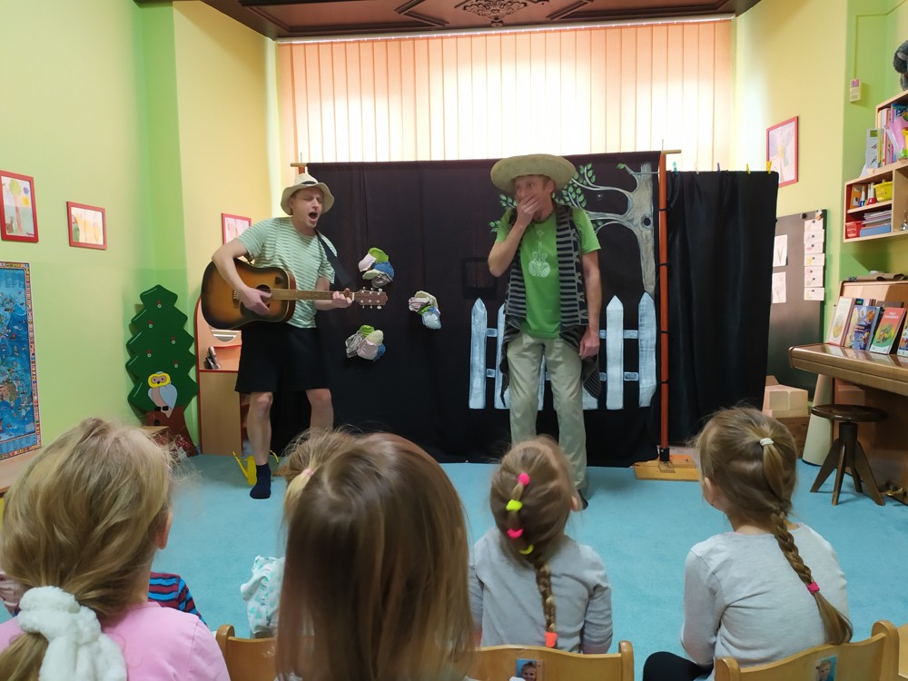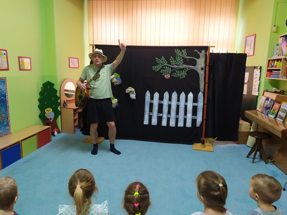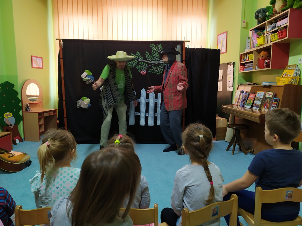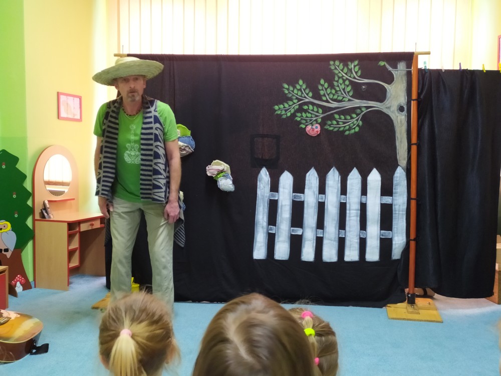 Do školky za námi přijelo Divadlo Krabice s pohádkou " Václav a slimák". Pohádka byla nejen vtipná, ale pro děti i velice naučná a moc se jim líbila.