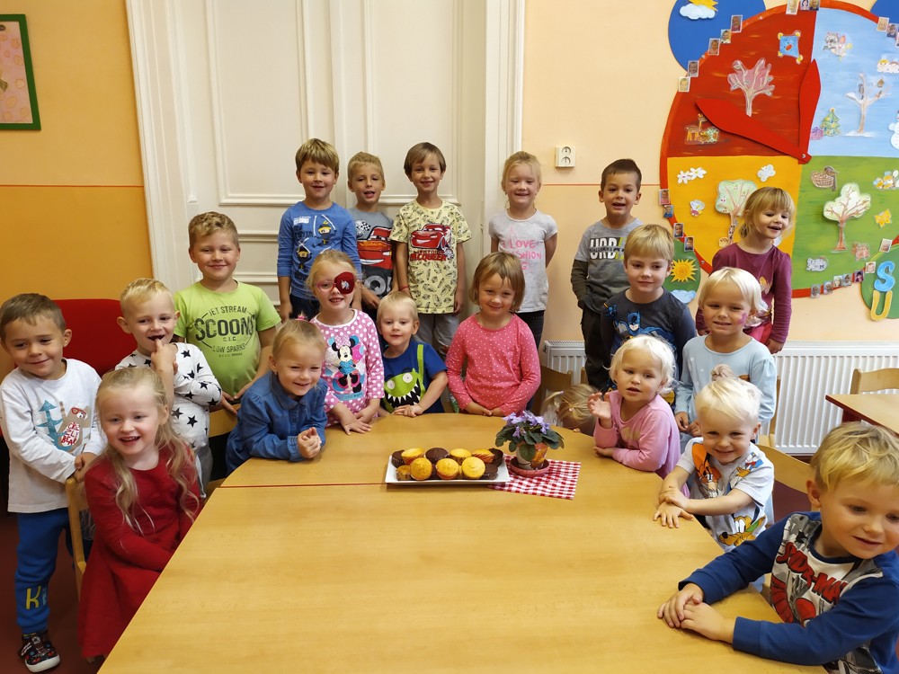 Malý Fanoušek oslavil ve školce s kamarády svůj svátek a pohostil je výbornými muffinami, které doma upekl s maminkou.