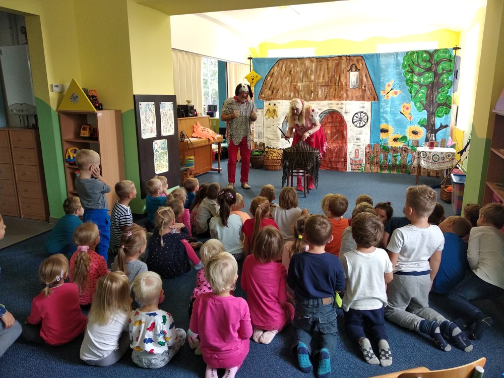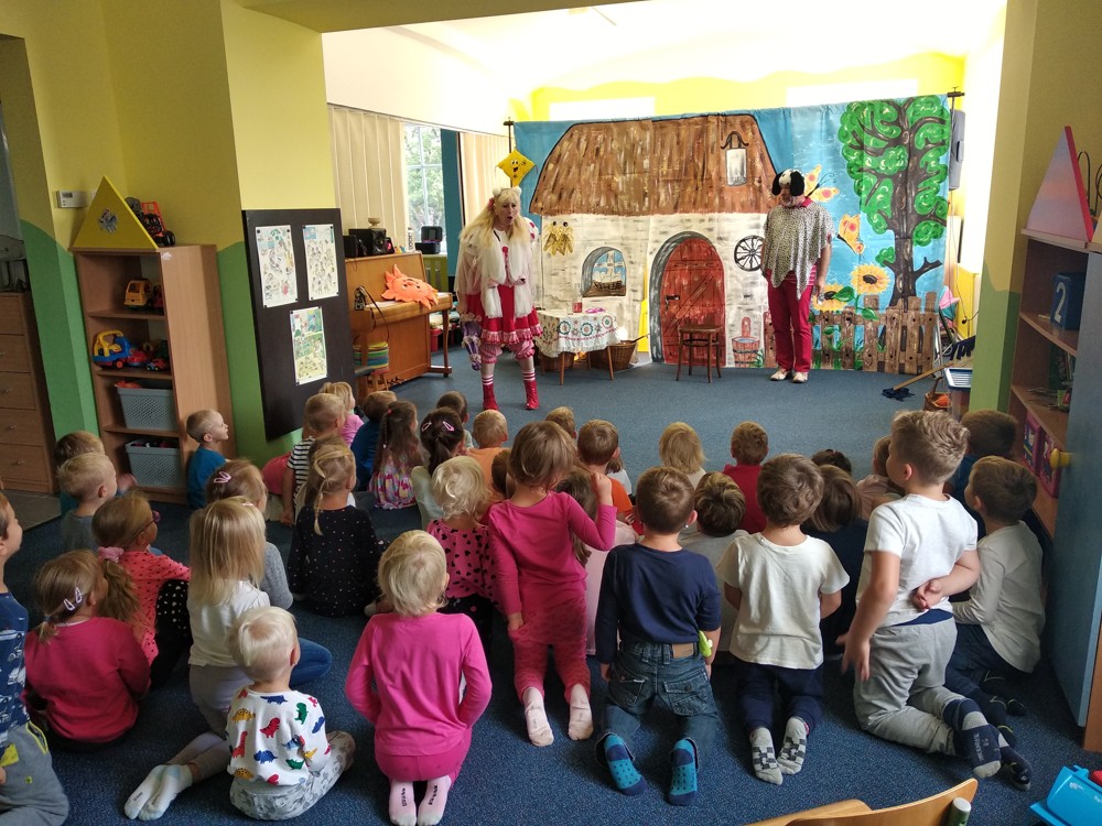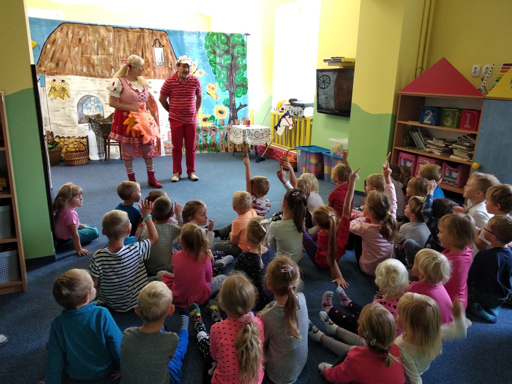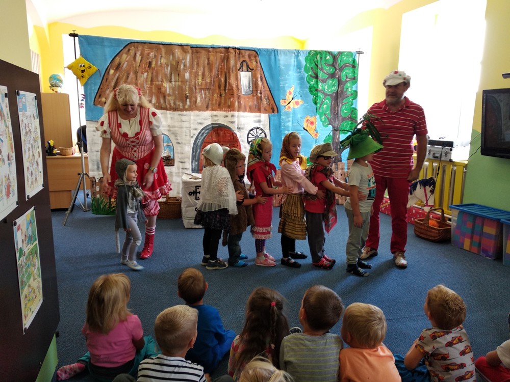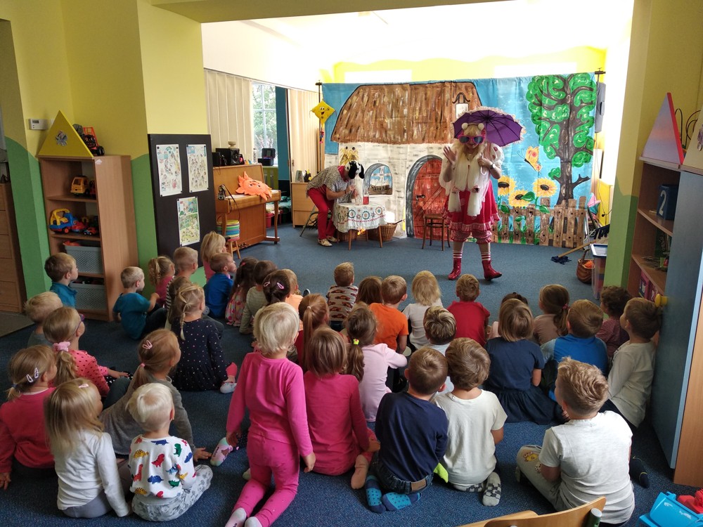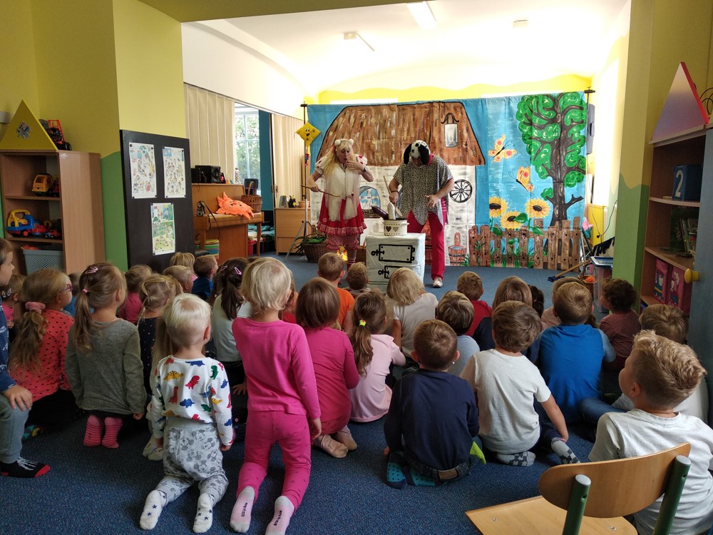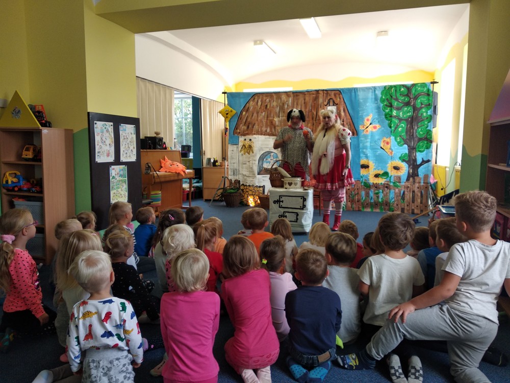 Dnes jsme se vypravili do Mateřské školy v Jeníkově, kam za námi přijelo Divadlo M z Duchcova s pohádkou " Majda a Kuba v pohádce". Pohádka se nám líbila o to víc, že si v ní mohly děti také zahrát. Nakonec jsme si společně zazpívali, zatančili a už byl čas se zase procházkou vrátit do naší školky