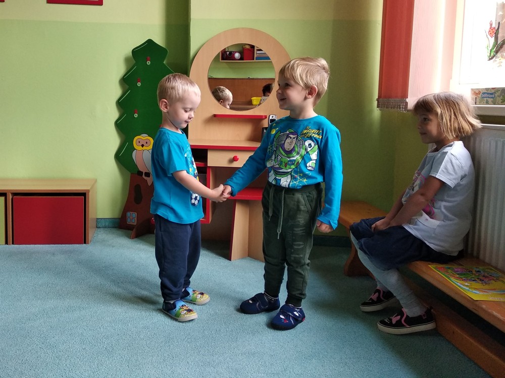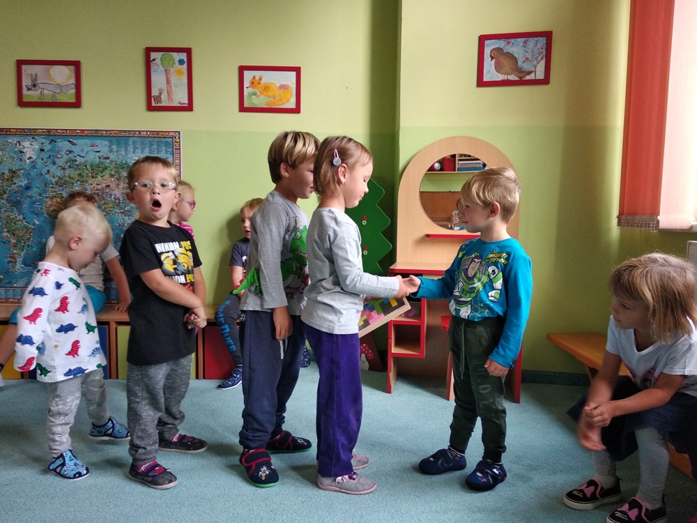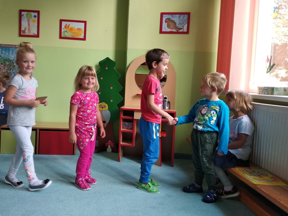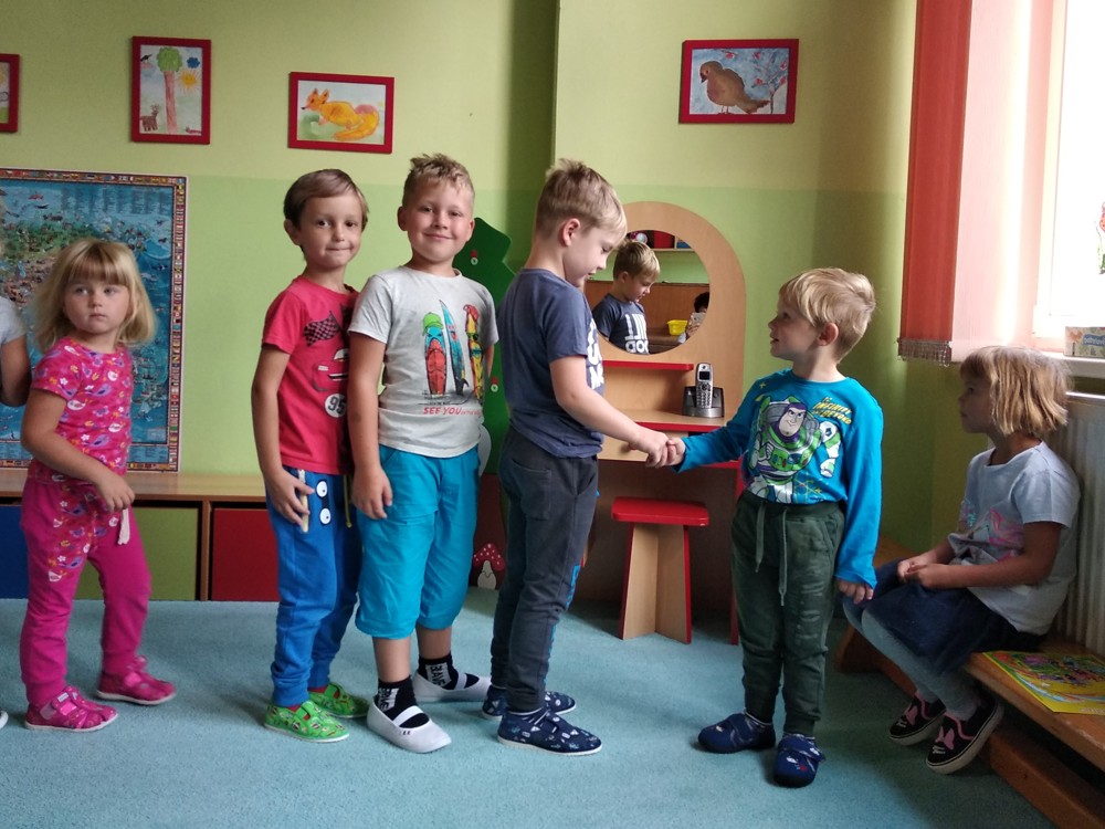 Svoji první školkovskou oslavu si dnes užil malý Miloušek. Děti mu popřály, předaly dárečky a on je za to pozval na hostinu.