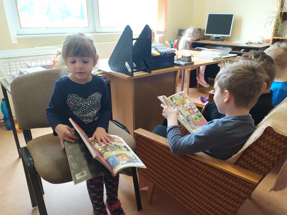 Březen je měsícem knihy, proto jsme se s dětmi vypravili do místní knihovny. Děti si se zájmem prohlížely dětské knihy, připomněly si, jak s nimi správně zacházet a poslechly krátkou pohádku, kterou jim přečetla paní učitelka.
