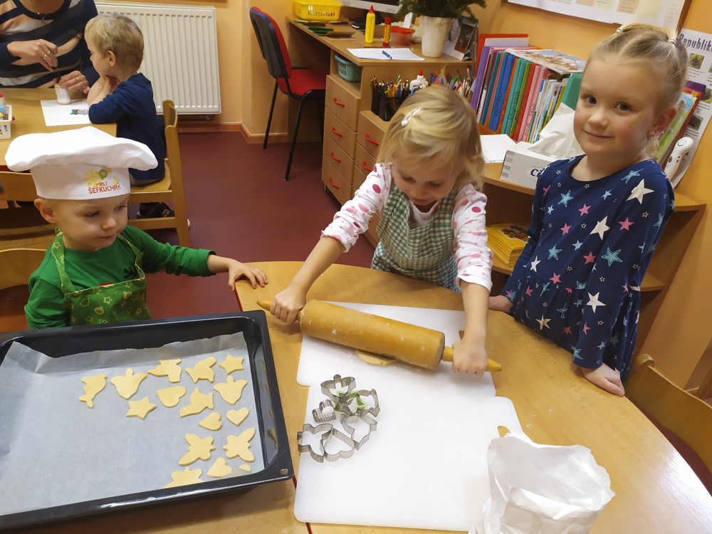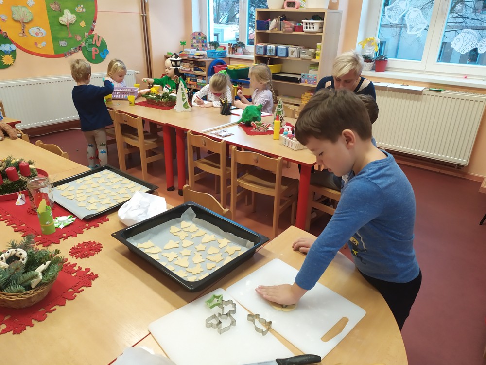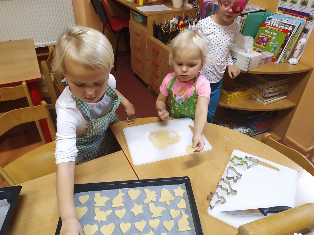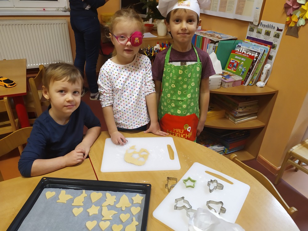Vánoční přípravy jsou v plném proudu. Už máme vyzdobenou celou školku, nacvičené básničky a písničky a už zbývá jen napéct cukroví. Děti byly moc šikovné a práce jim šla pěkně od ruky. Doufáme, že bude chutnat.