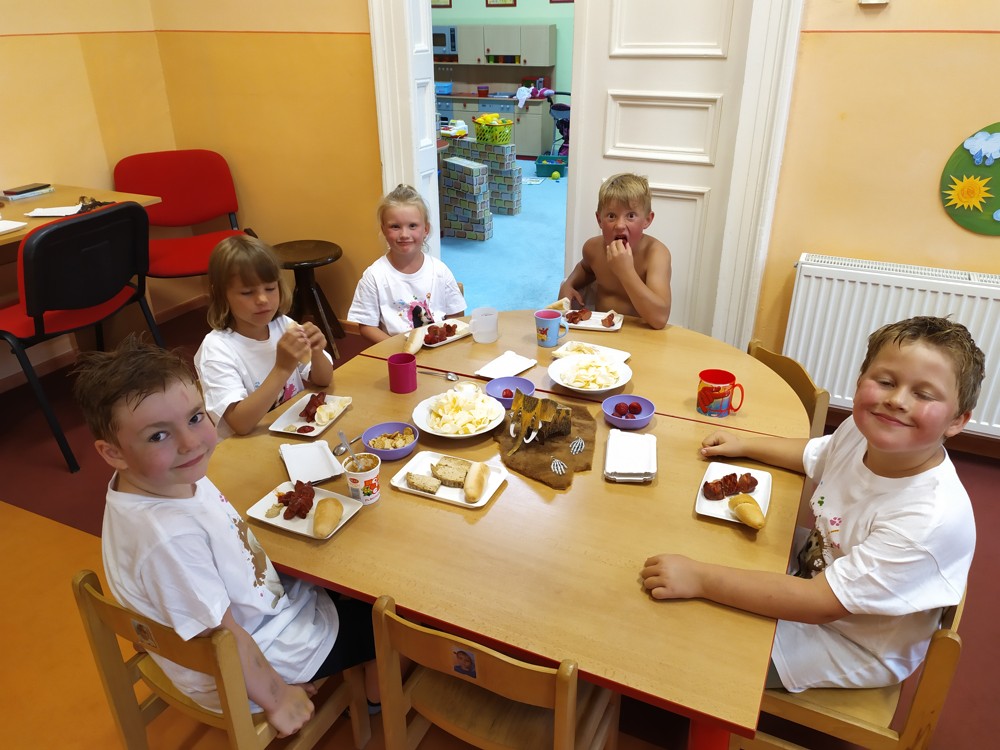 Svůj velký den si školáci užívali. Počasí nám sice nepřálo, ale ve školce bylo také príma.