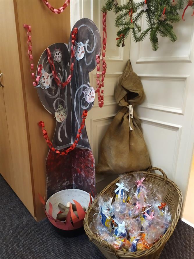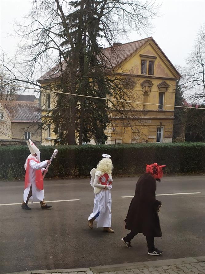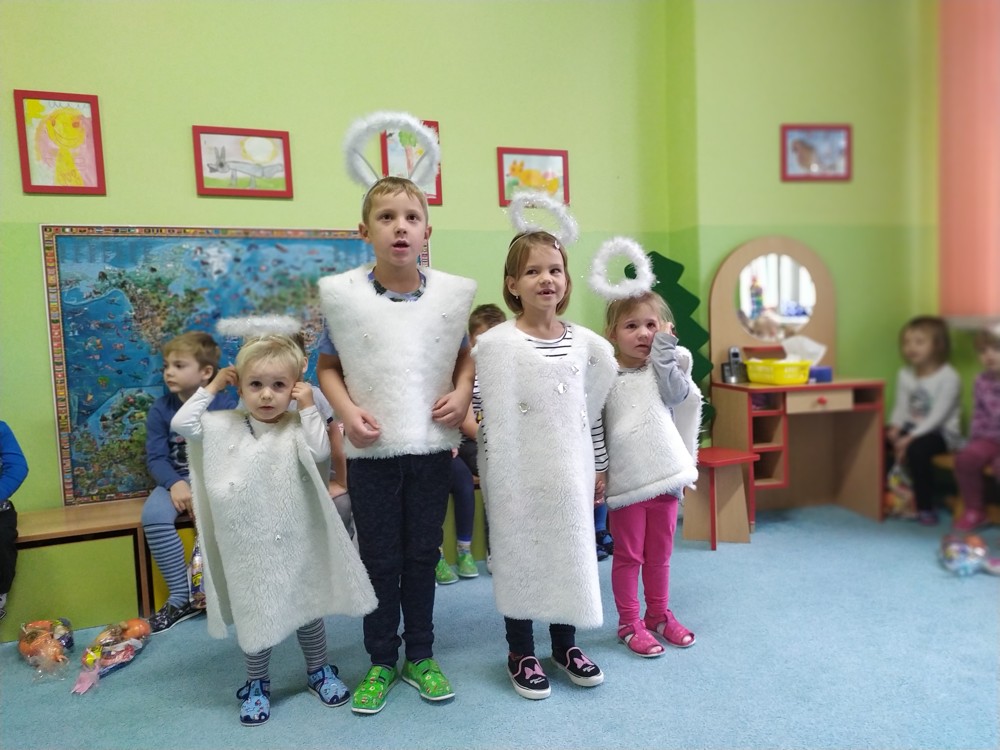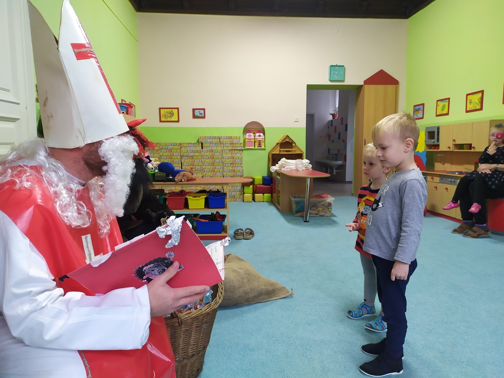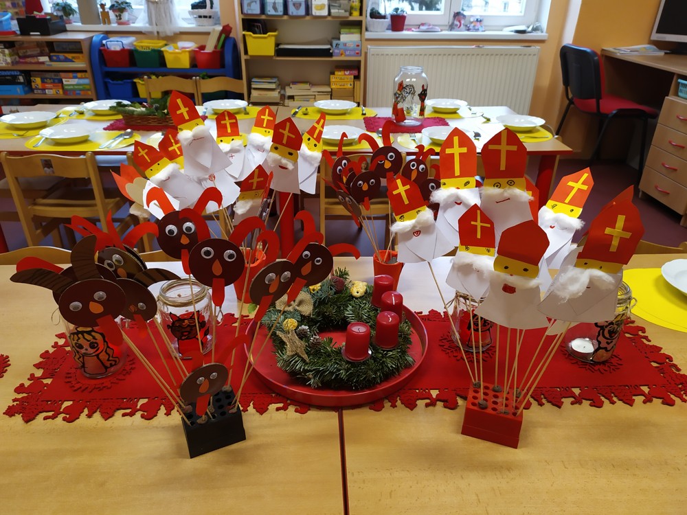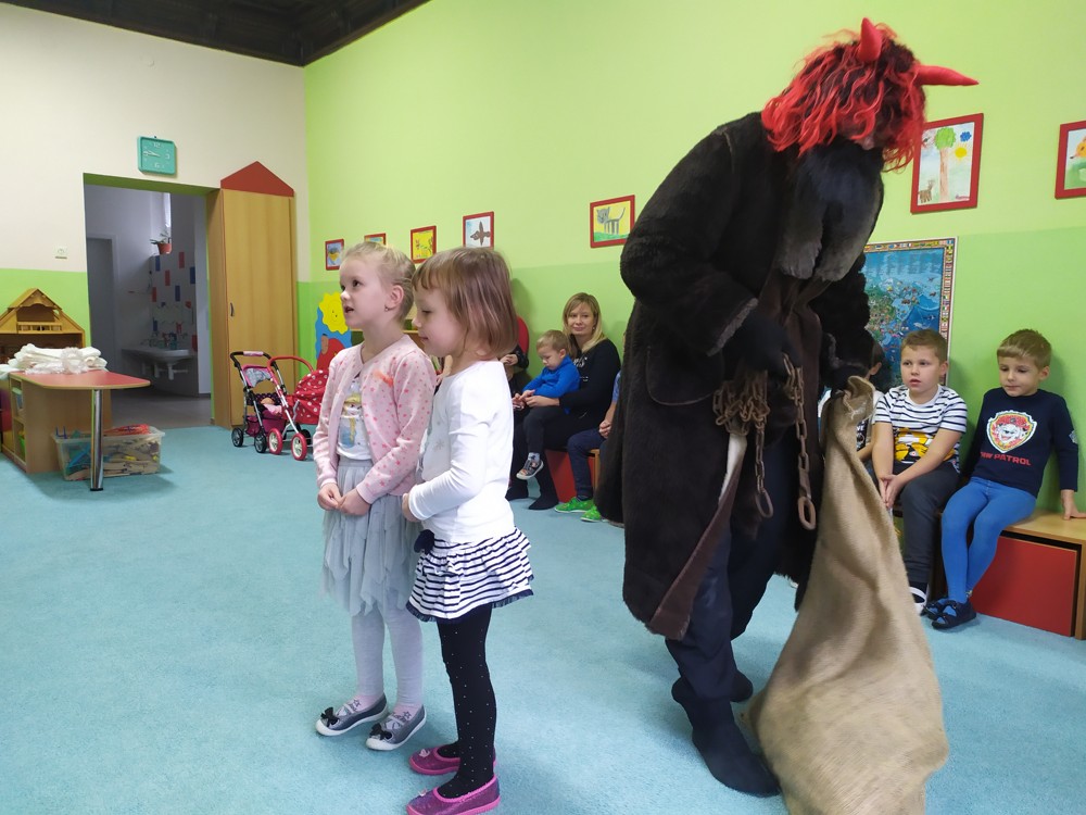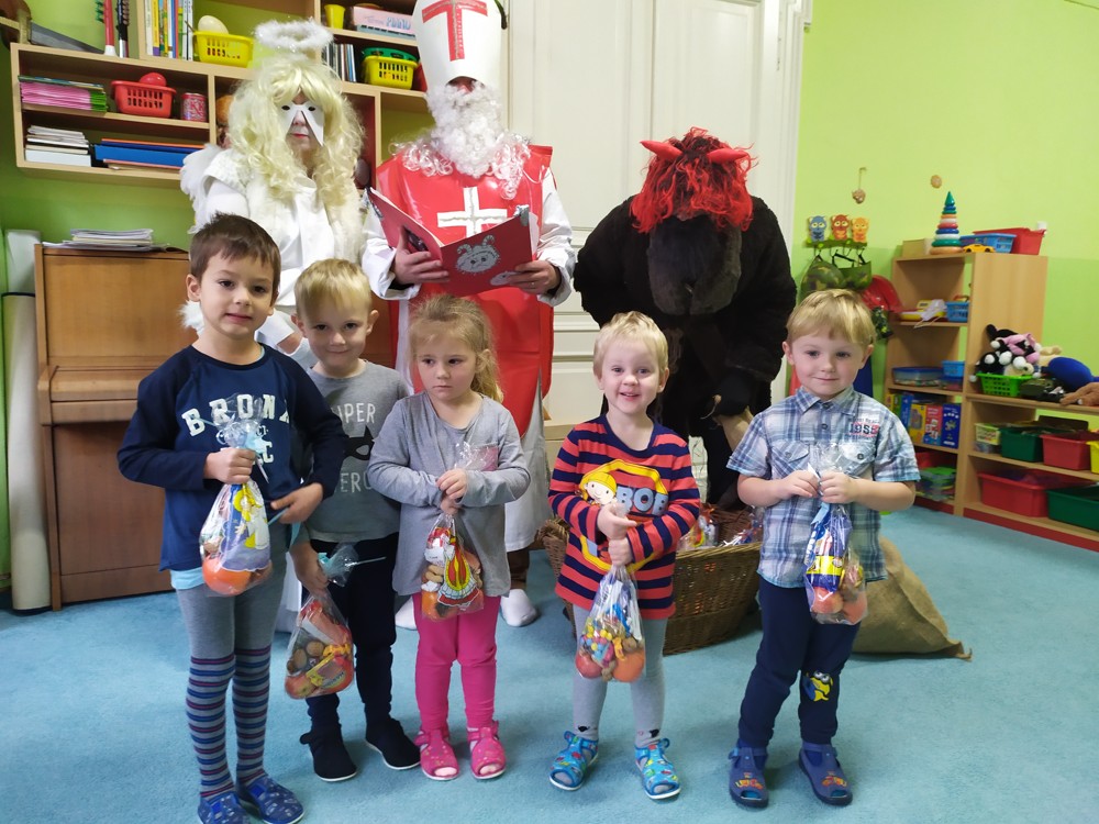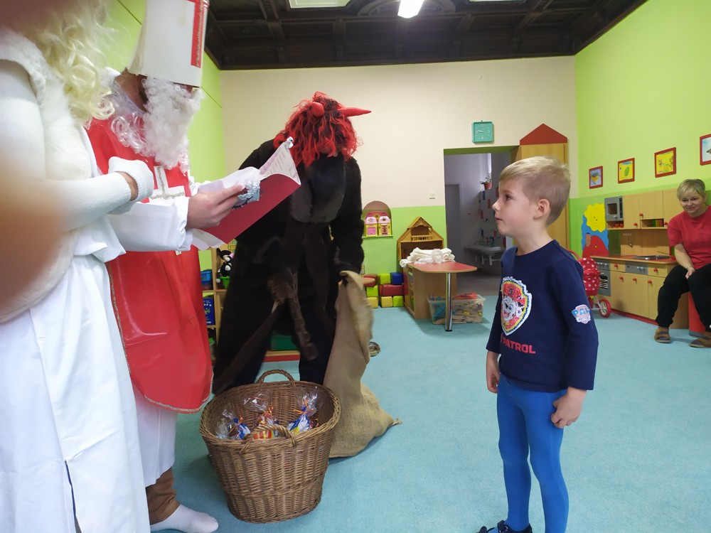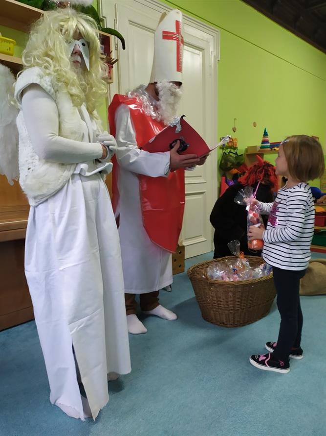 Tvořili jsme, malovali, abychom měli hotovou výzdobu před příchodem čerta a Mikuláše. Od rána jsme je vyhlíželi a konečně jsou tady. Někteří zlobílkové se trochu báli. "Co když čert a Mikuláš vidí nějaké to zlobení a odmlouvání maminkám? " Všechno ale dopadlo dobře, protože Mikuláš je hodný pán, který dává dětem marcipán a přivedl s sebou anděla, který vše zachraňoval a pomáhal svým andělským úsměvem. Tak zase za rok...