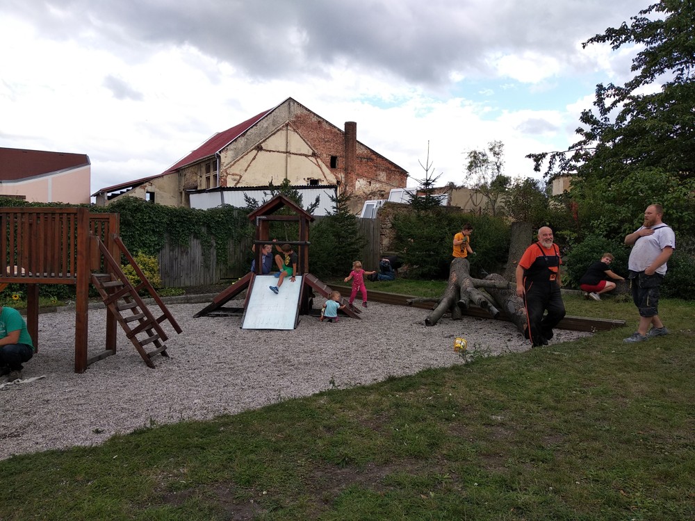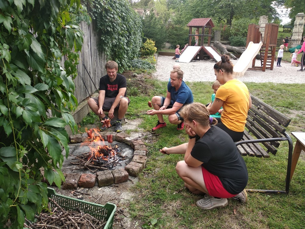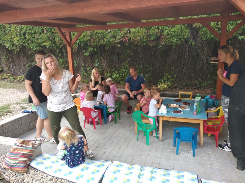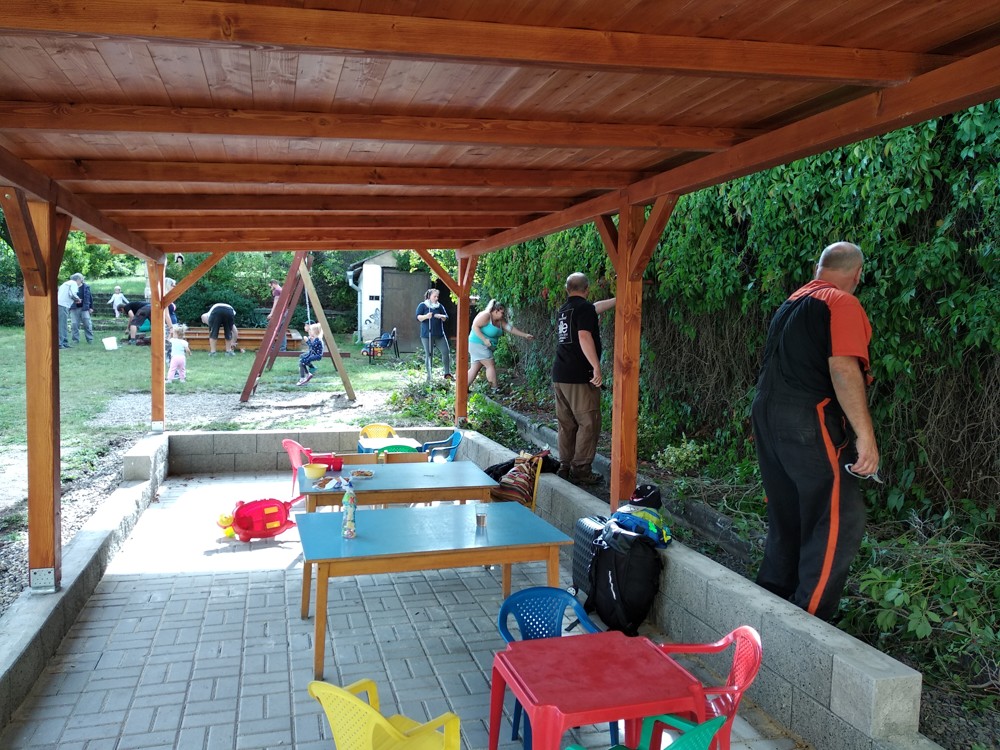 Po práci jsme si společně poseděli pod naší novou pergolou, která vznikla za podpory MAS NADĚJE a Ústeckého kraje, u kafíčka, moučníku i opečených buřtíků. Setkání bylo příjemné, zahrádka je upravená a my všem moc děkujeme za účast i pomoc.