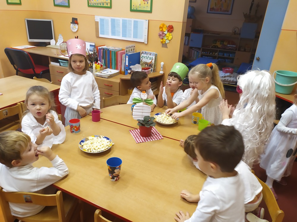 Venku se počasí tváří spíše jarně, ale ve školce se to hemží samými sněhuláky. Ti si celé dopoledne hrají, tvoří, cvičí, zpívají, soutěží, ale také mlsají samé sněhulácké dobroty. Děti si sněhulácký den užívaly a zakončily ho pořádnou koulovačkou.