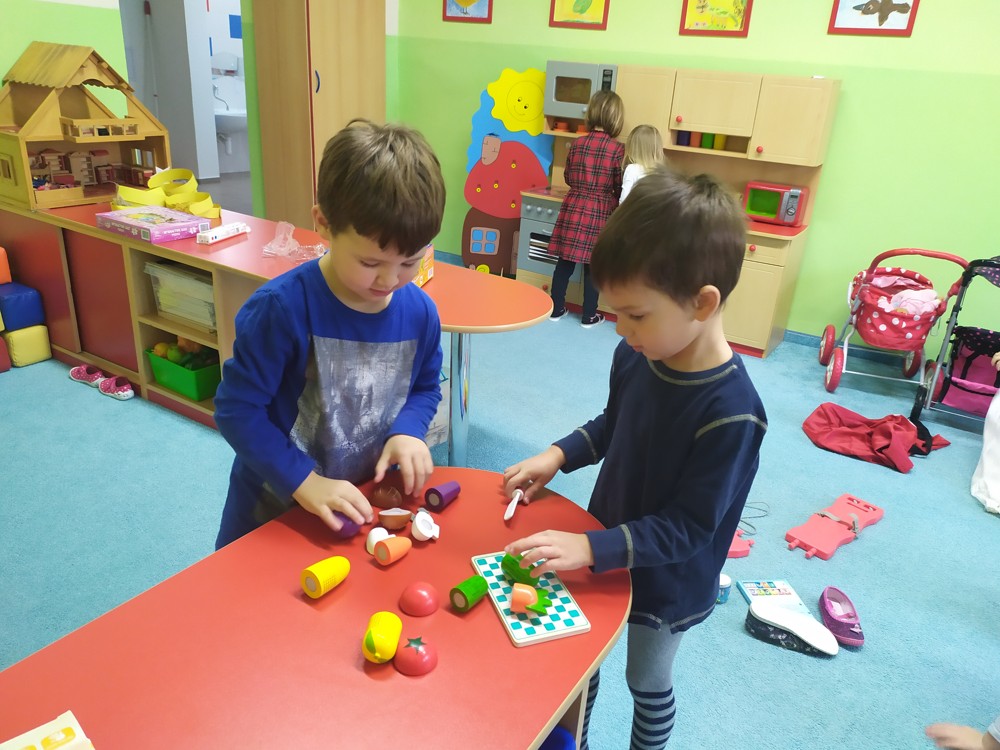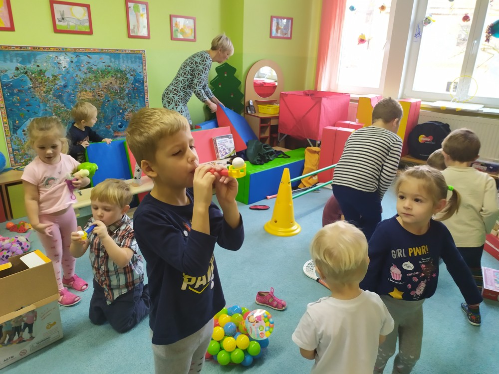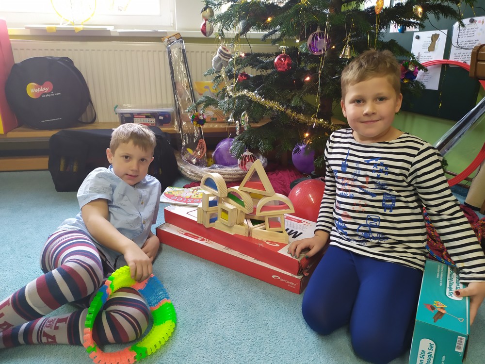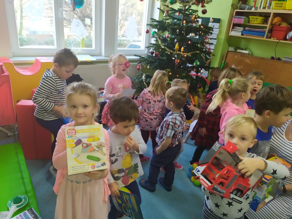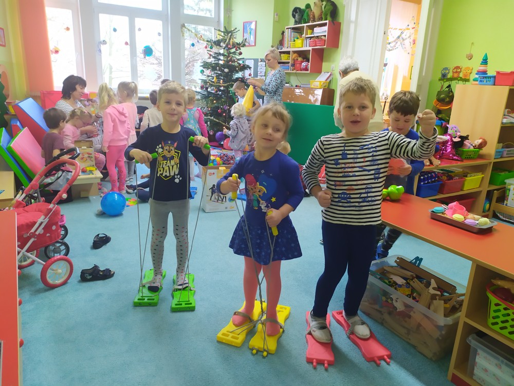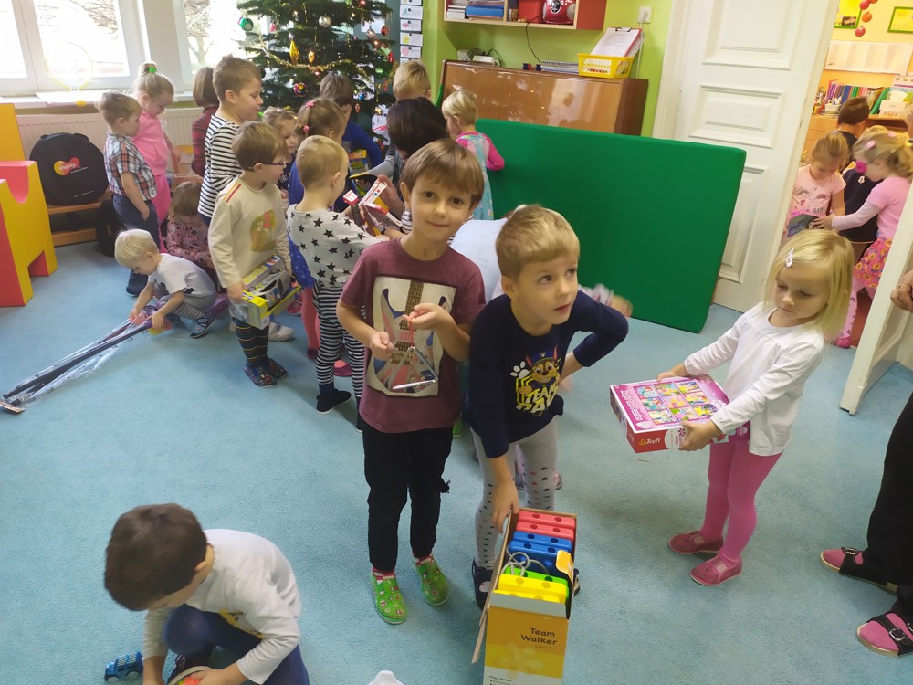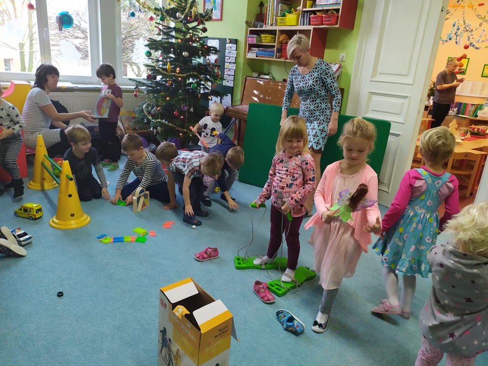 Zatím co děti ve třídě pozorovaly padající peříčka za okny, zpívaly a recitovaly, Ježíšek mohl v tichosti v herně nadělovat dárky pod vánoční stromeček.