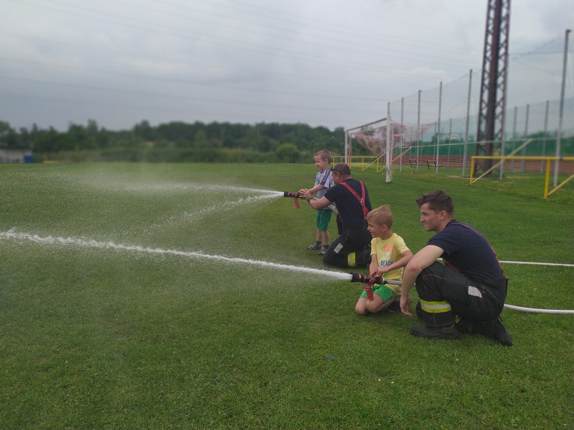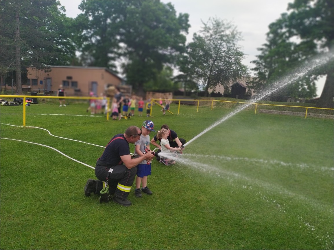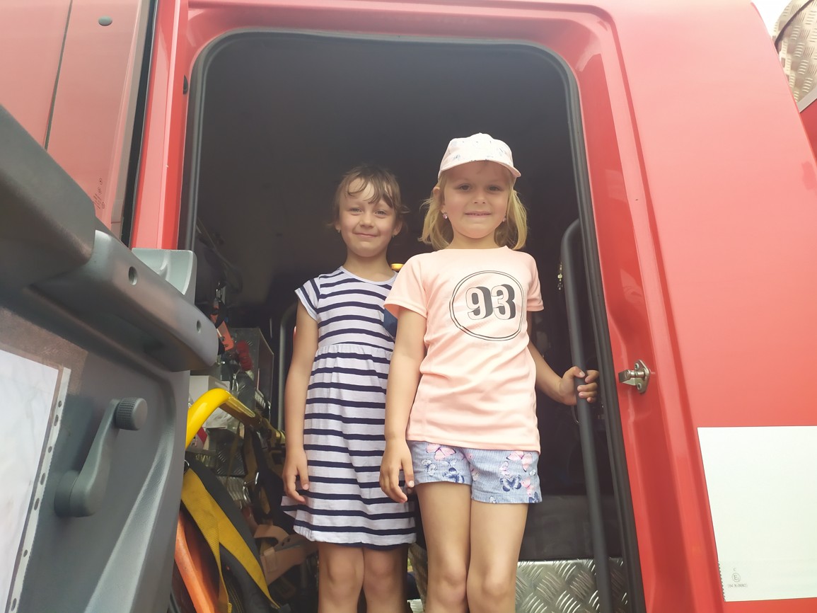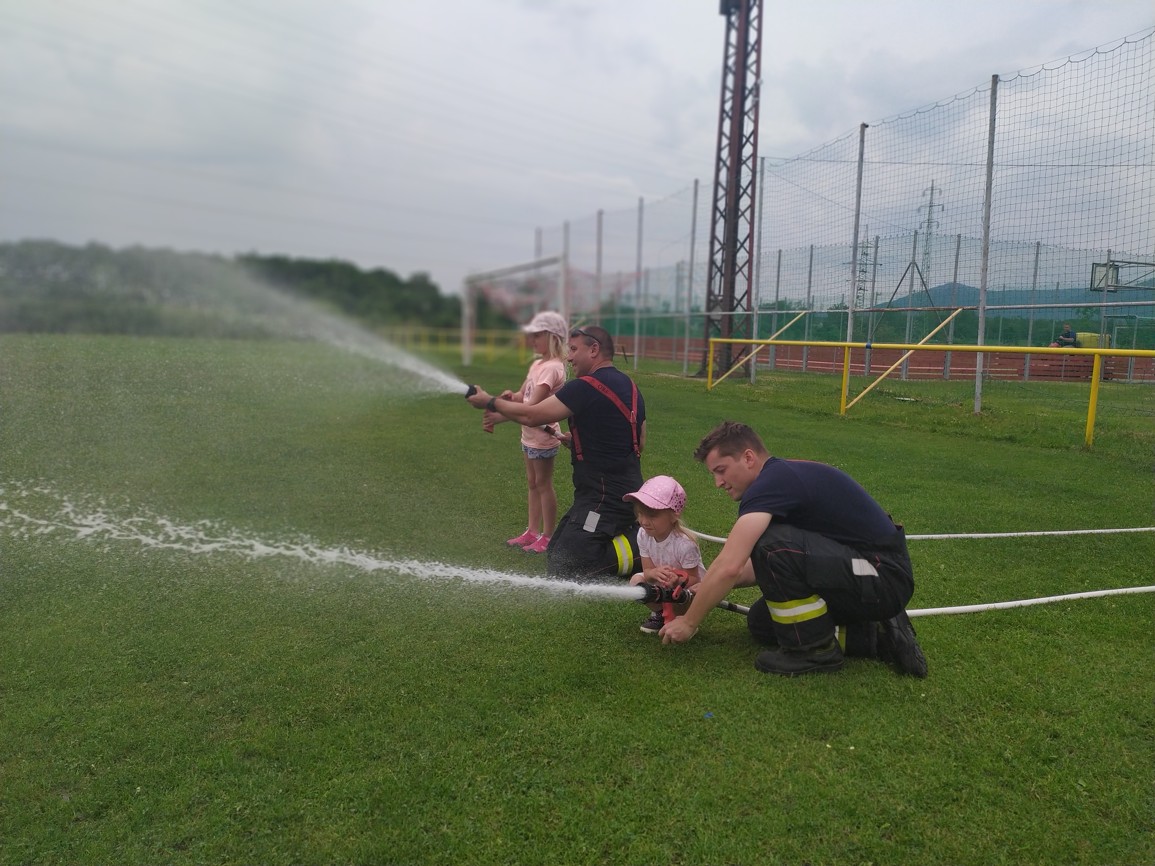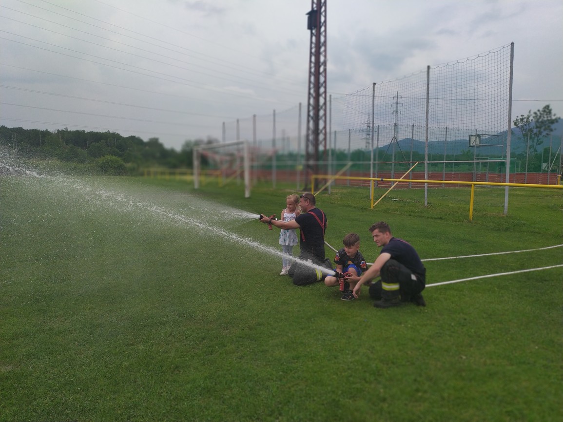 Děti mohly vidět, co si hasič obléká, když vyjíždí k požáru, jak zachraňuje osoby ze zakouřeného prostředí, jak vypadá požární auto uvnitř, ale nejvíce se jim líbilo, když si mohly vyzkoušet hašení pomyslného požáru. Sice jsme se trochu namočili, ale běh přes celé hřiště a hasičská bunda nás trochu zahřála a sluníčko osušilo. Moc děkujeme za návštěvu a už se těšíme zase příště.