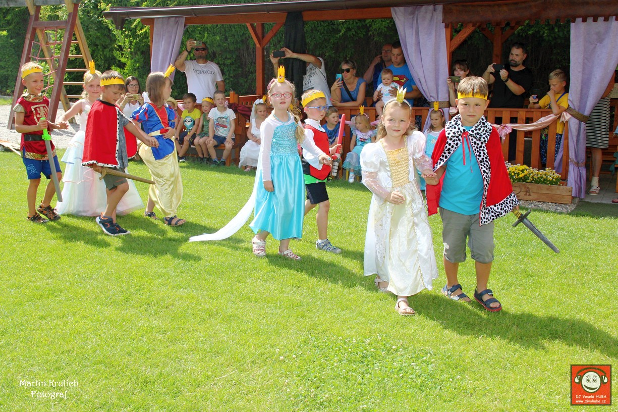 Na naší královské zahradě proběhlo pasování školáků. Nejprve ale museli rytíři zachránit princezny za spárů strašného draka. Protože jsou velice zdatní, za chvíli tříhlavou saň přemohli. Potom už celé království jen slavilo, tančilo a hodovalo.