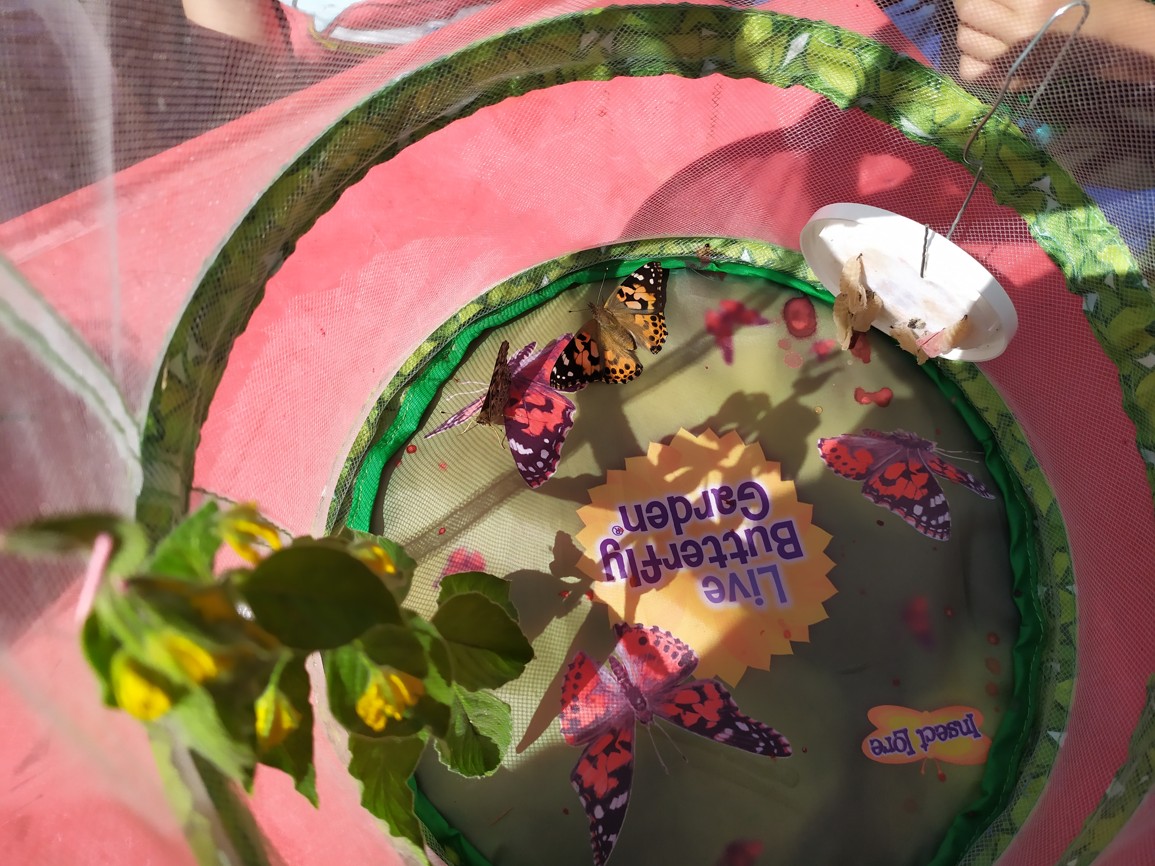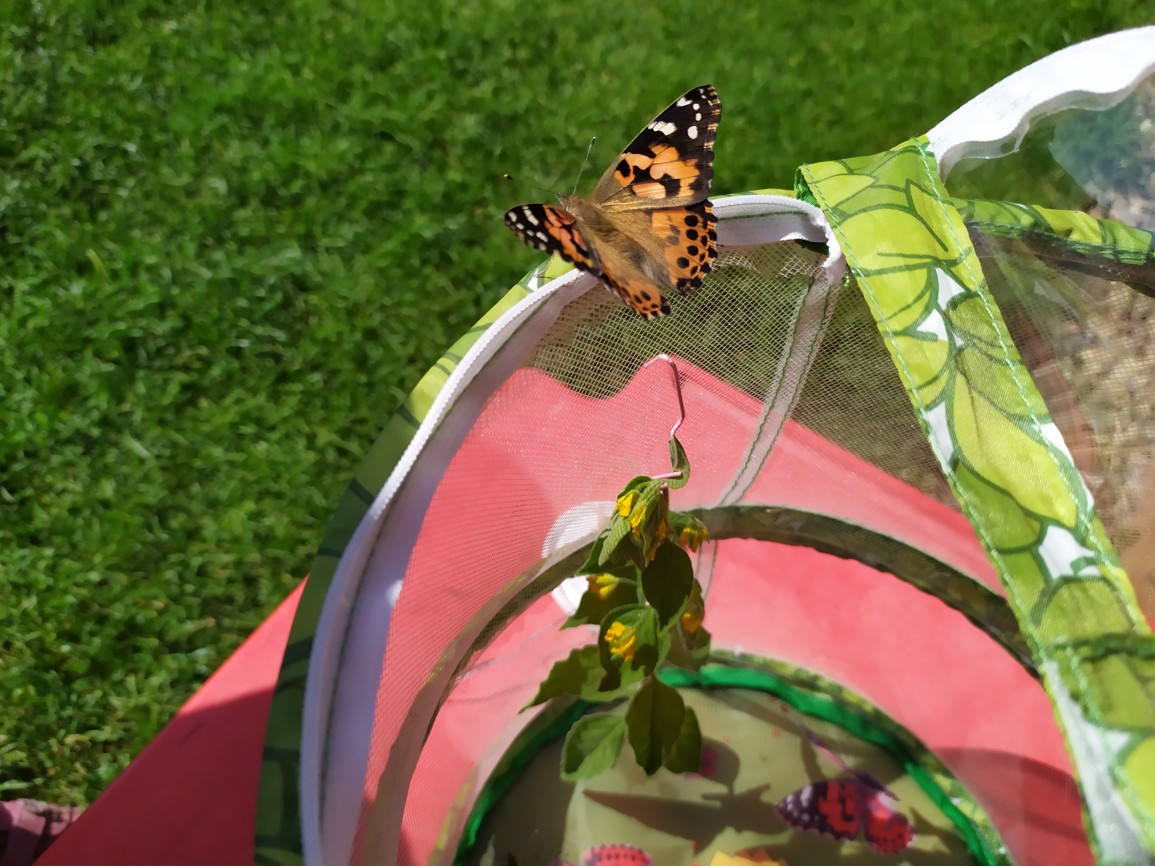 Celý měsíc mohly děti pozorovat vývoj malé housenky v krásného motýla Babočky Bodlákové. Když se děti konečně dočkaly a motýlci se vylíhli z kukly a trochu se posilnili nektarem z čerstvých květů a ovoce, tak je mohli naši budoucí školáčci slavnostně vypustit na školní zahradě. Tak šťastnou cestu…..