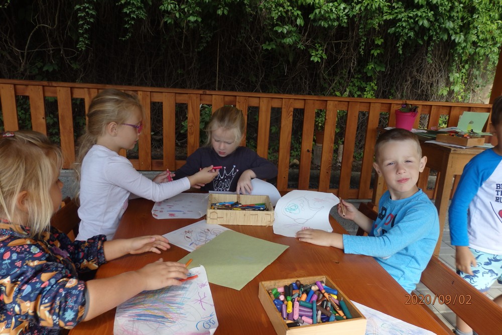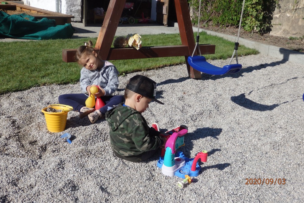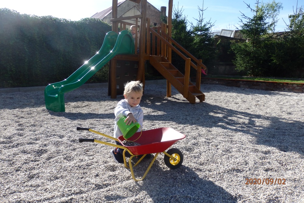 První týden je za námi a byl moc príma, protože dětem se ve školce líbí a slziček bylo úplně malinko. Malíčkové jsou moc šikovní, rádi cvičí, malují, ale ze všeho nejvíc se jim líbí na naší zahrádce, kde trávíme spoustu času a dokonce tu i svačíme a obědváme. Také si nás tu maminky po obědě vyzvedávají. Moc bychom si přáli, aby nám ještě dlouho hřálo sluníčko, a my jsme si mohli naší krásnou zahrádku užívat.