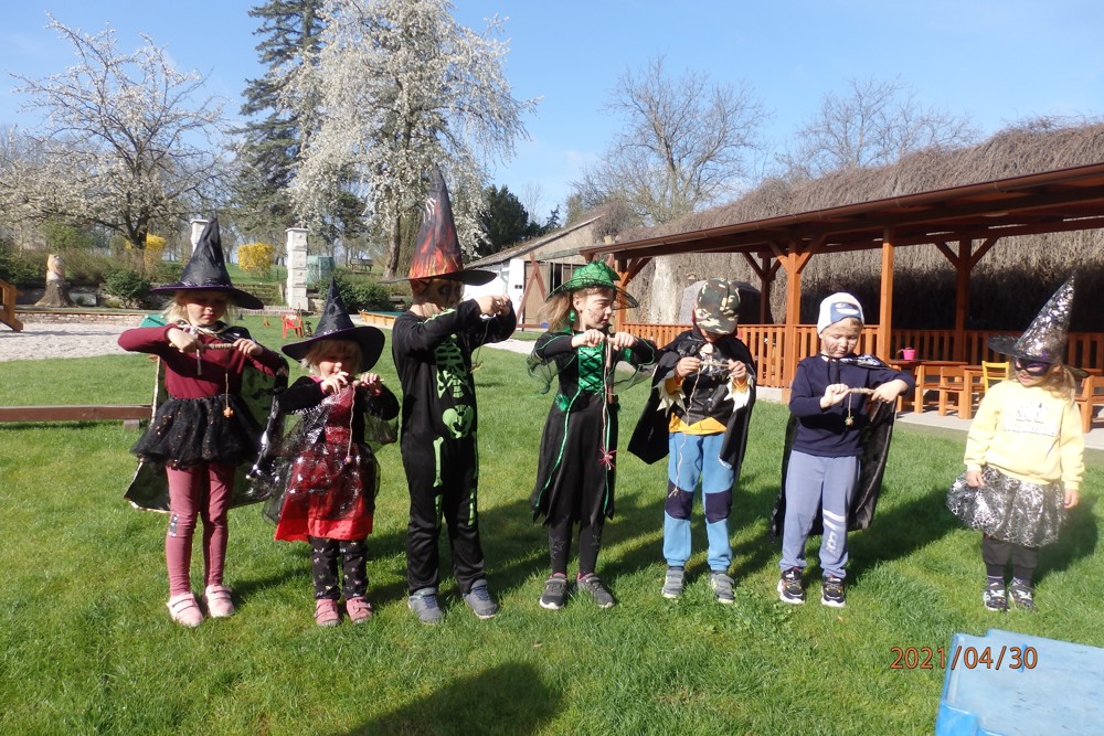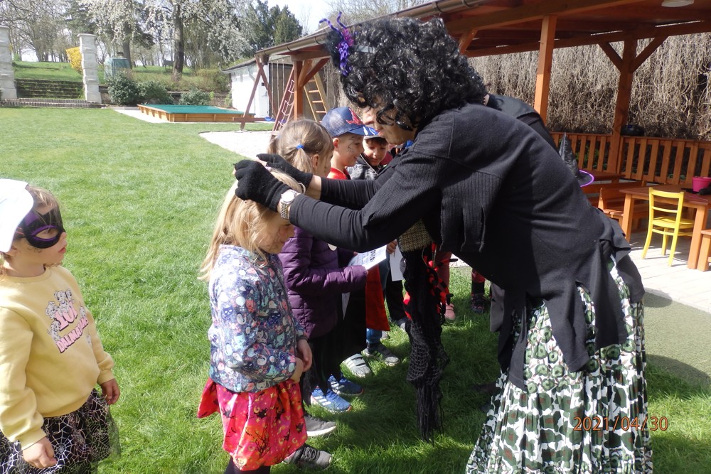 Čarodějnice plnily čaroúkoly, létaly na koštěti, vařily kouzelný lektvar a pochutnávaly si na pečených žabích stehýnkách. Malé myšky, které si děti vyráběly ve školce, jim ukázaly cestu k překvapení. Domů si naše malé čarodějnice odnášely čarodiplom, medaili a pár sladkostí.