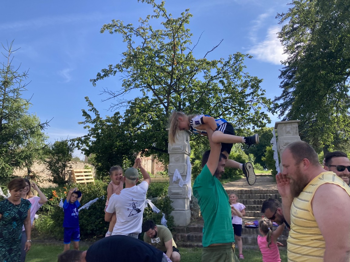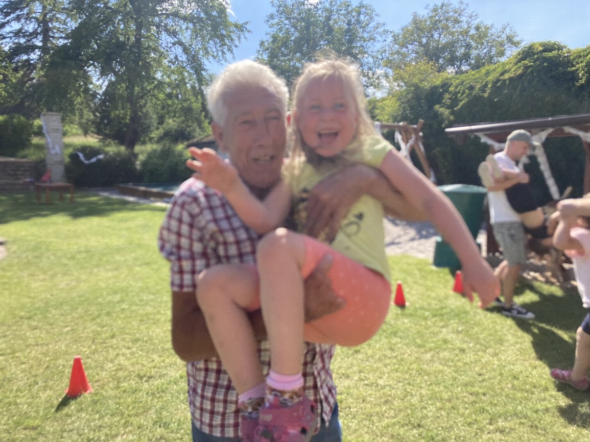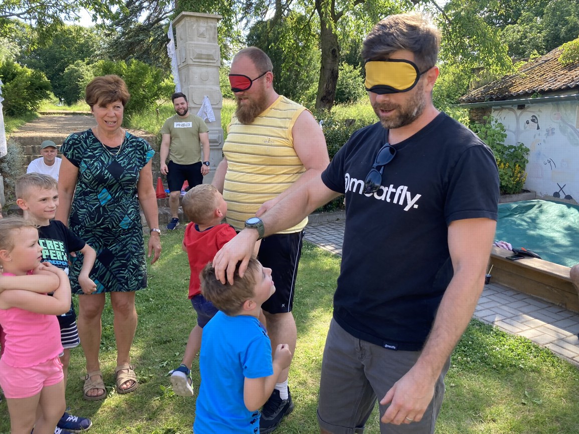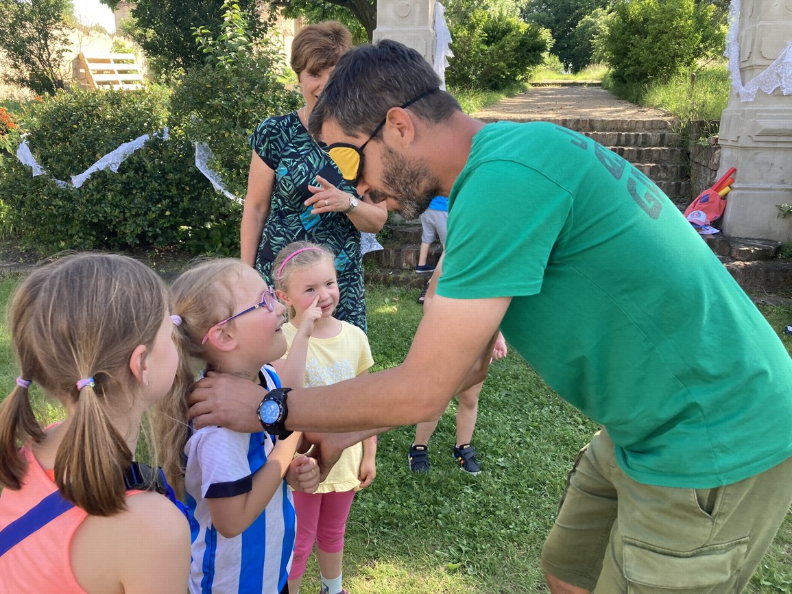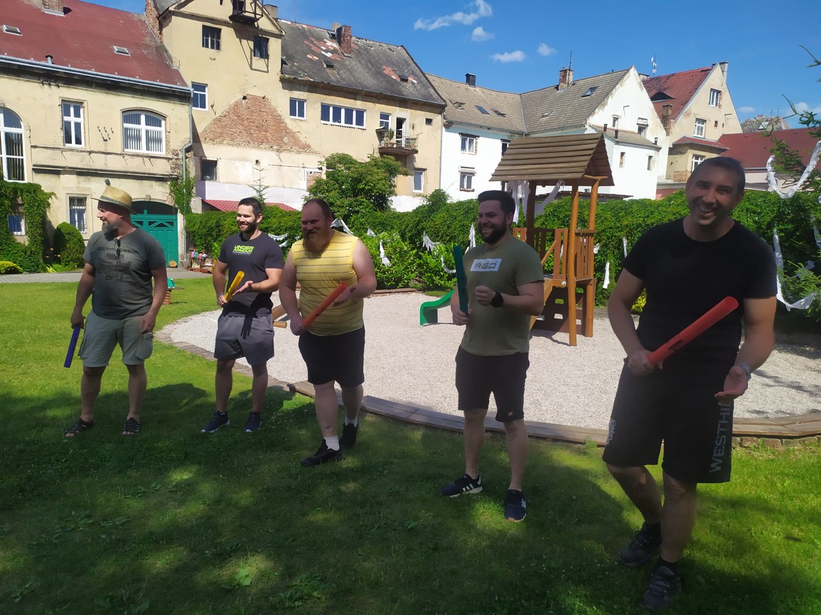 Na školní zahradě bylo dnes opravdu veselo. Při oslavě svého svátku si naši tatínkové vyzkoušeli disciplíny: „Najdi své dítě, obuj ho a nakrm.“ Také předvedli při hře na barevné trubky své hudební dovednosti a vynikali i ve sportu.