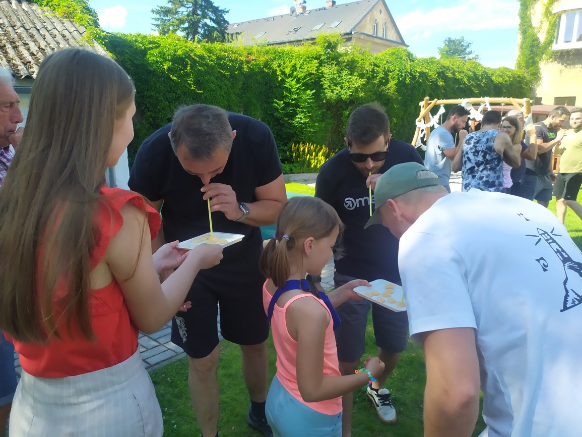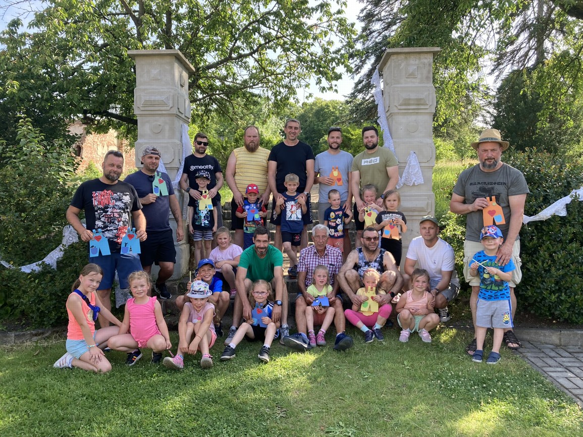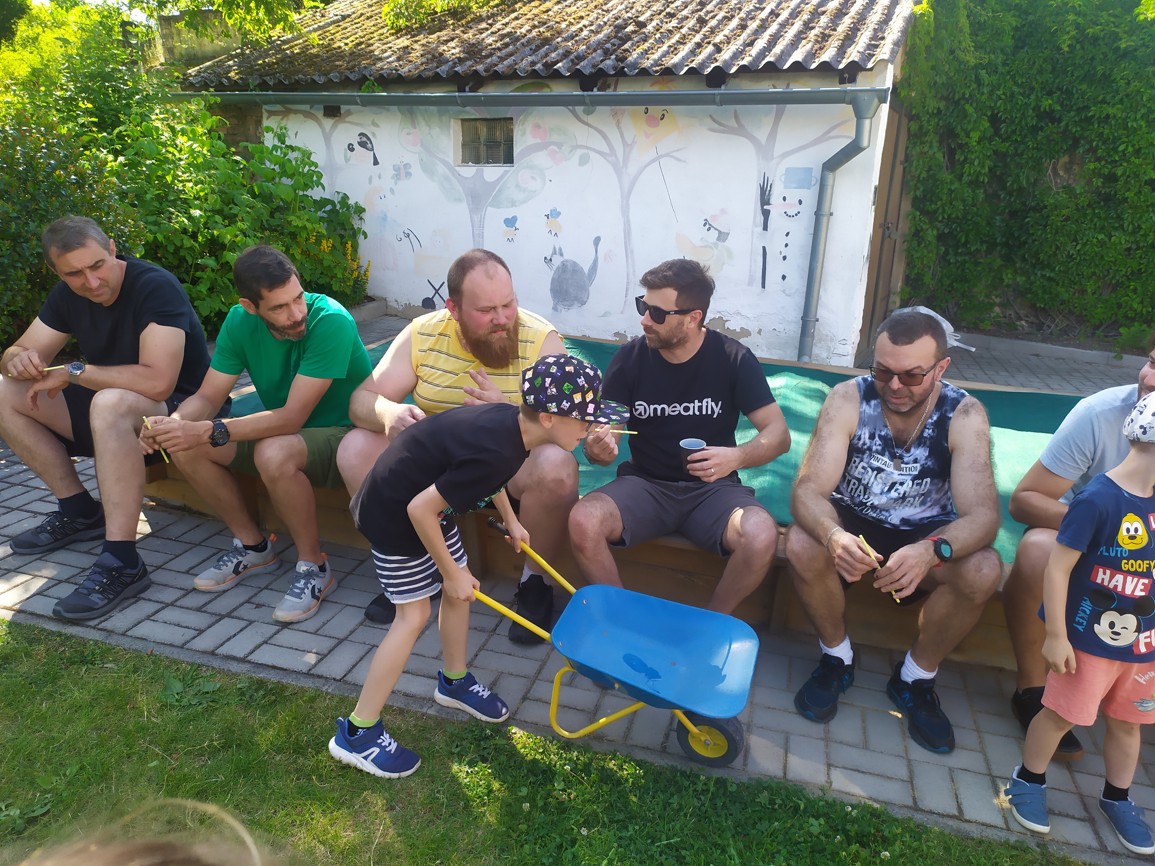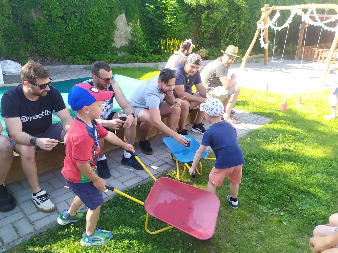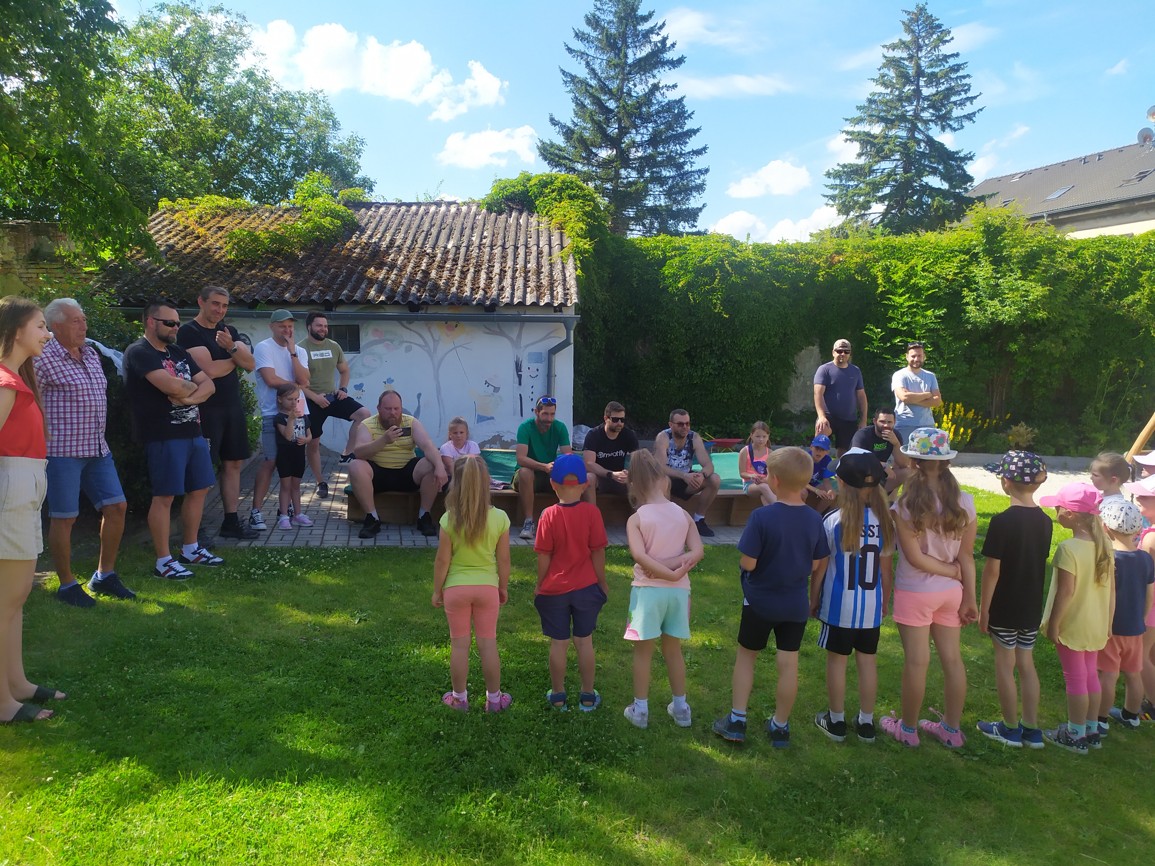 Děti se postaraly o pitný režim a pohostily tatínky čerstvou, studenou vodou. Společně jsme poseděli u výborného moučníku, kafíčka a opekli buřtíky. Celé odpoledne jsme si moc užívali.