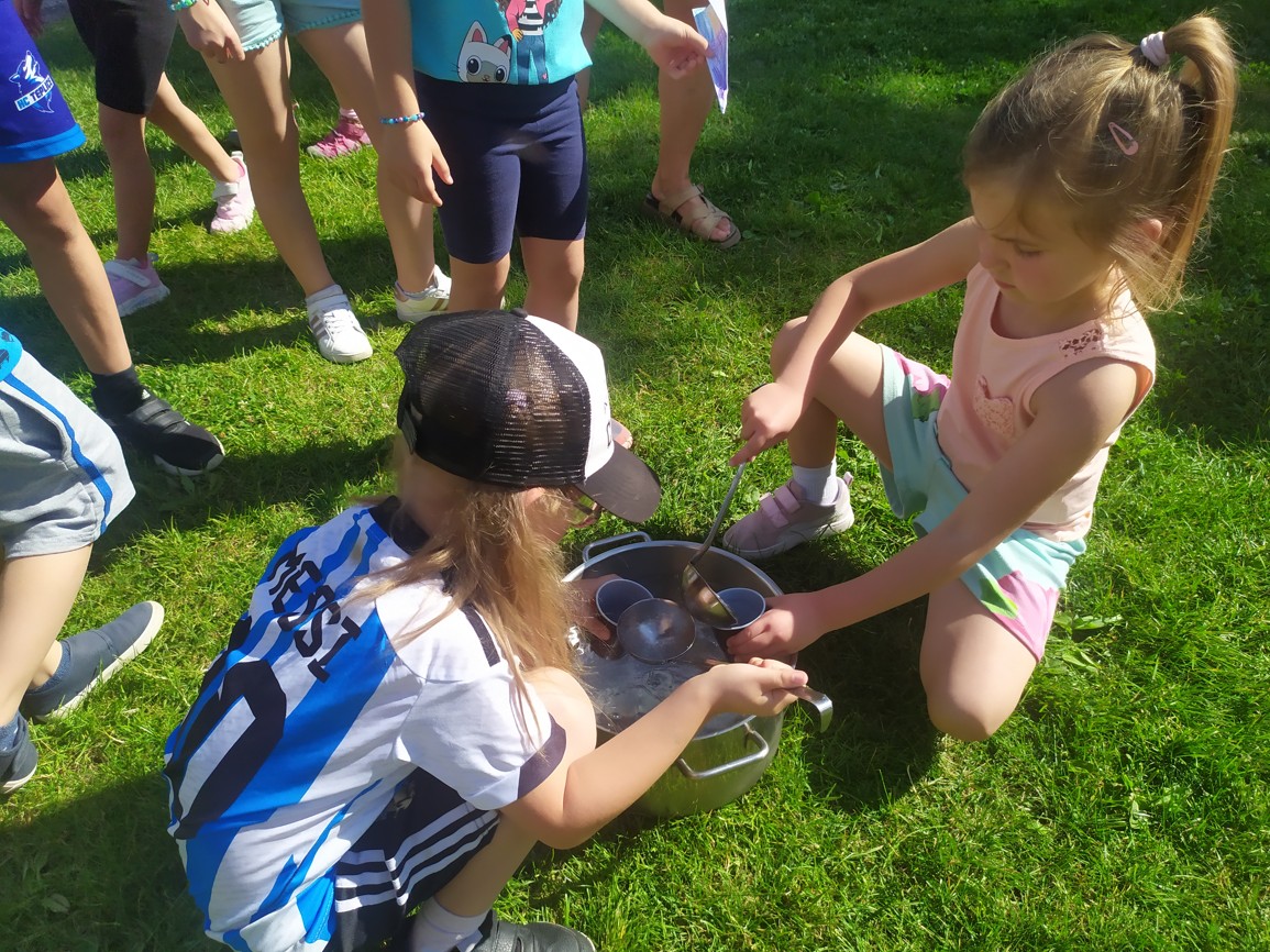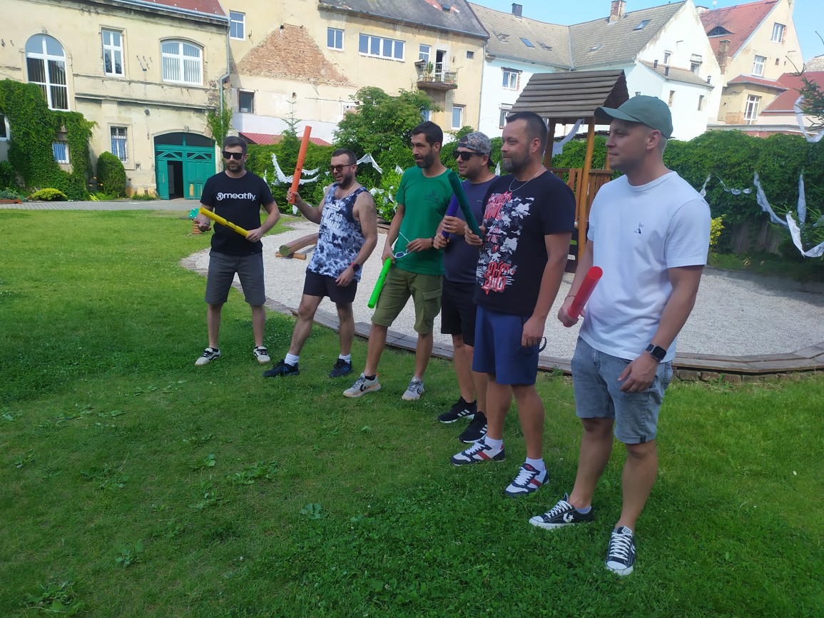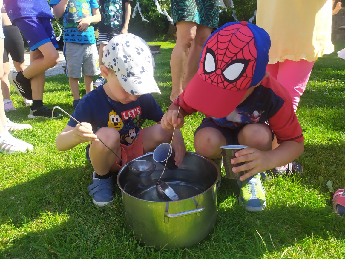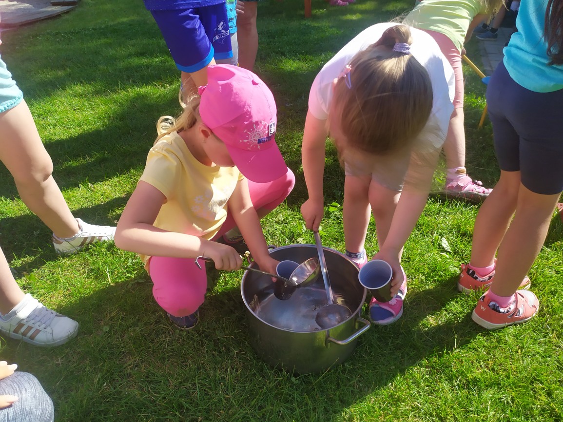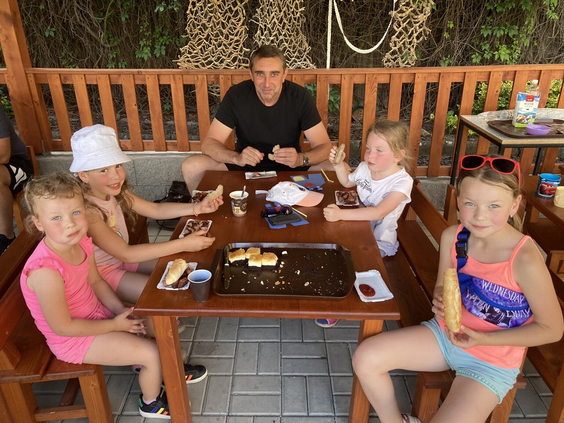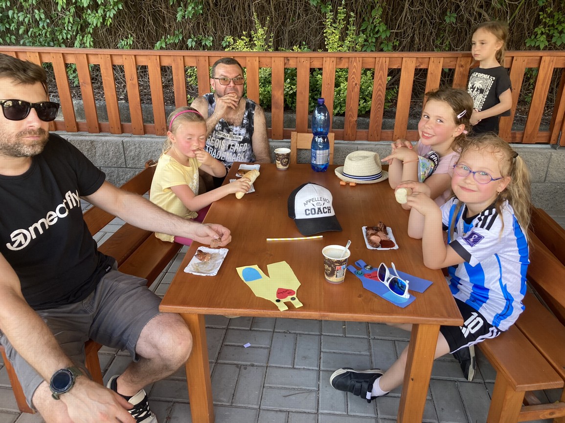 Děti se postaraly o pitný režim a pohostily tatínky čerstvou, studenou vodou. Společně jsme poseděli u výborného moučníku, kafíčka a opekli buřtíky. Celé odpoledne jsme si moc užívali.