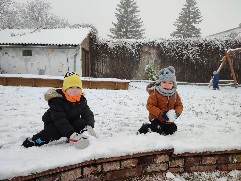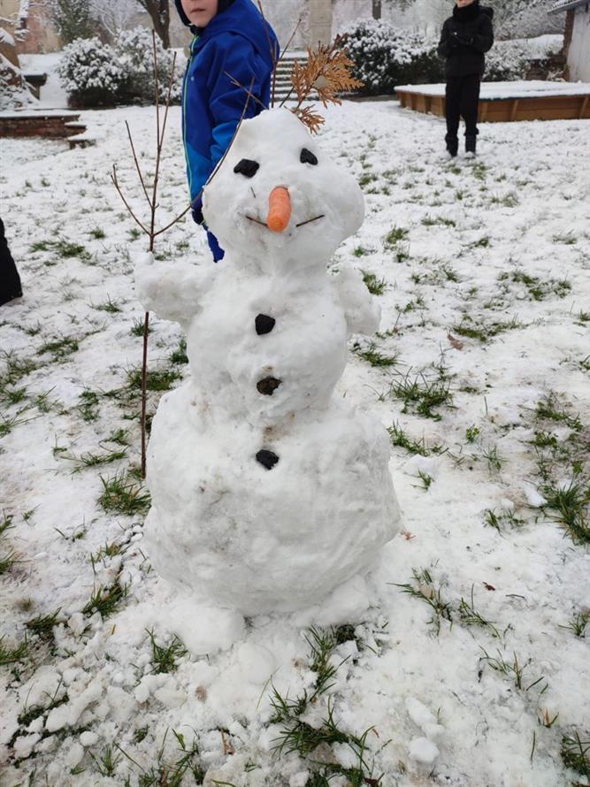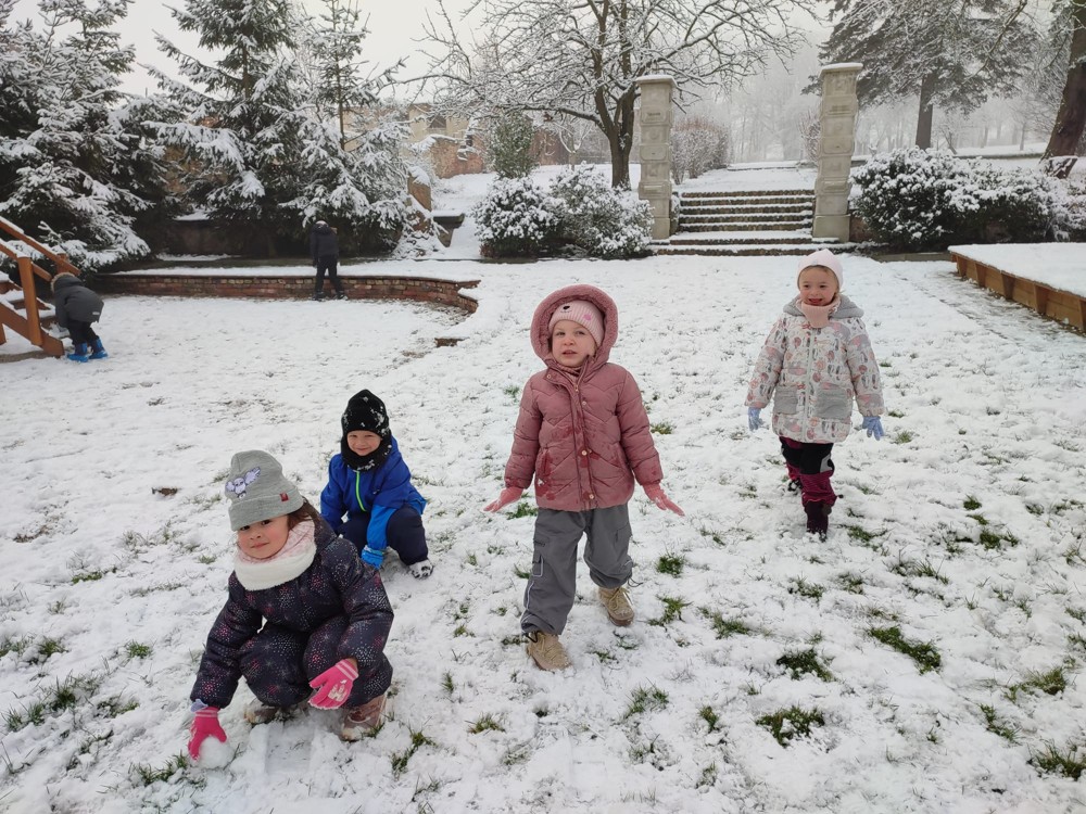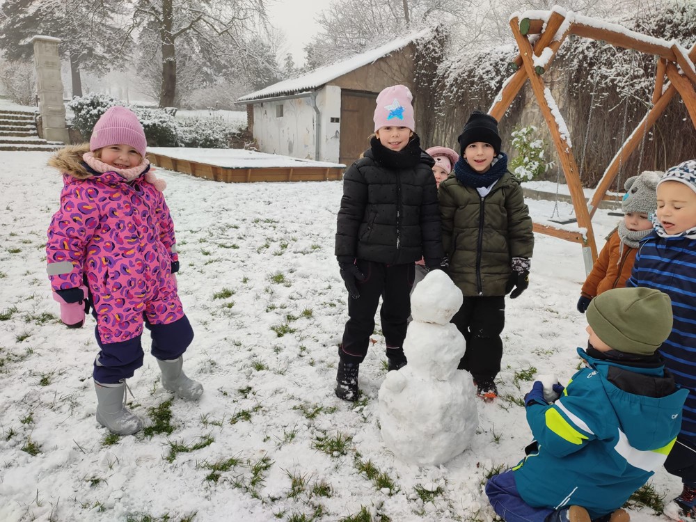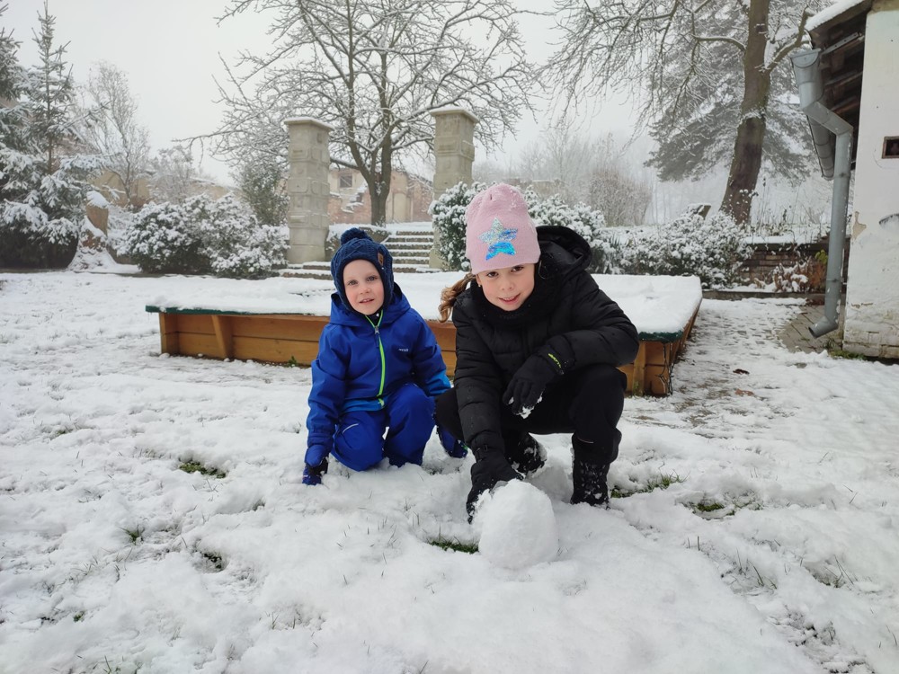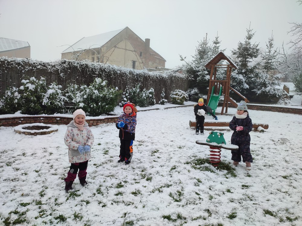 Konečně napadl první sníh, tak jsme vyrazili na školní zahradu. Dováděli jsme na sněhu a také postavili prvního letošního sněhuláka.