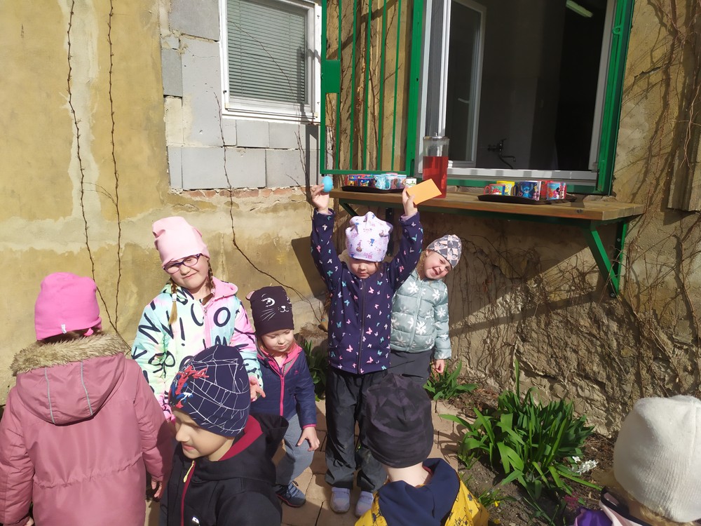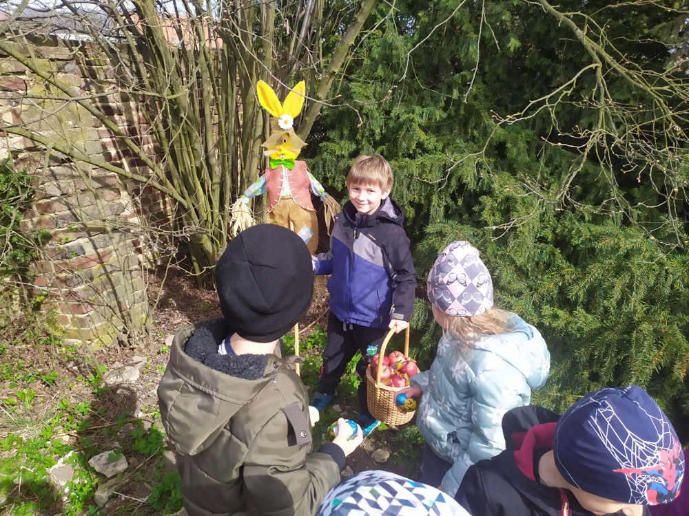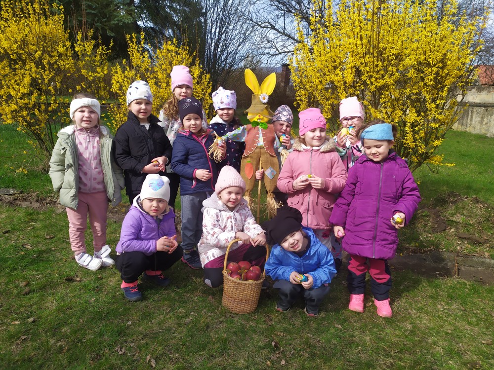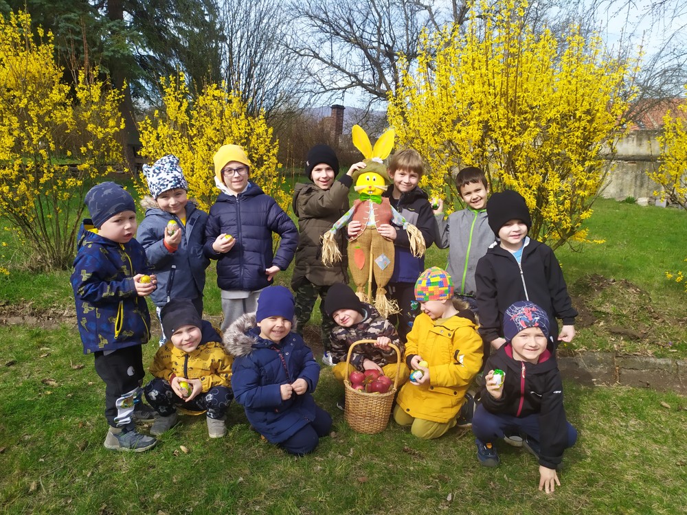 I letos si pro nás velikonoční zajíček připravil spoustu úkolů. Děti všechny našly, ale také i splnily. Na zahrádce našly schovaná čokoládová vajíčka a nakonec i zajíčka, který na ně čekal s košíkem, plným vitamínů.
