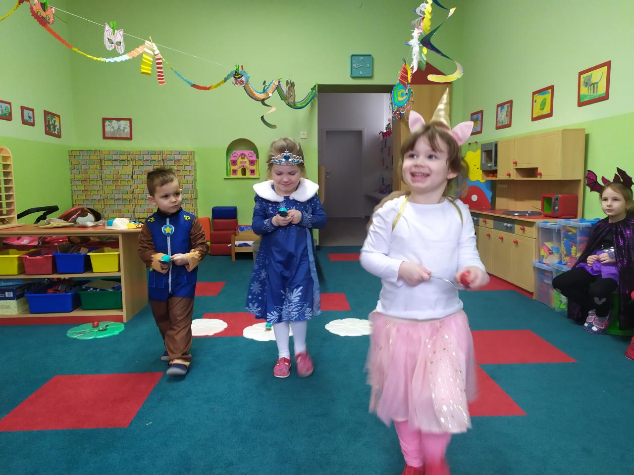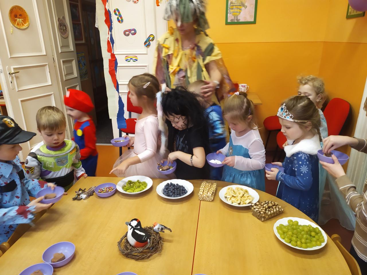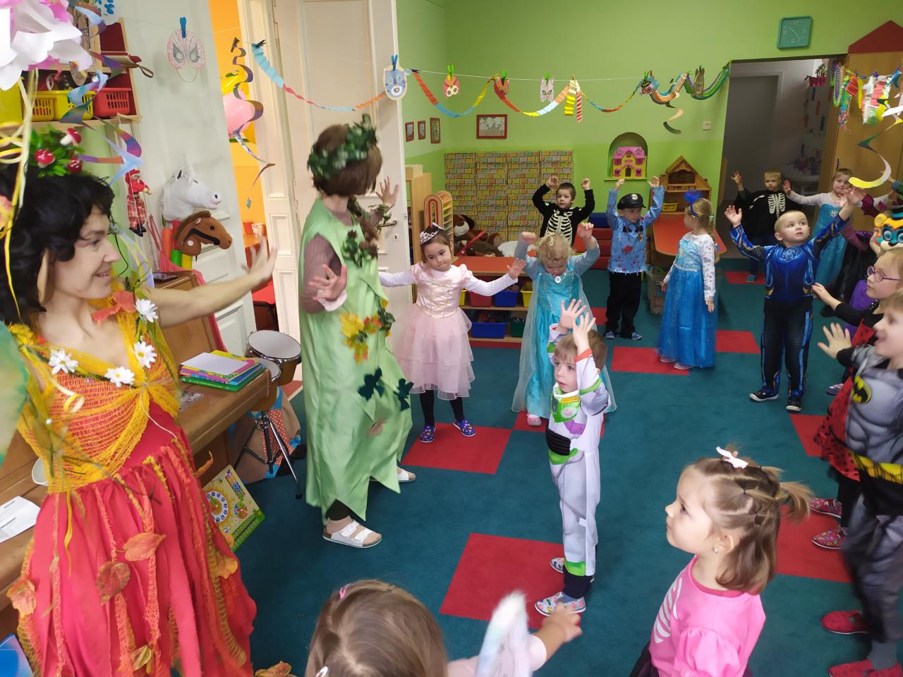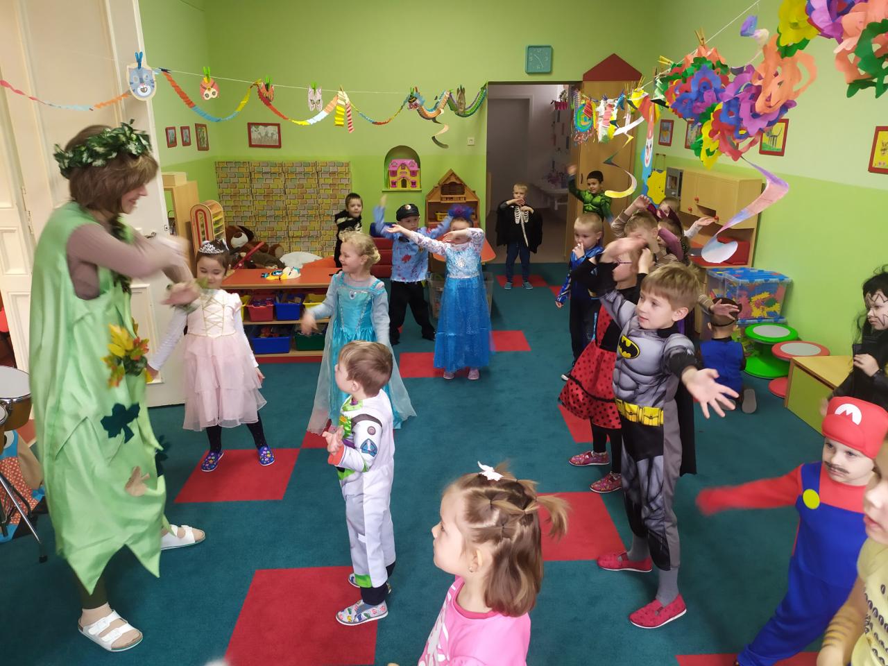 Hola, hej je maškarní rej. Mezi hosty dnešního karnevalu byla lesní strašidla, zástupci z říše hmyzu, krásné princezny, duchové, pohádkové bytosti, ale i kytarista z legendární skupiny KISS, který všem zahrál k tanci. A bylo opravdu veselo.