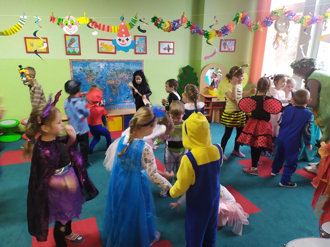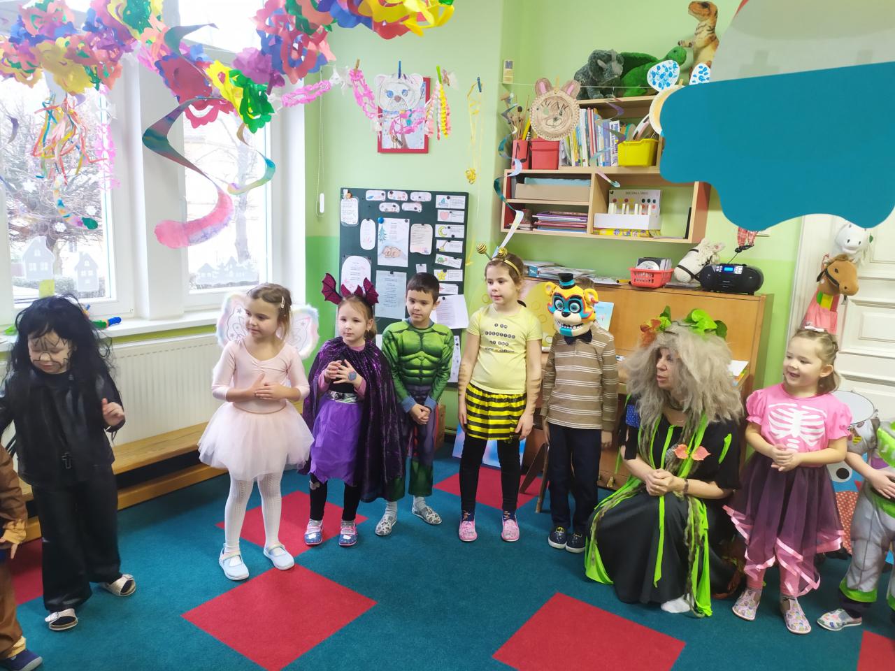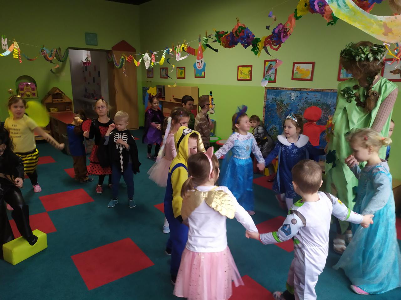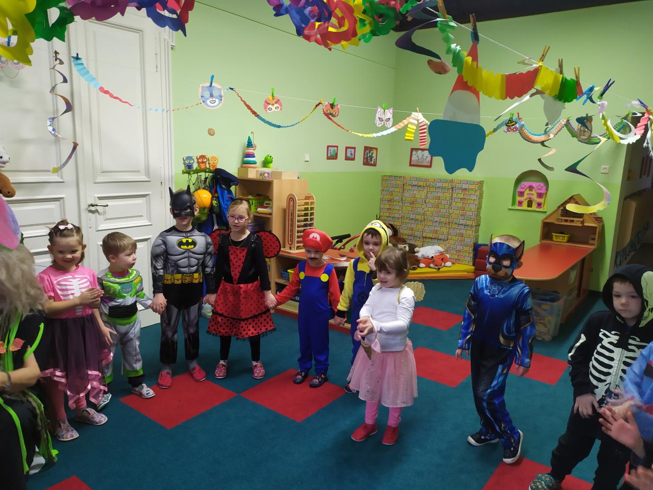 Hola, hej je maškarní rej. Mezi hosty dnešního karnevalu byla lesní strašidla, zástupci z říše hmyzu, krásné princezny, duchové, pohádkové bytosti, ale i kytarista z legendární skupiny KISS, který všem zahrál k tanci. A bylo opravdu veselo.