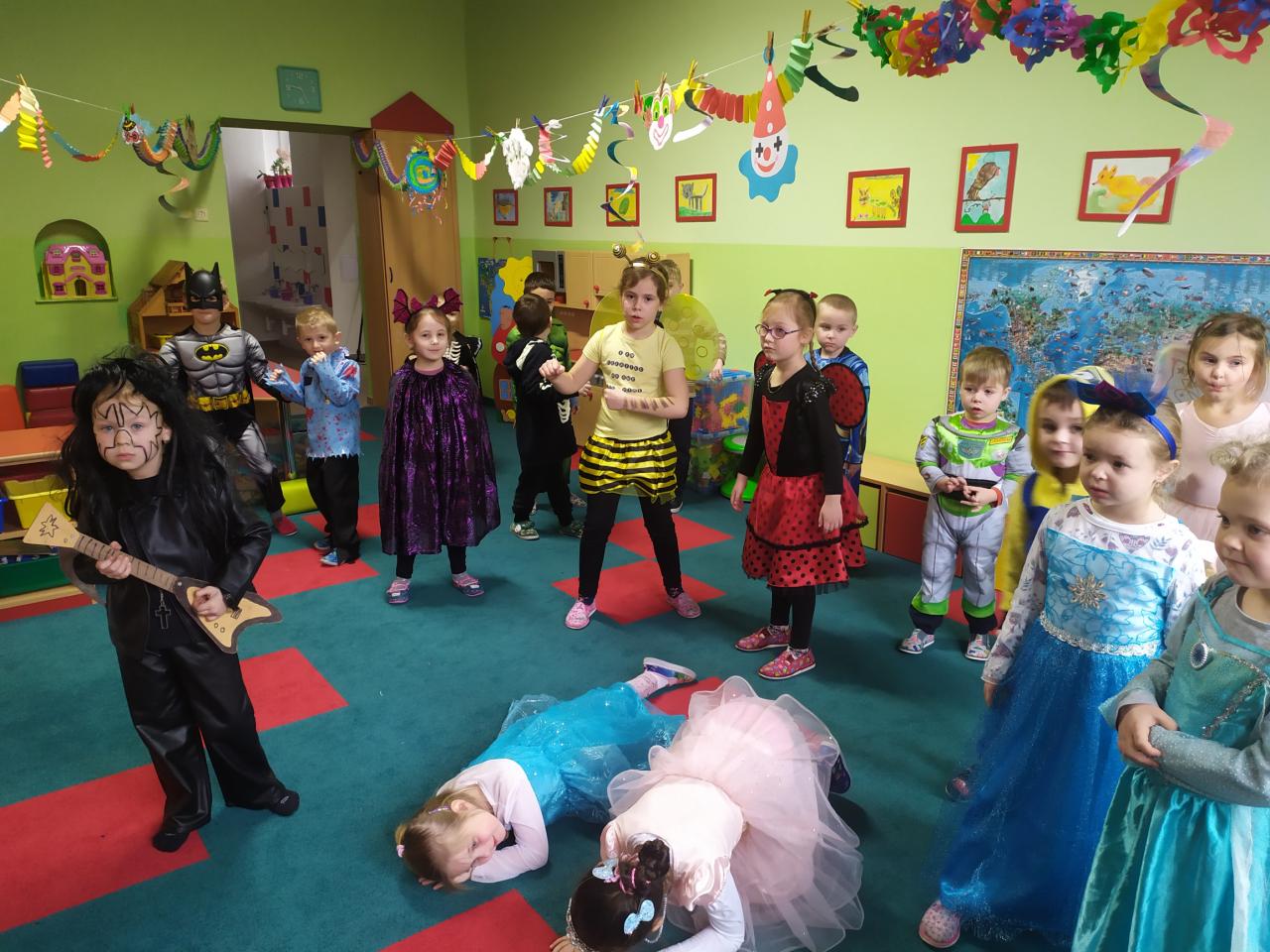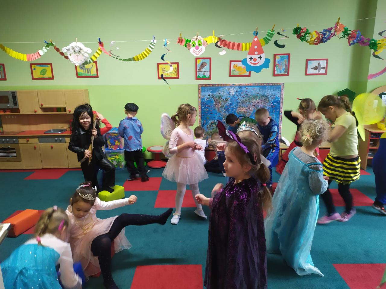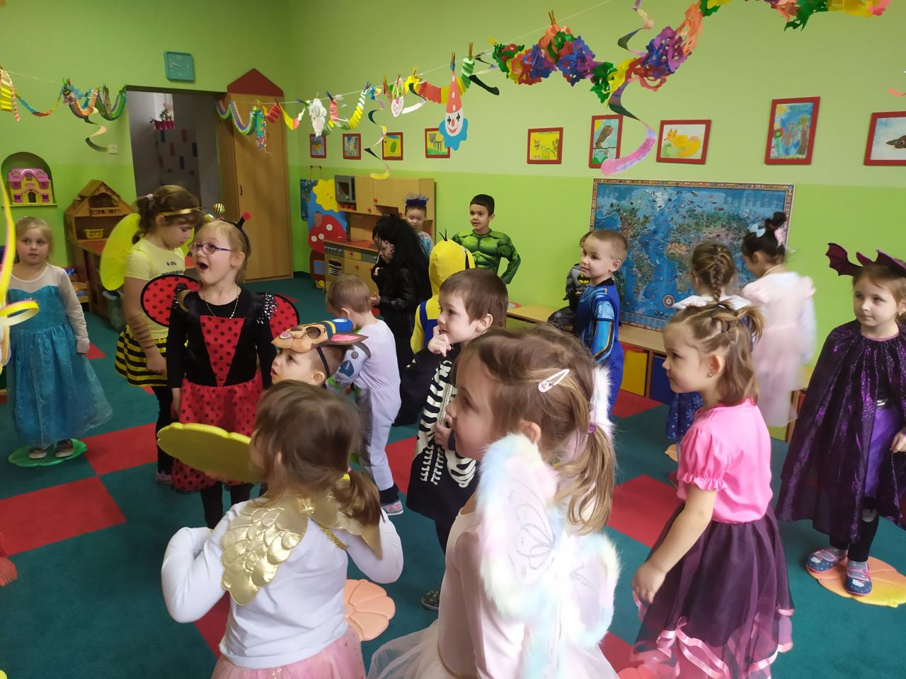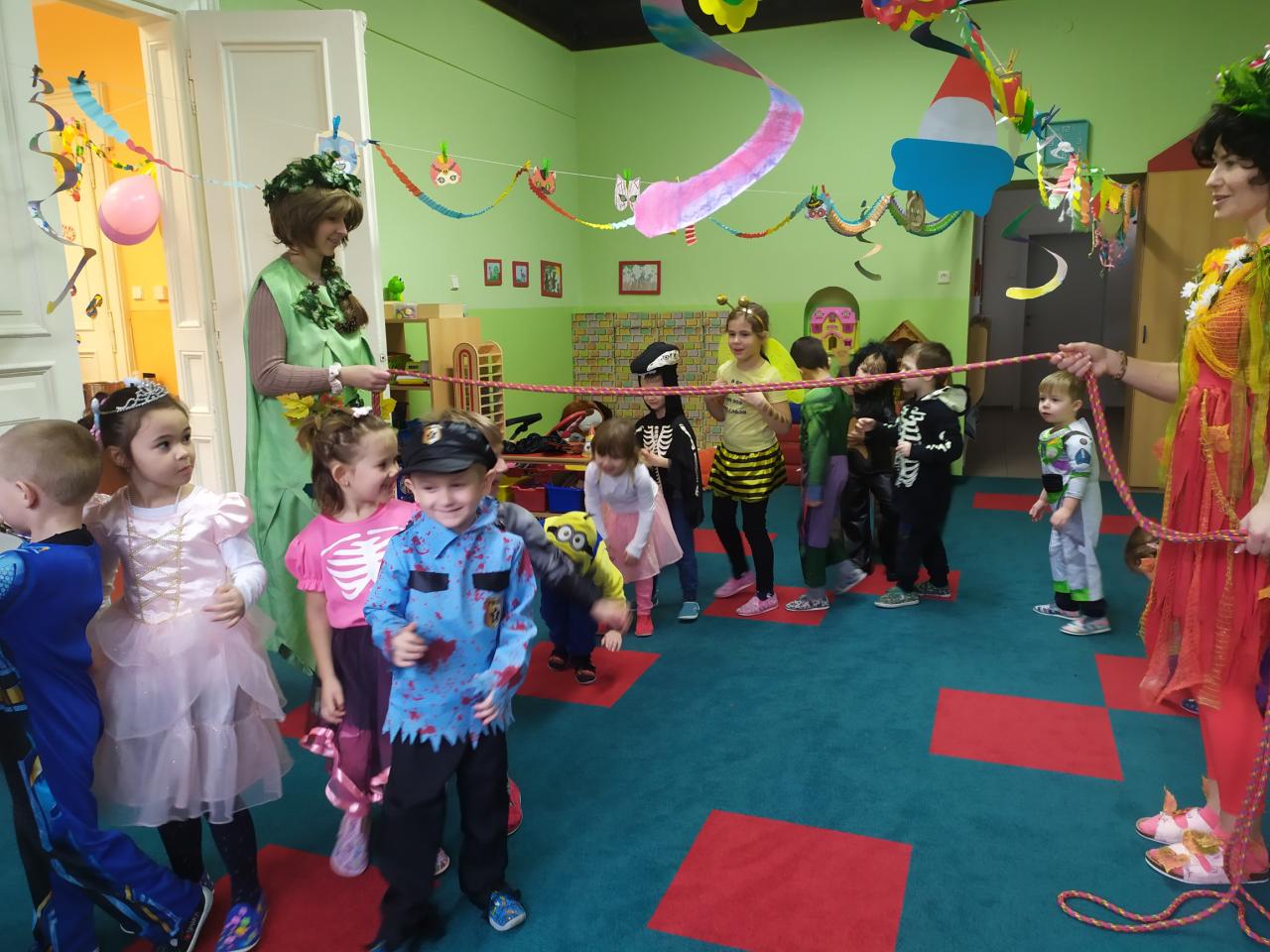 Hola, hej je maškarní rej. Mezi hosty dnešního karnevalu byla lesní strašidla, zástupci z říše hmyzu, krásné princezny, duchové, pohádkové bytosti, ale i kytarista z legendární skupiny KISS, který všem zahrál k tanci. A bylo opravdu veselo.