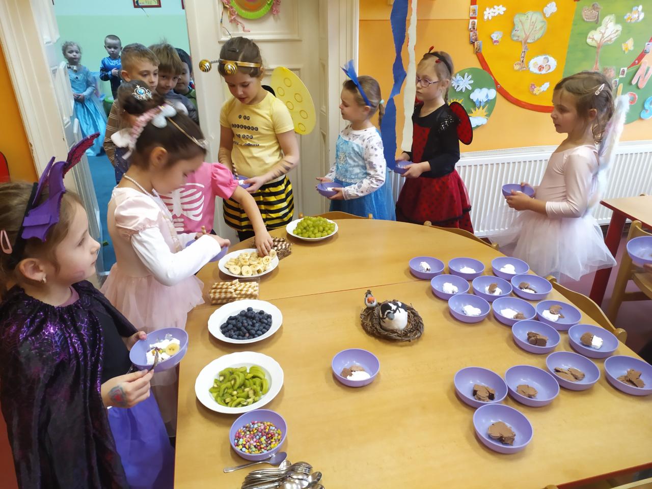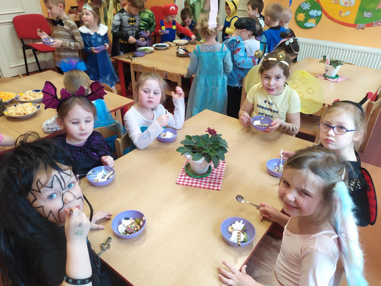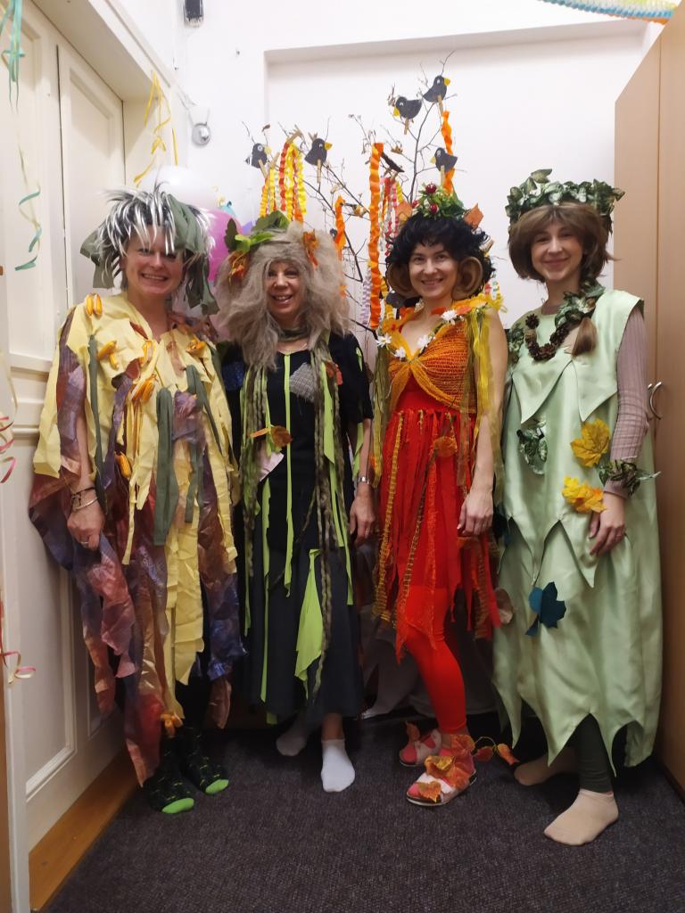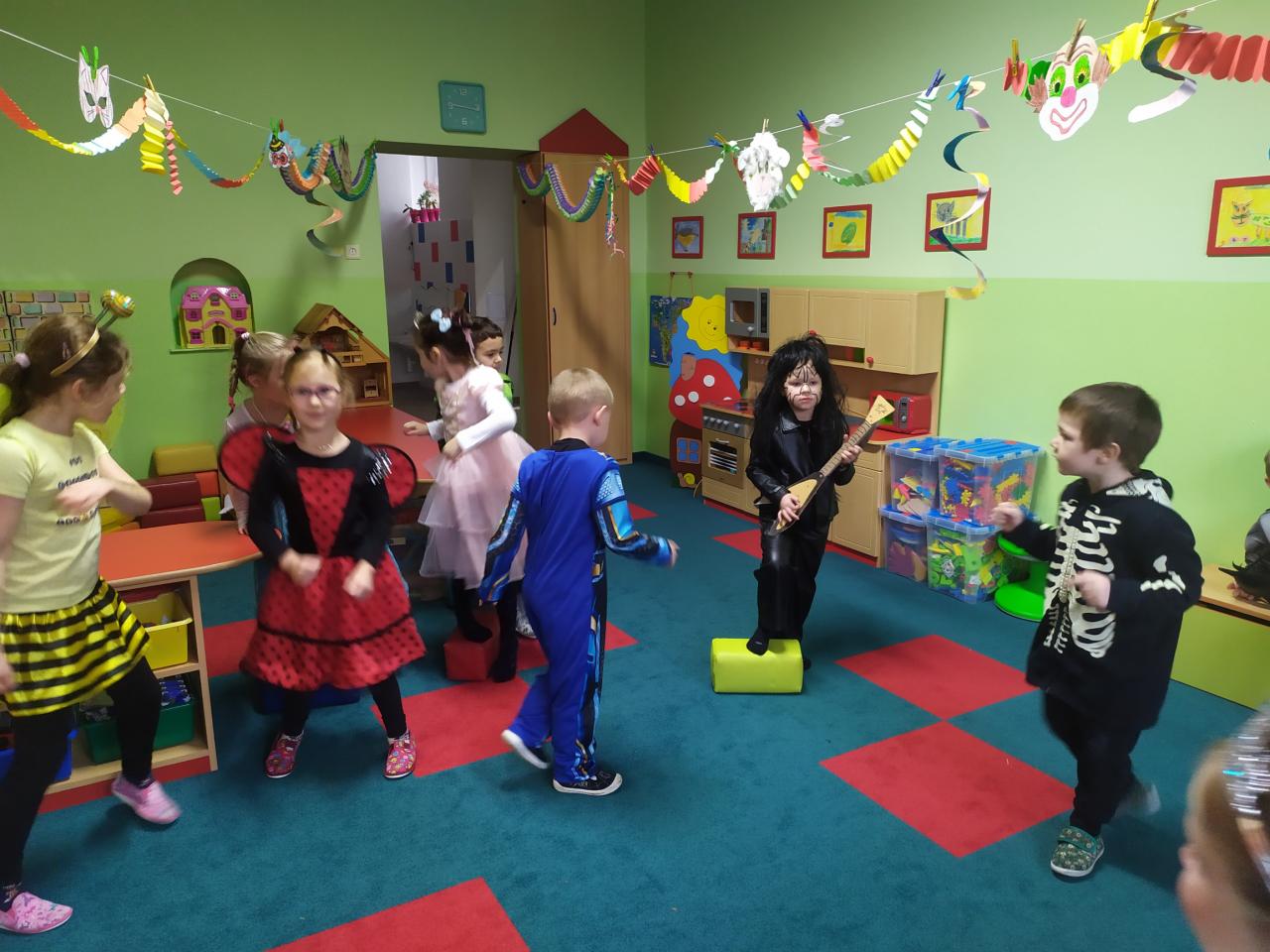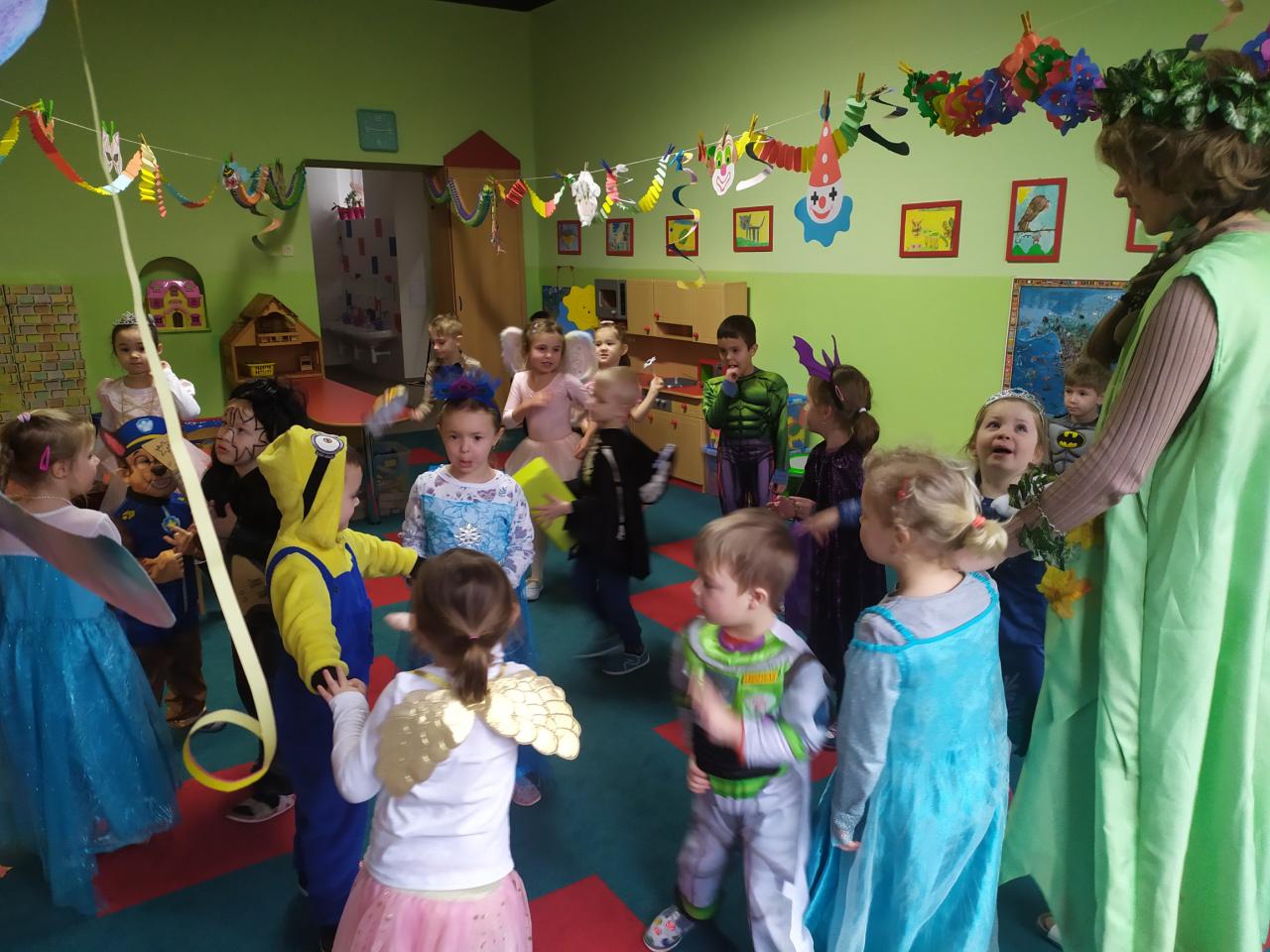 Hola, hej je maškarní rej. Mezi hosty dnešního karnevalu byla lesní strašidla, zástupci z říše hmyzu, krásné princezny, duchové, pohádkové bytosti, ale i kytarista z legendární skupiny KISS, který všem zahrál k tanci. A bylo opravdu veselo.