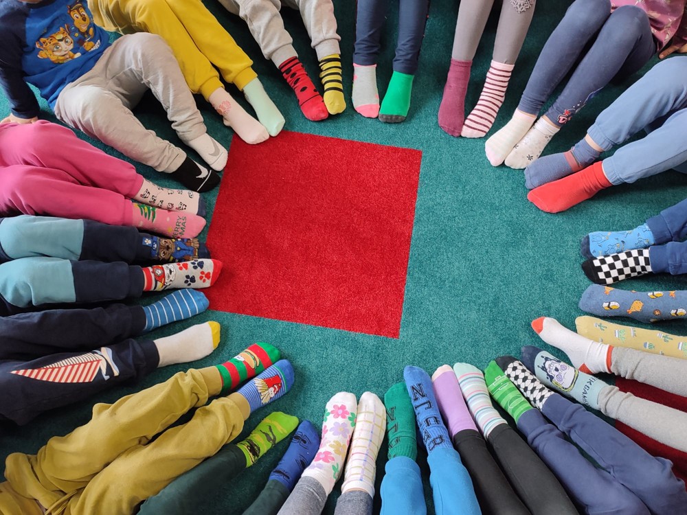 Ve školce jsme si povídali o významu Světového dne Downova syndromu a na znamení podpory těchto lidí a jejich rodin jsme si oblékli dvě různé ponožky.