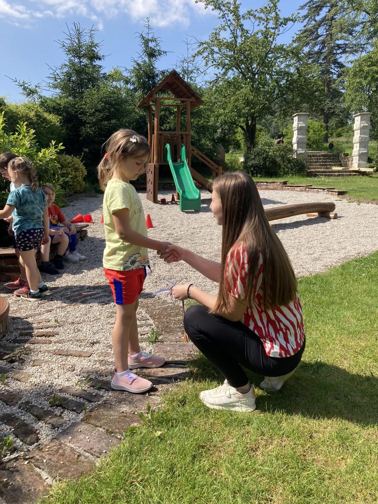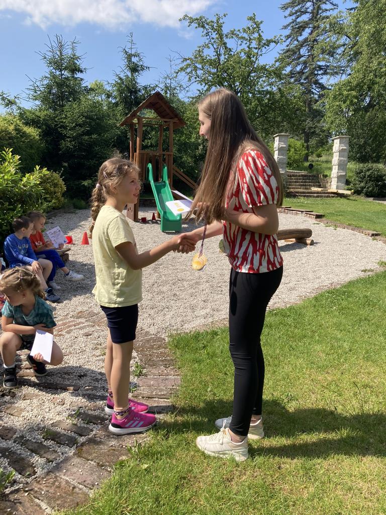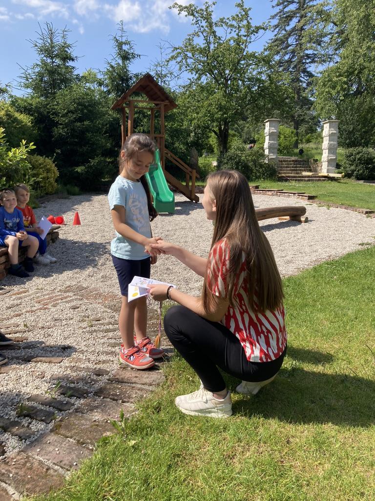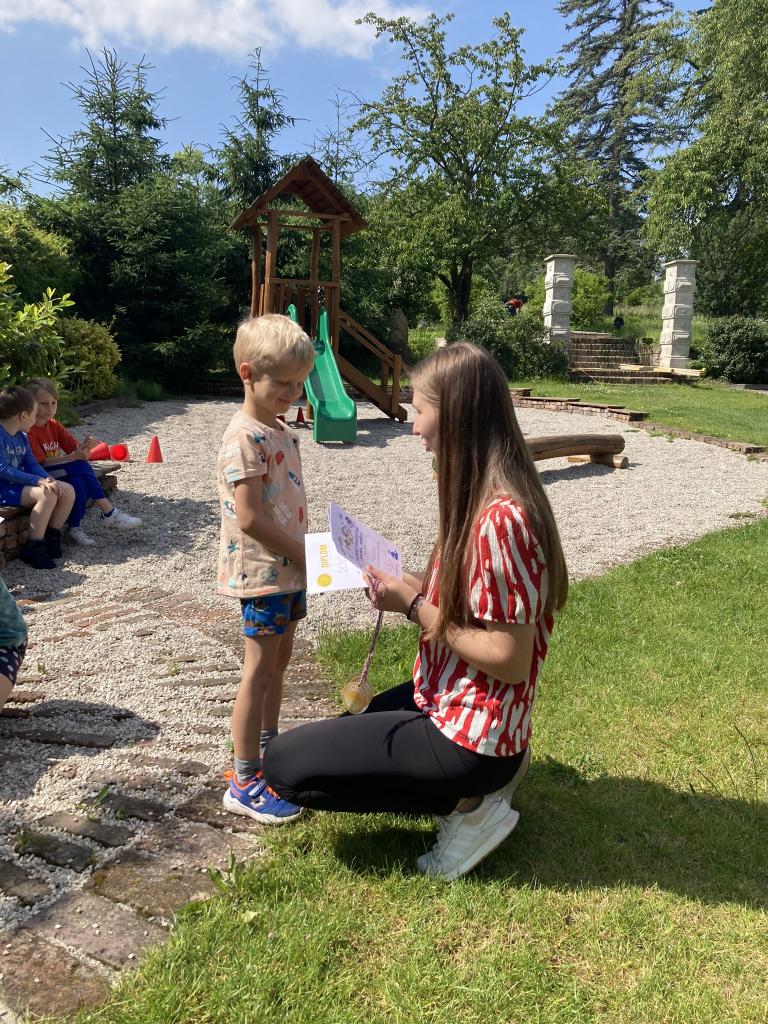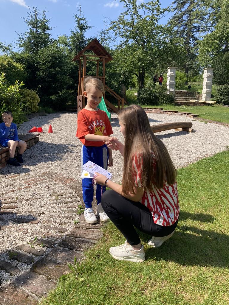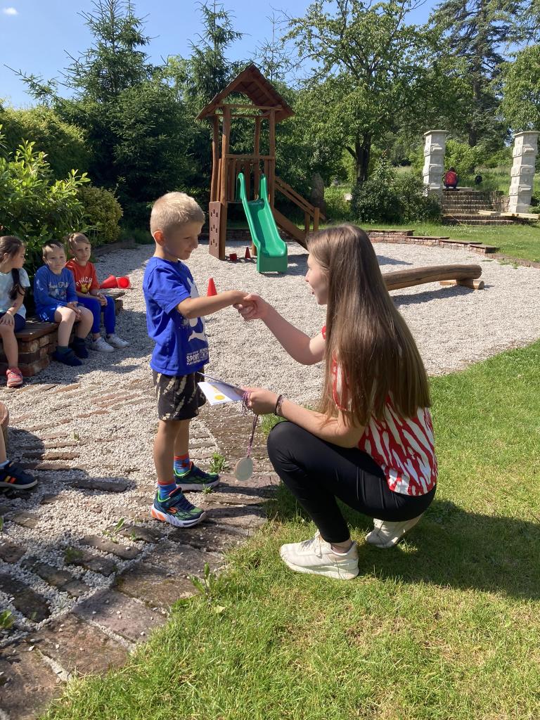 Předávání diplomů plaváčkům a poděkování Nikolce, Péťovi, Míšovi a Denískovi za reprezentaci naší mateřské školy v plavecké soutěži.
