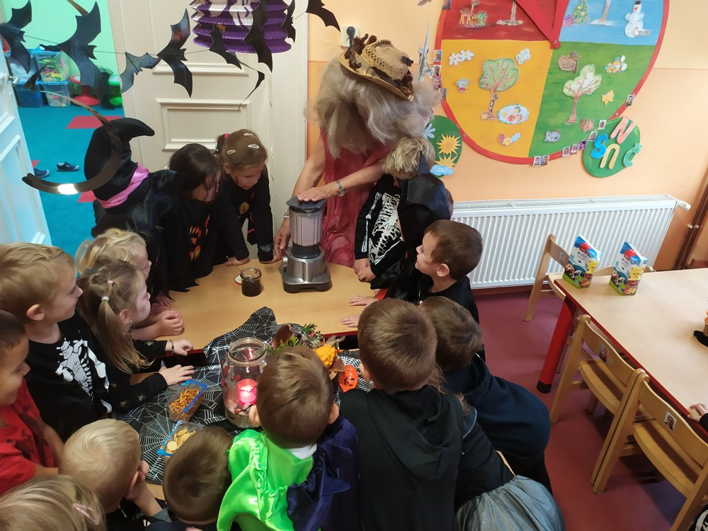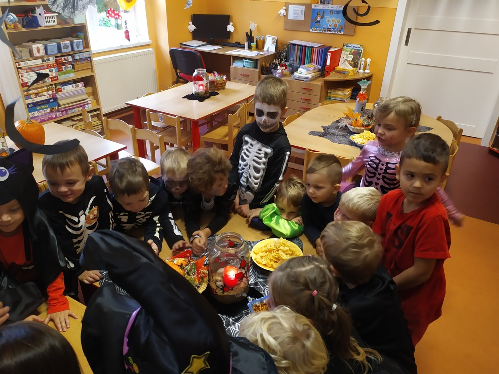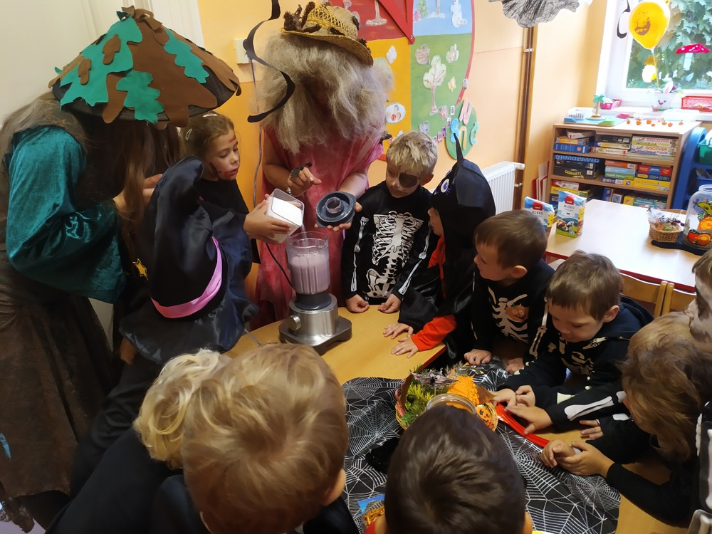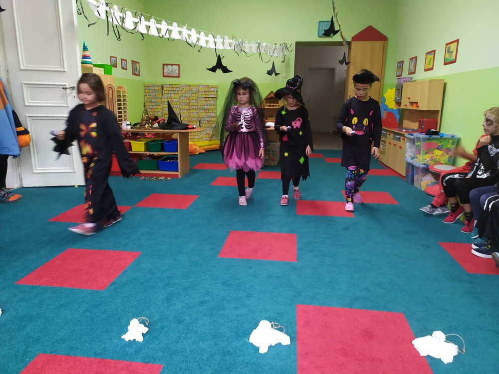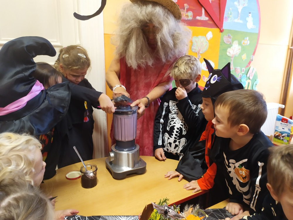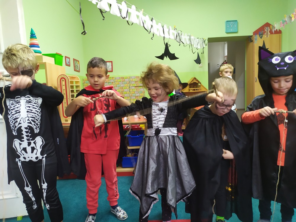 Ve školce dnes pobíhala samá strašidla, která celé dopoledne tančila, soutěžila, vařila kouzelné lektvary a také mlsala.