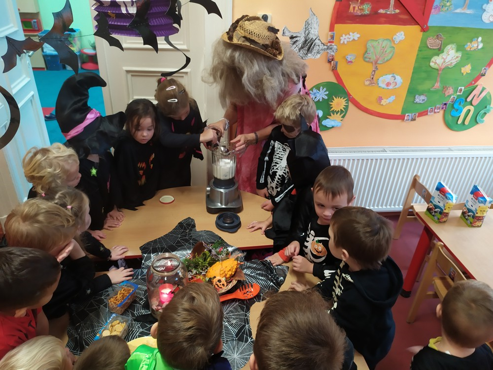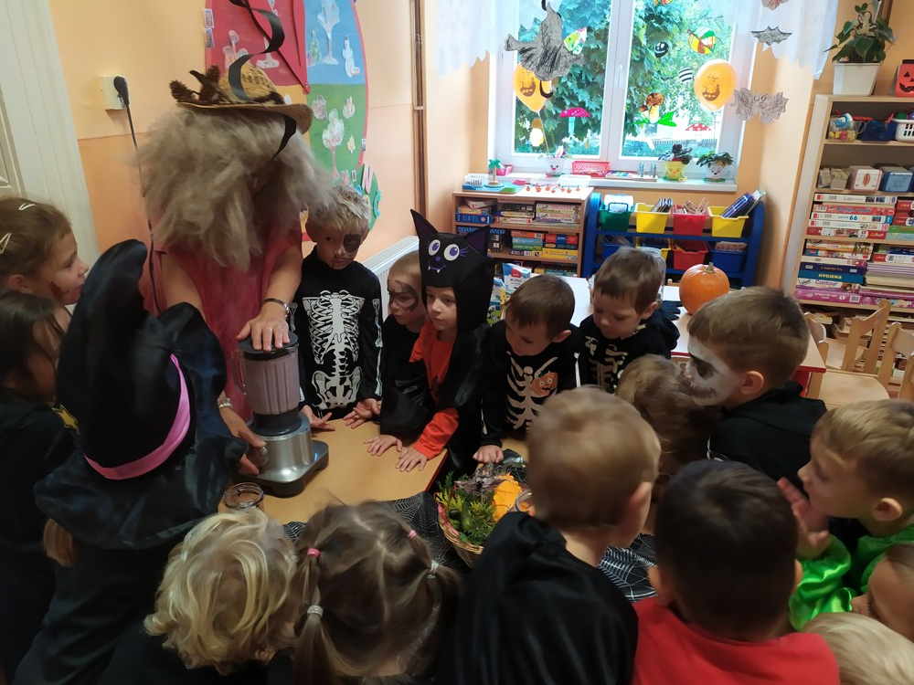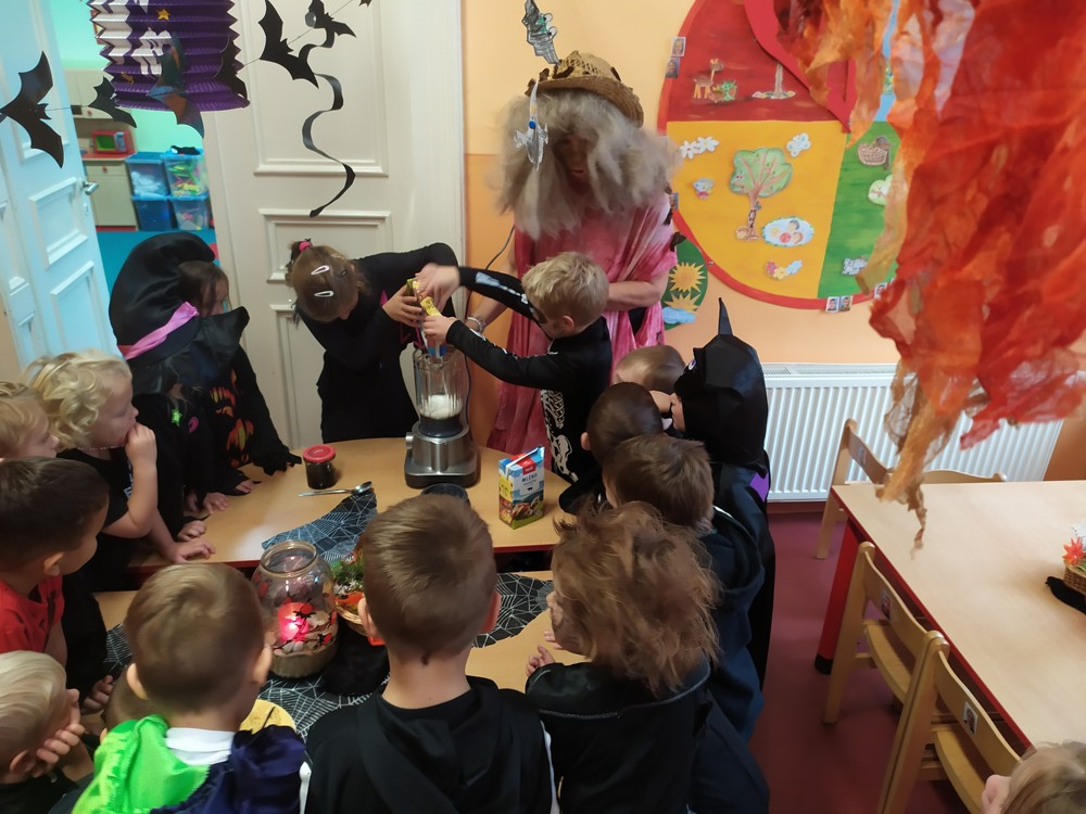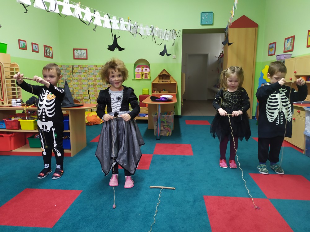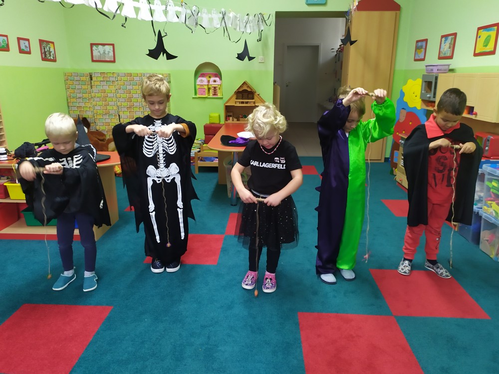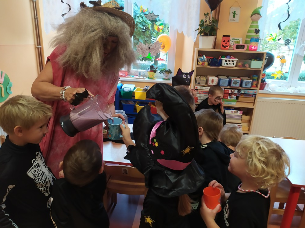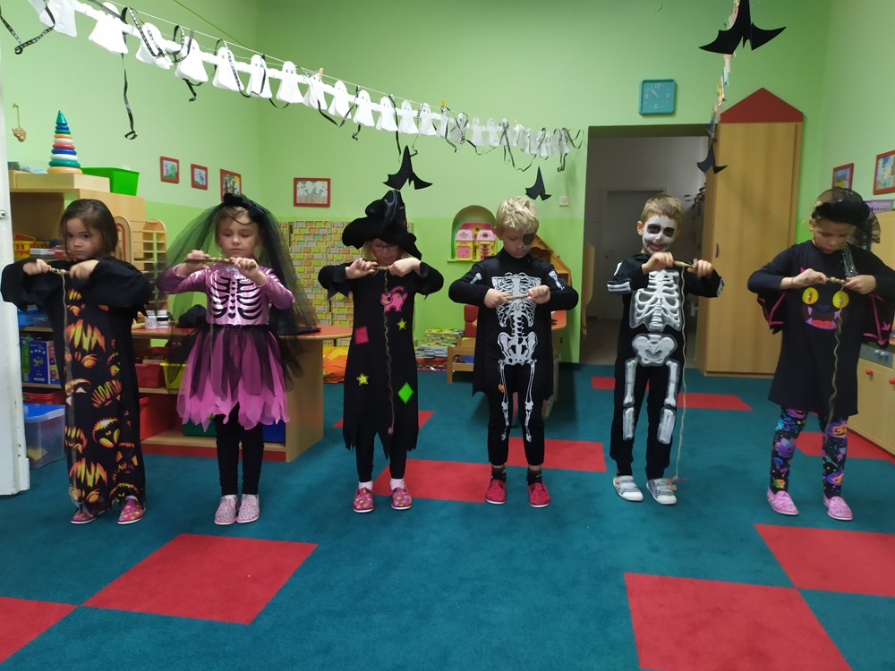 Ve školce dnes pobíhala samá strašidla, která celé dopoledne tančila, soutěžila, vařila kouzelné lektvary a také mlsala.