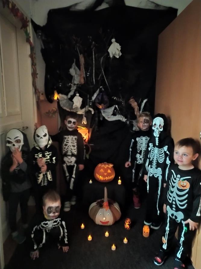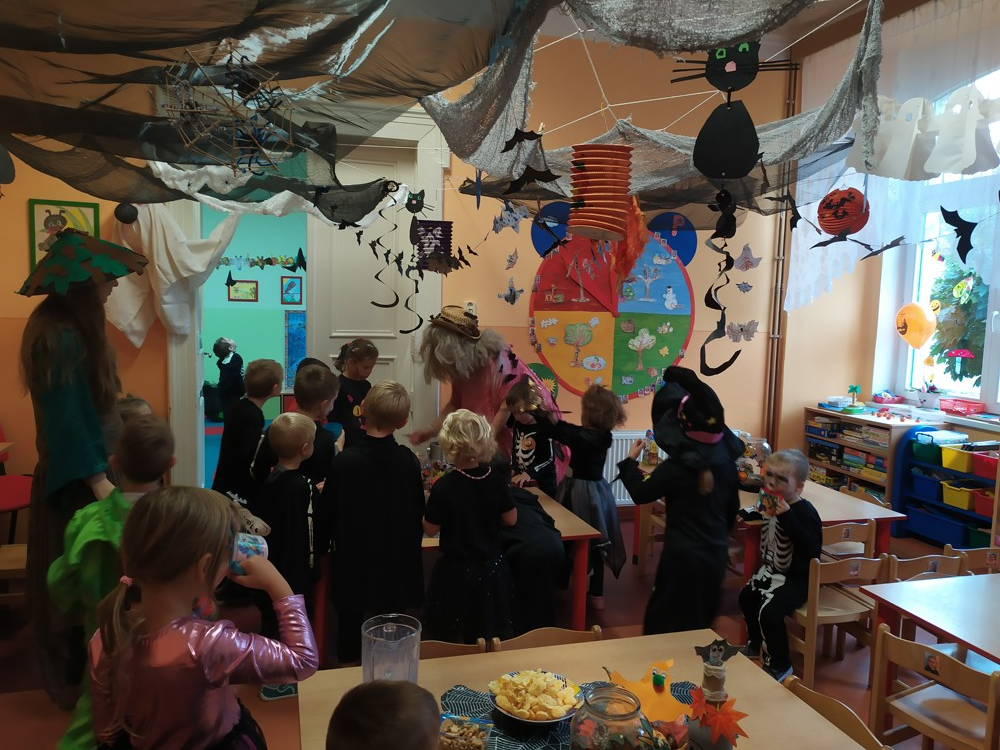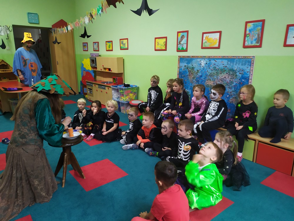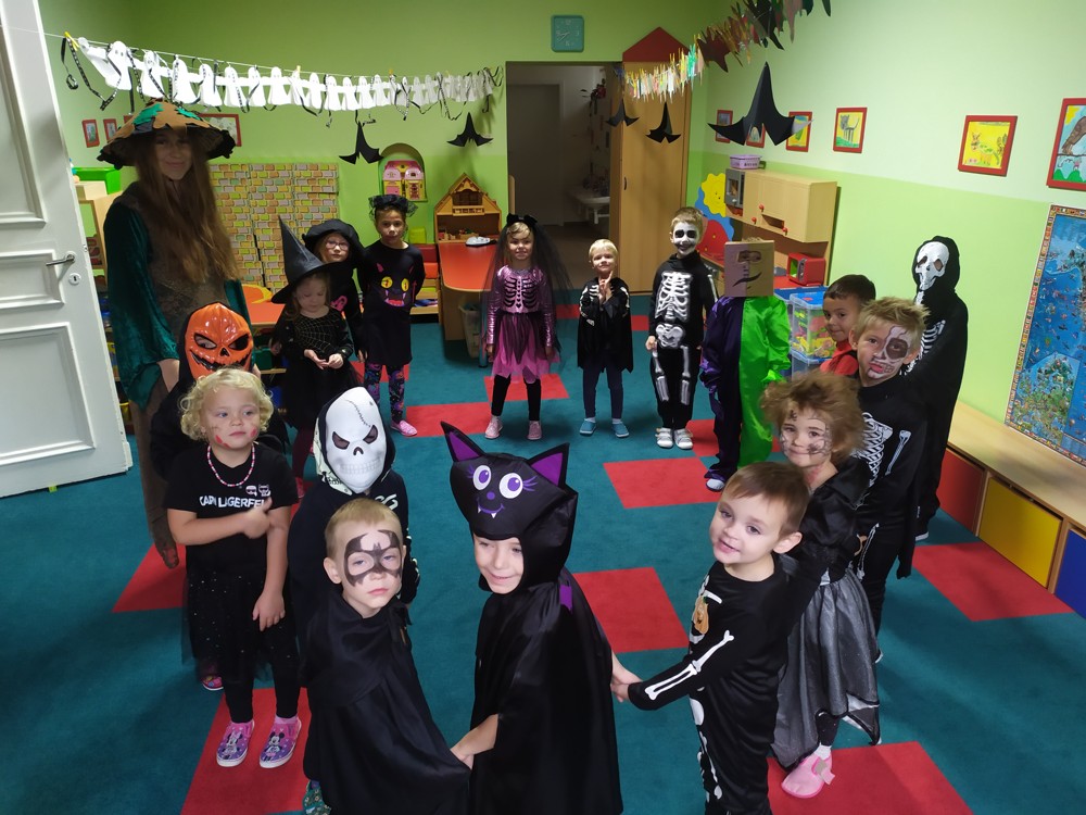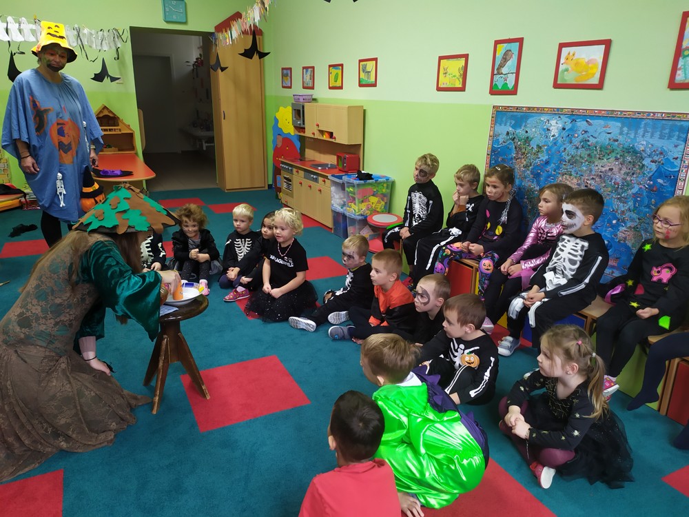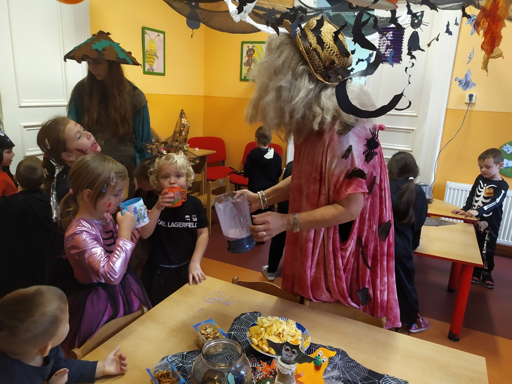 Ve školce dnes pobíhala samá strašidla, která celé dopoledne tančila, soutěžila, vařila kouzelné lektvary a také mlsala.